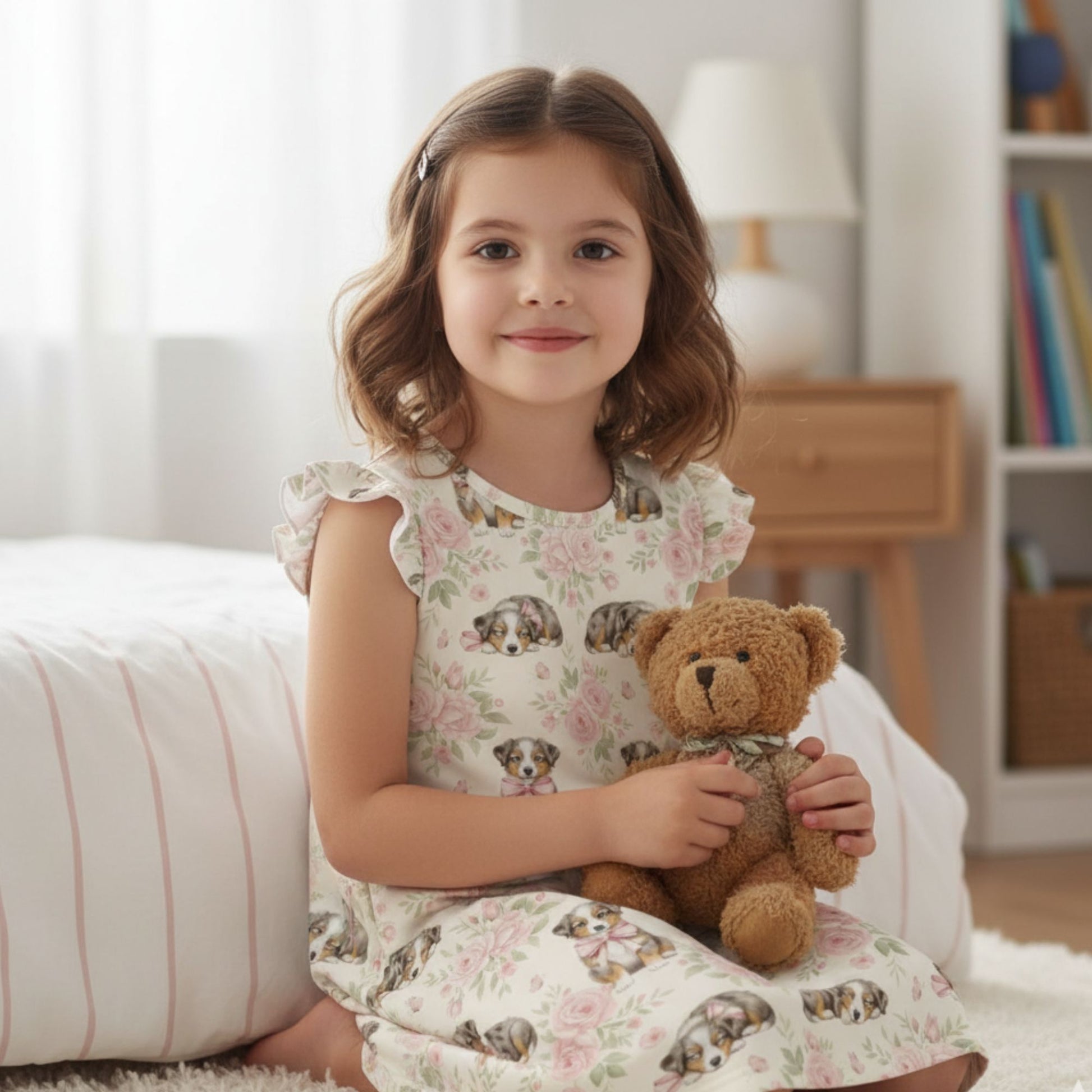 Sweet Pup Floral Girls’ Nightgown – Soft, Breathable, and Adorably Stylish