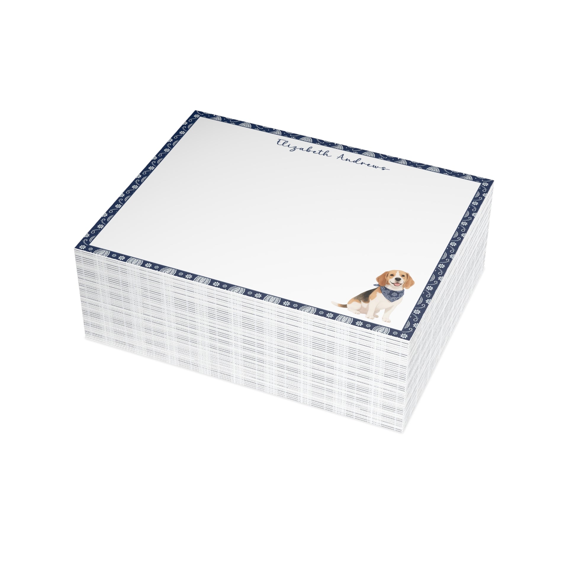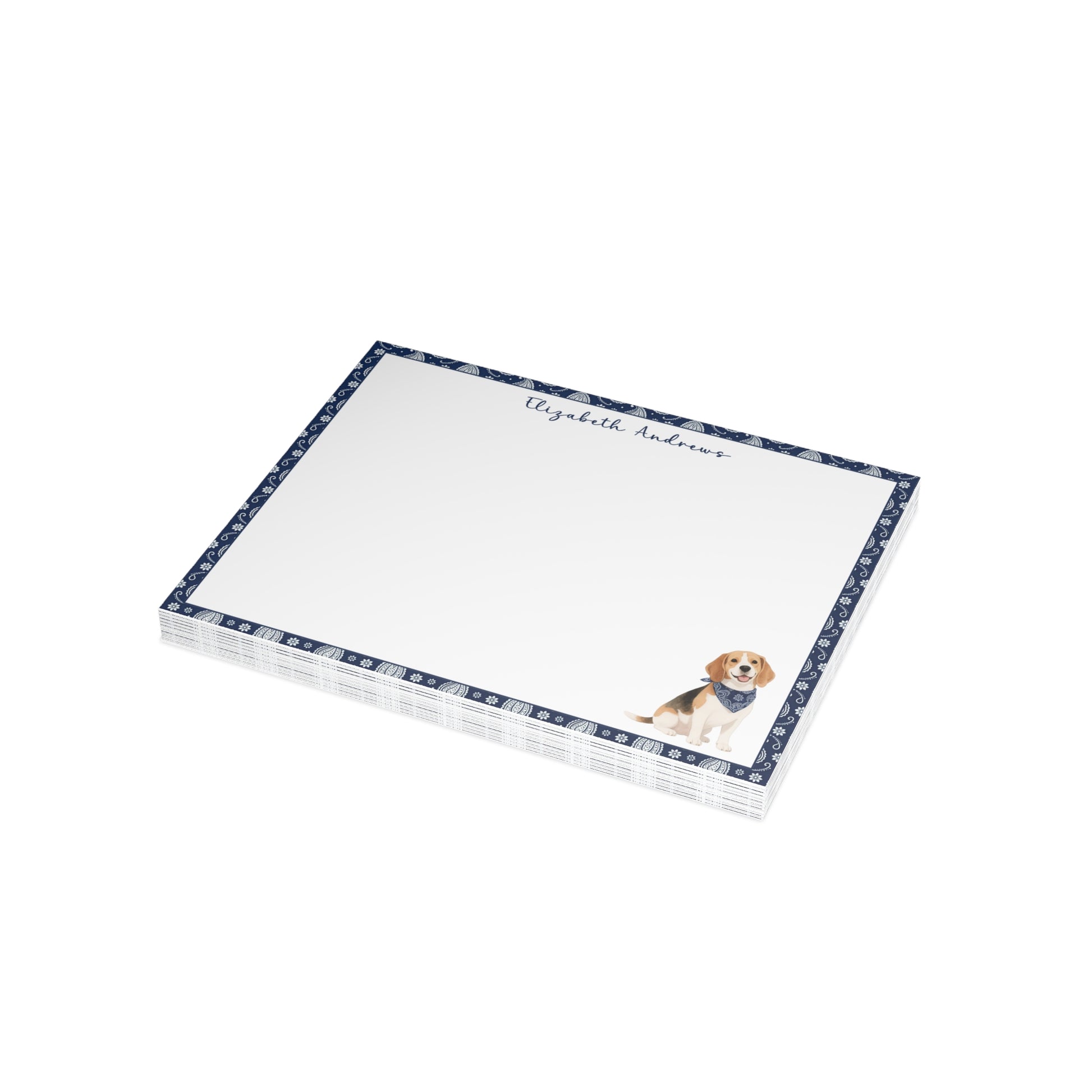 Add a personal, charming touch to your correspondence with this adorable notecard set — perfect for dog lovers and stationery enthusiasts alike. Each flat notecard features a classic navy blue paisley border and a sweet illustrated pup wearing a matching bandana, creating a timeless and cheerful design that’s ideal for thank-you notes, casual letters, or gift enclosures.