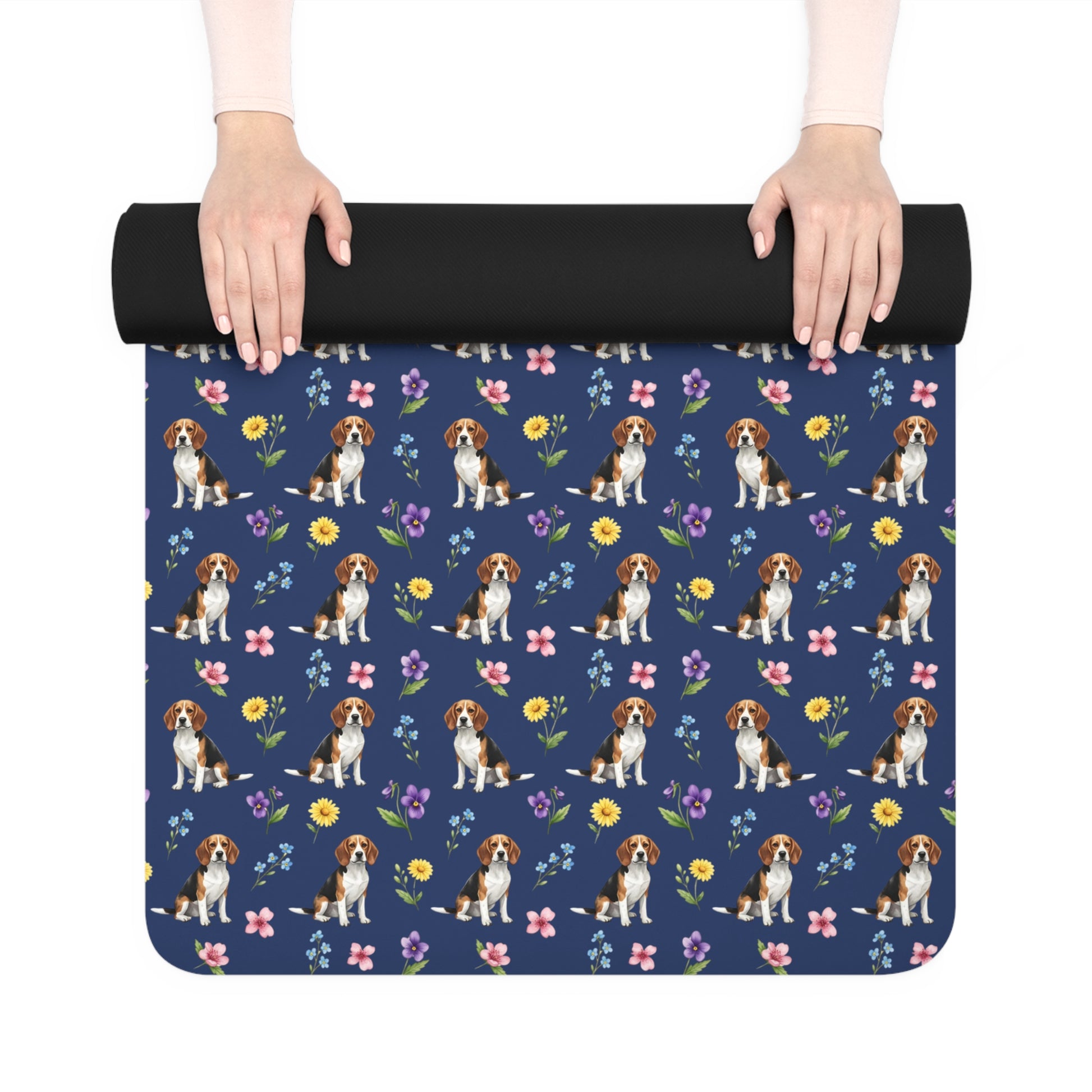 Beagle Dog Floral Yoga Mat – Durable Non-Slip Rubber Surface for Home & Studio Practice