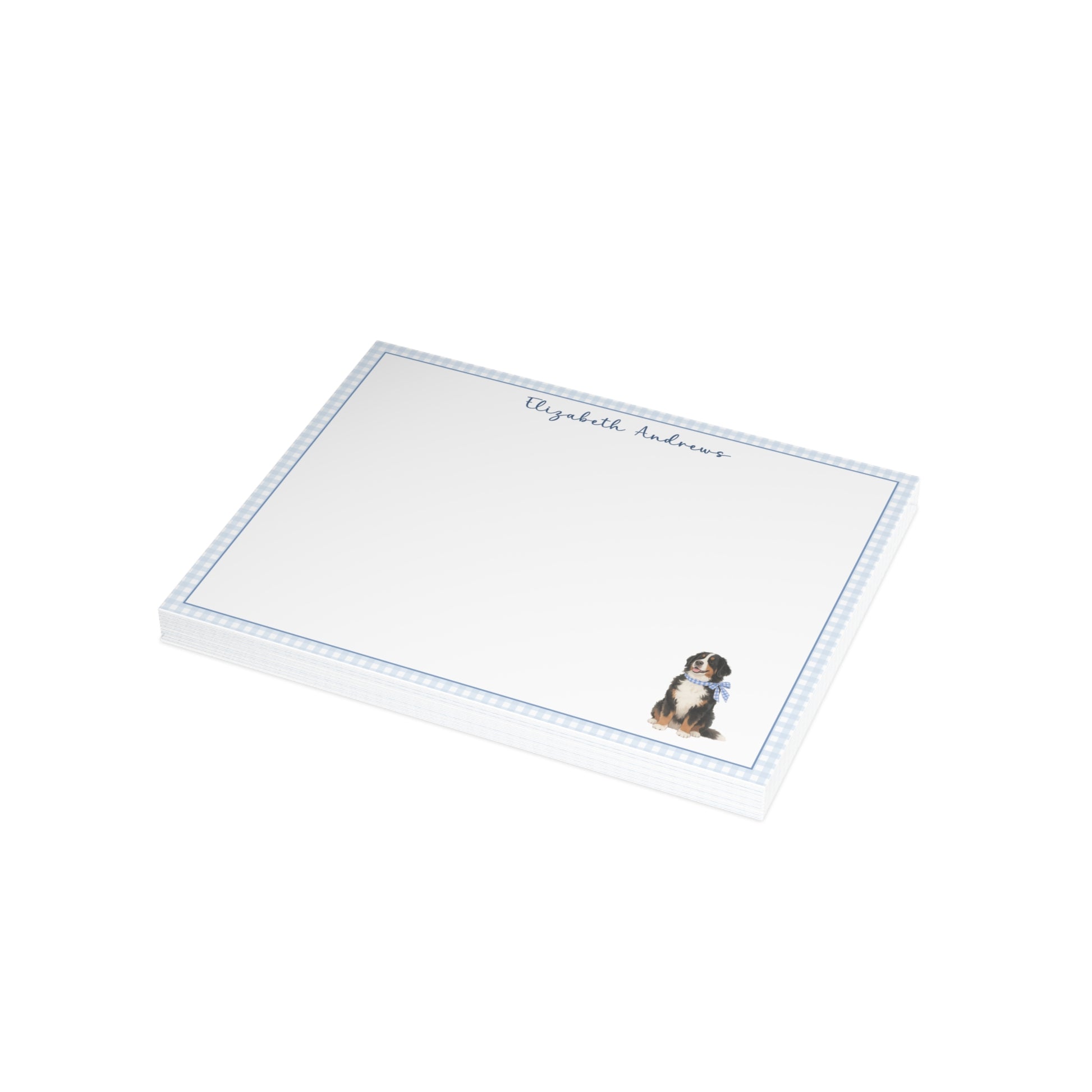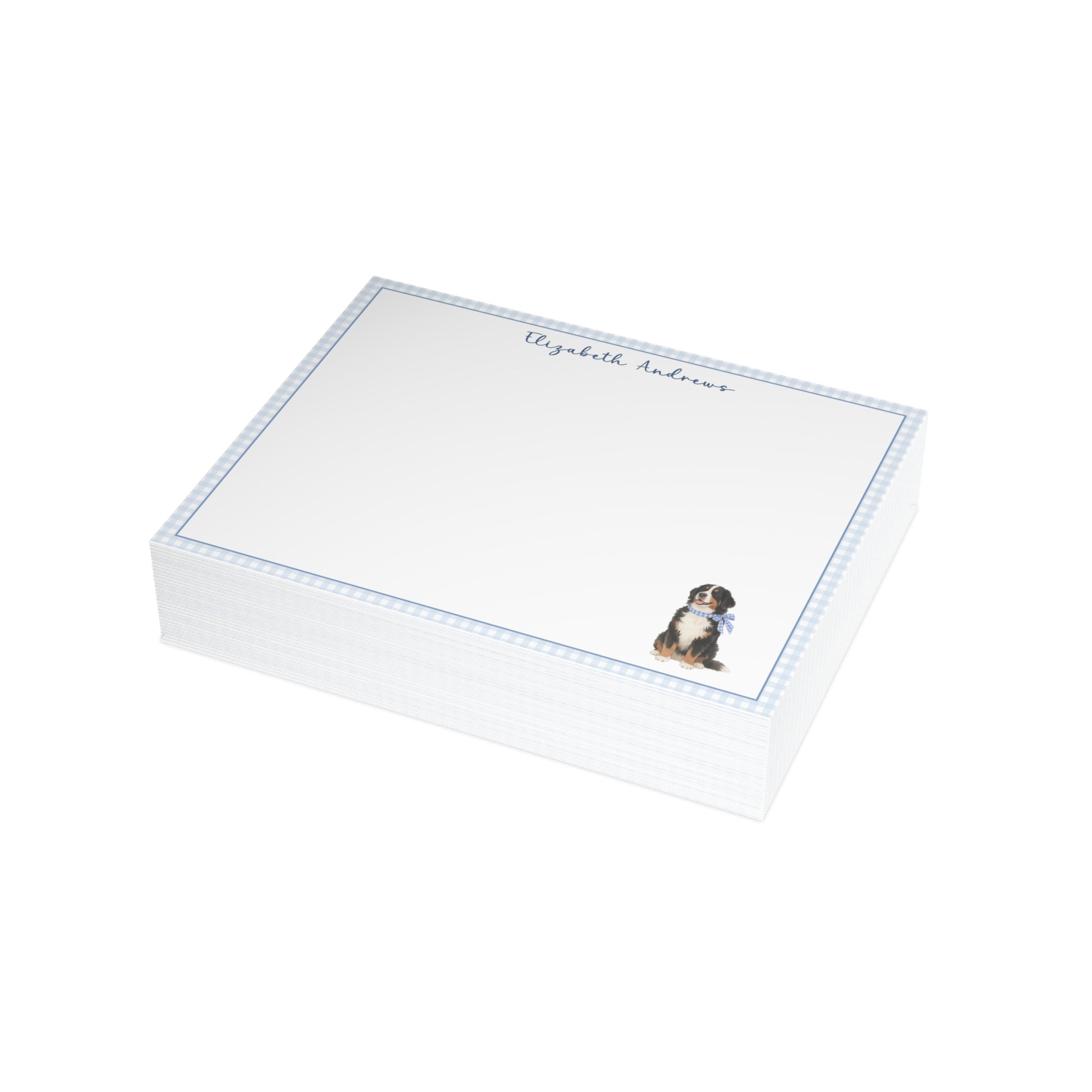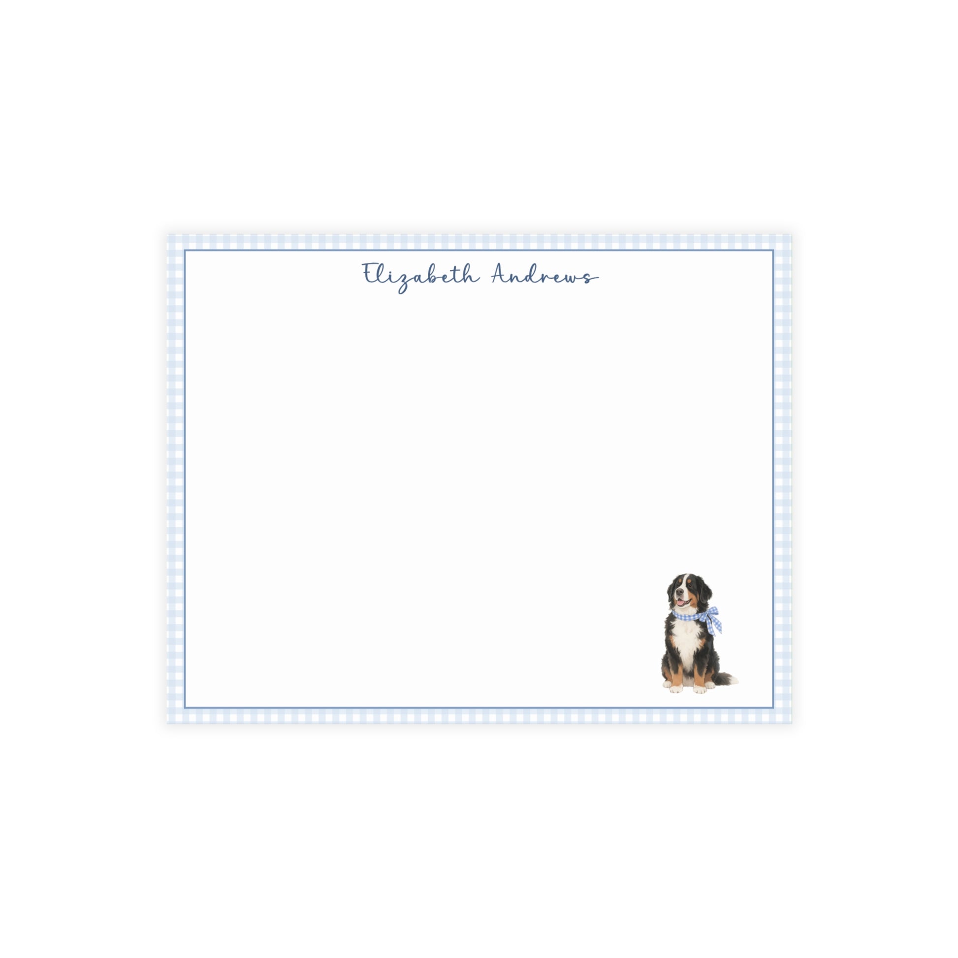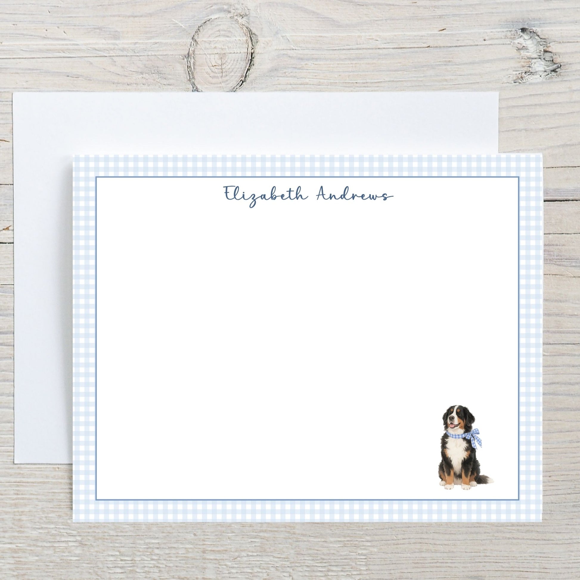 Bernese Mountain Dog Blue Gingham Personalized Notecard Set