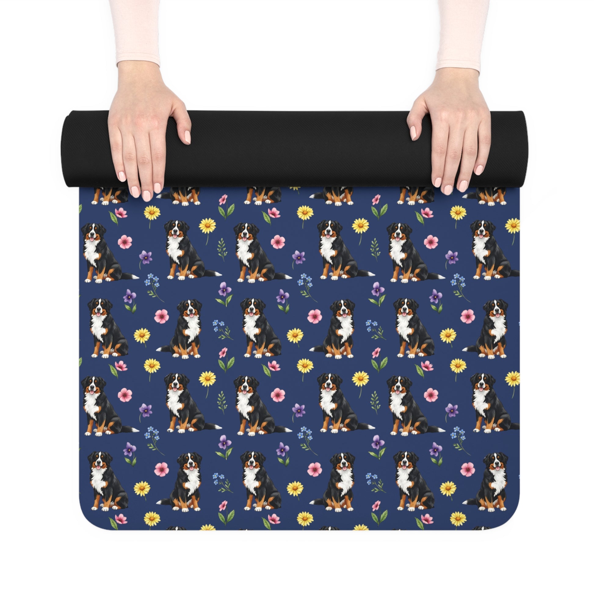 Bernese Mountain Dog Floral Yoga Mat – Durable Non-Slip Rubber Surface for Home & Studio Practice