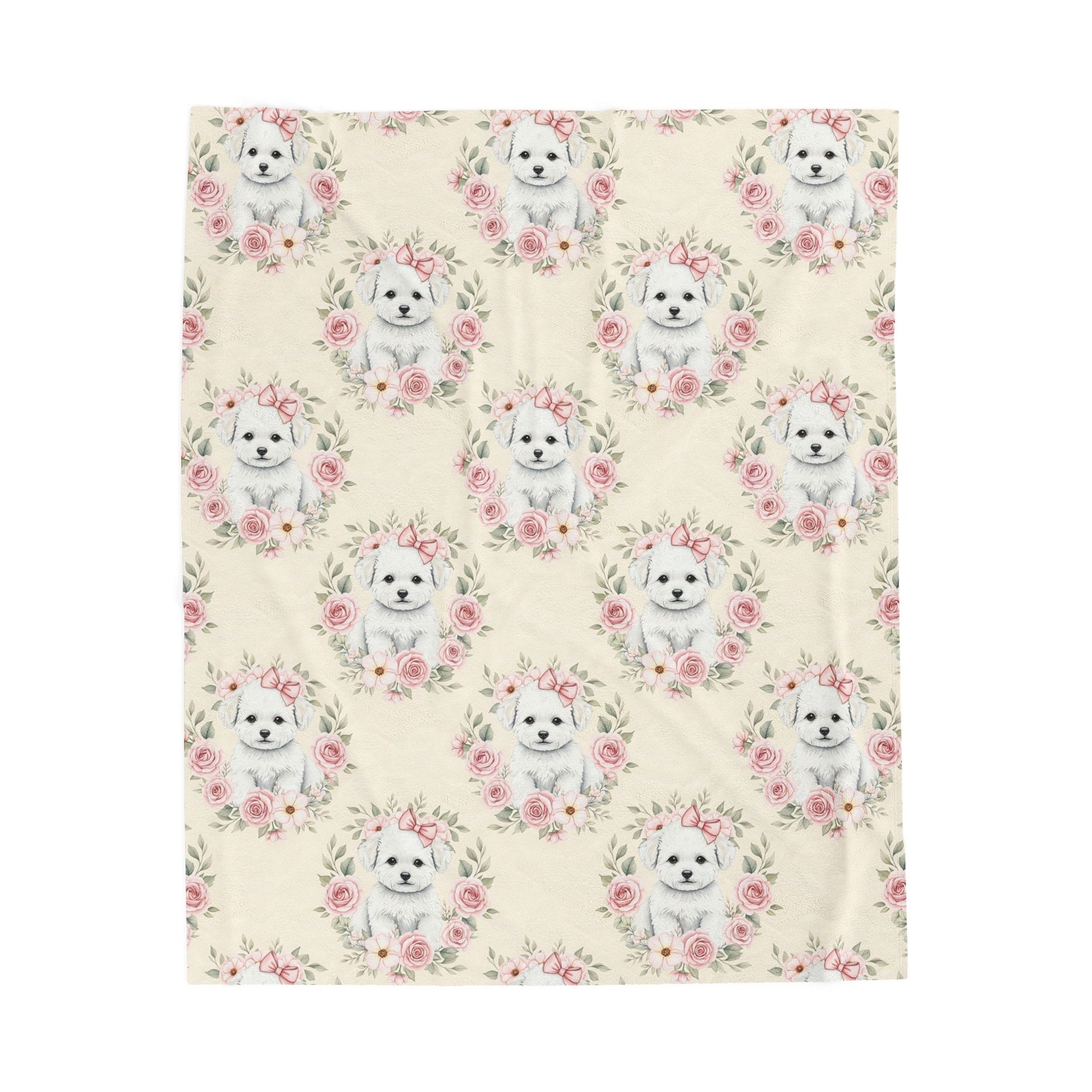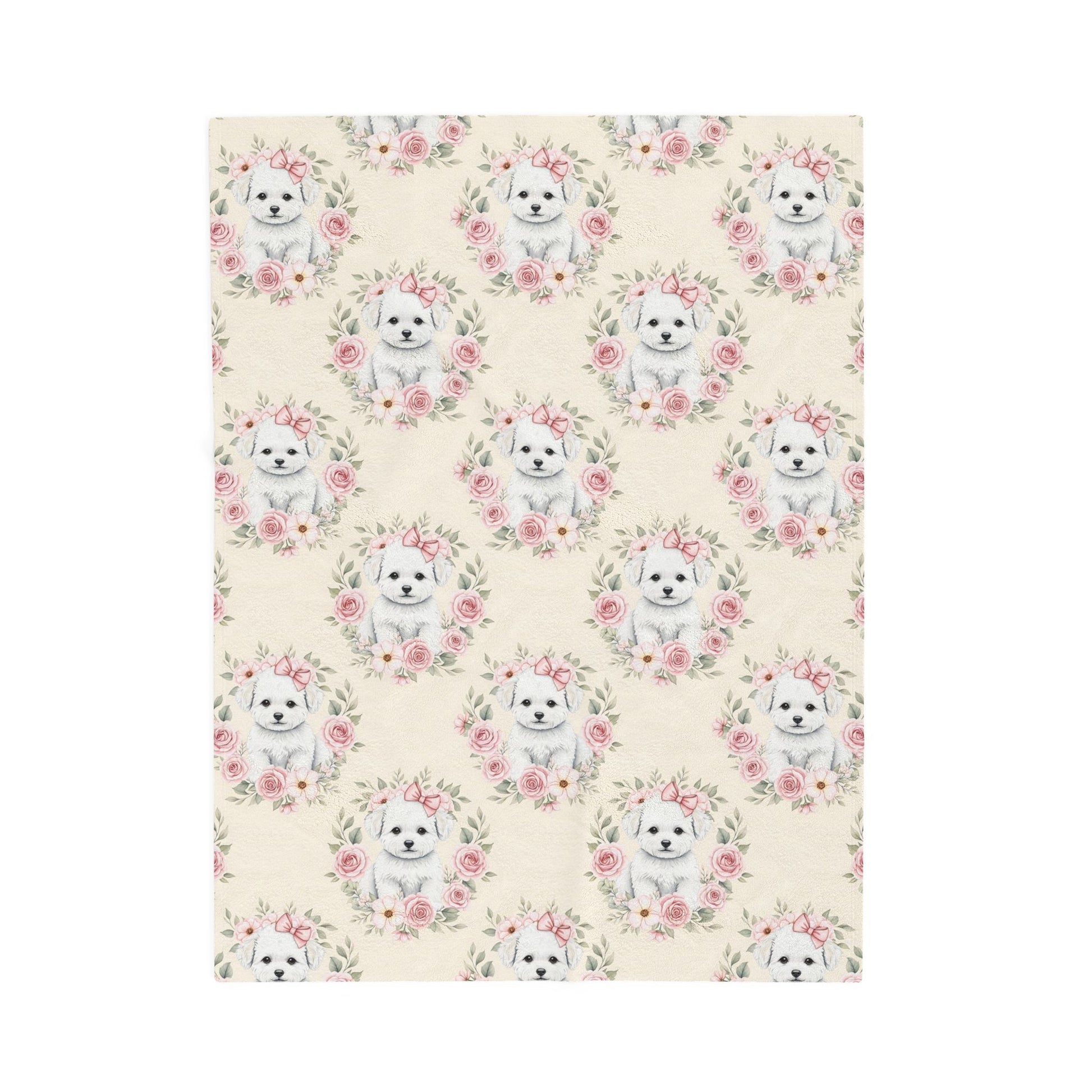 Baby Puppy Floral Blanket – Soft & Adorable Nursery Blanket for Girls