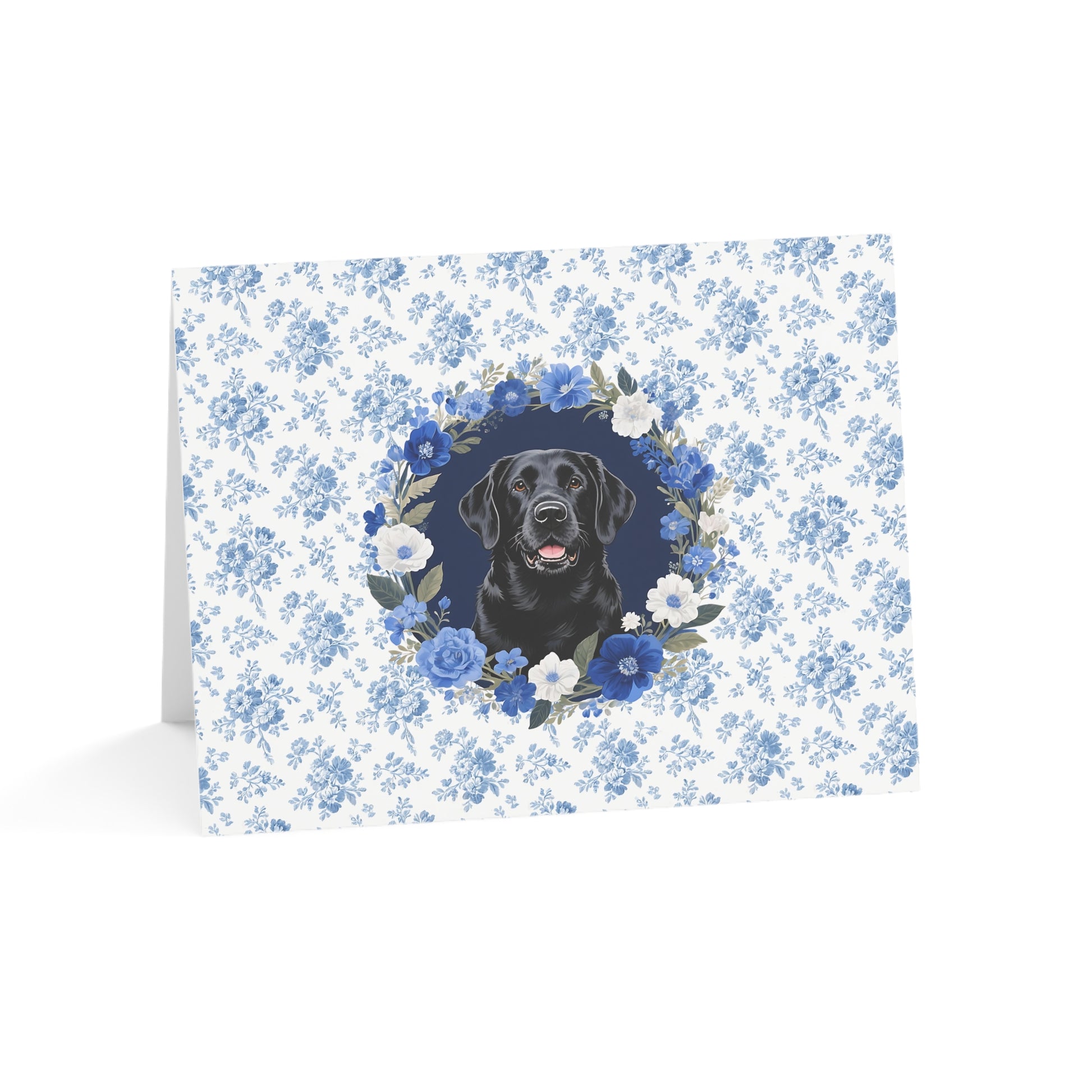 Black Labrador Retriever Dog Blue Floral Greeting Card Set
