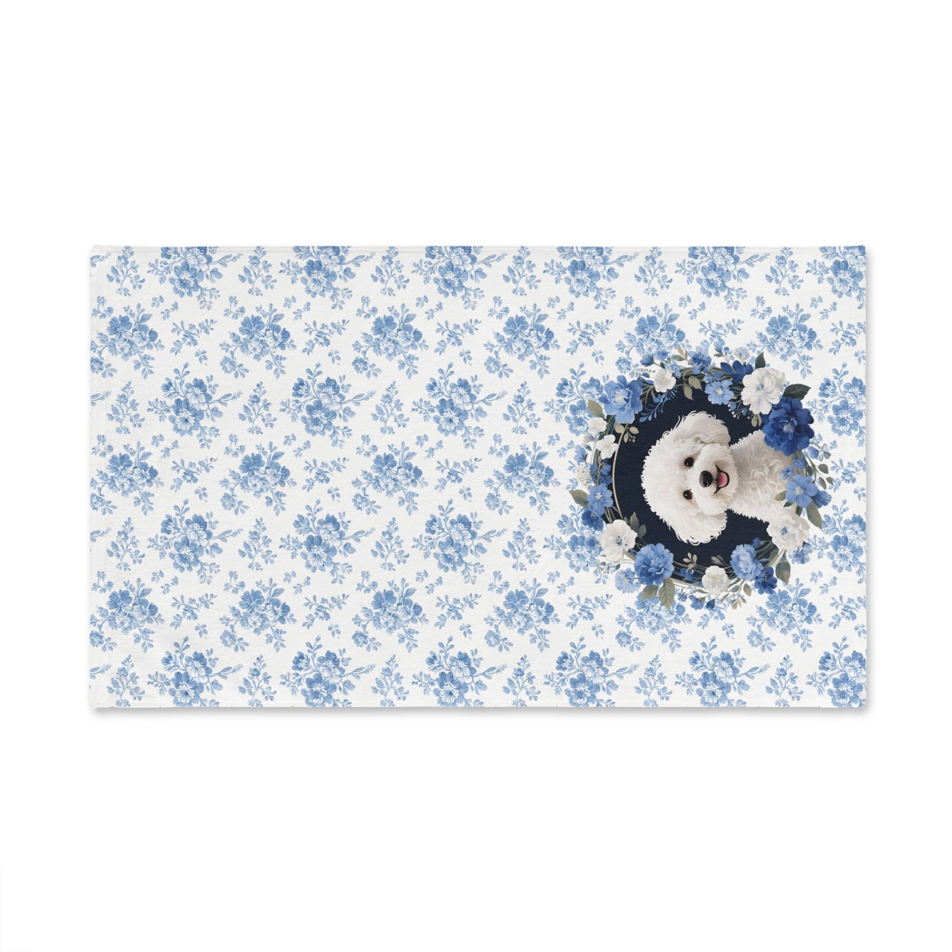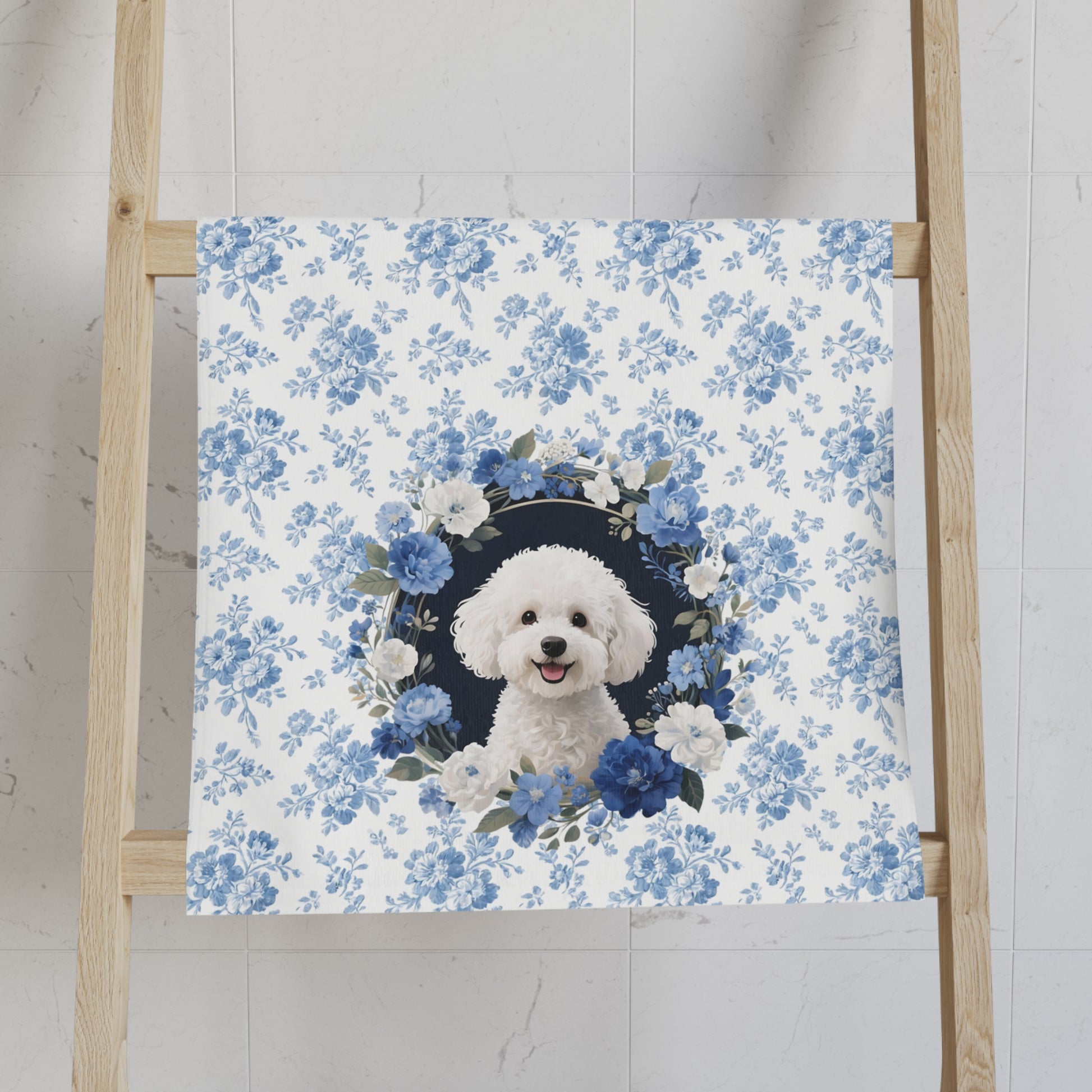 Blue Floral Bichon Frise Dog Portrait Hand Towel – Cute Pet Bathroom Accessory