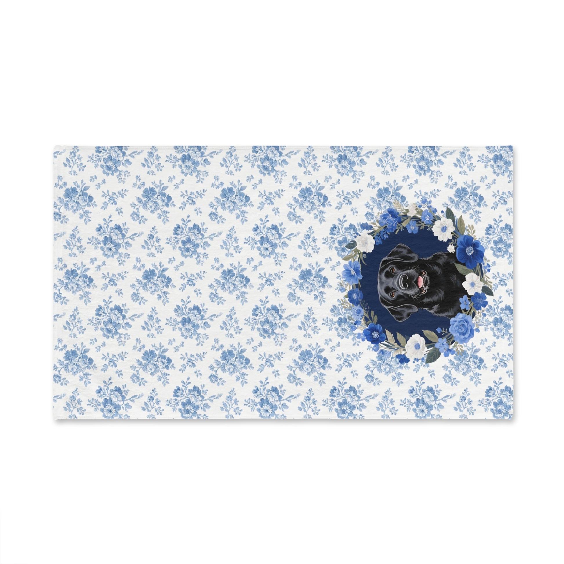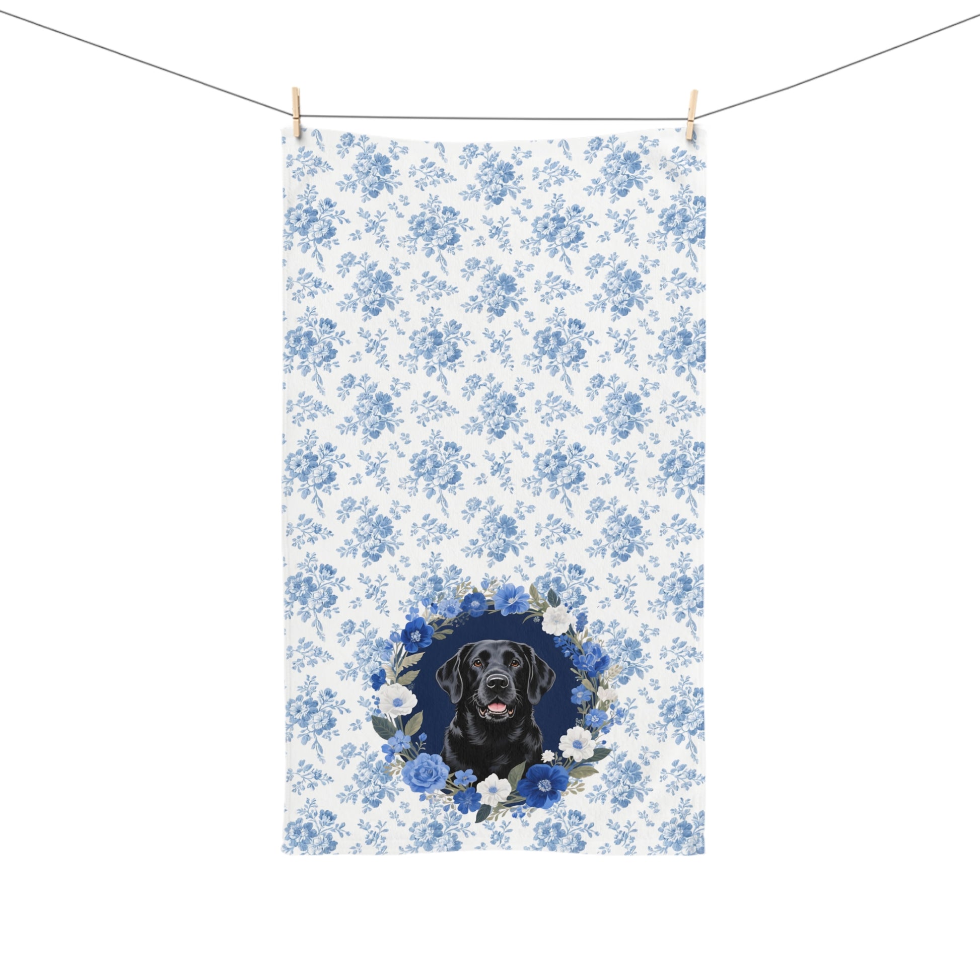 Blue Floral Black Labrador Retriever Dog Portrait Hand Towel – Cute Pet Bathroom Accessory