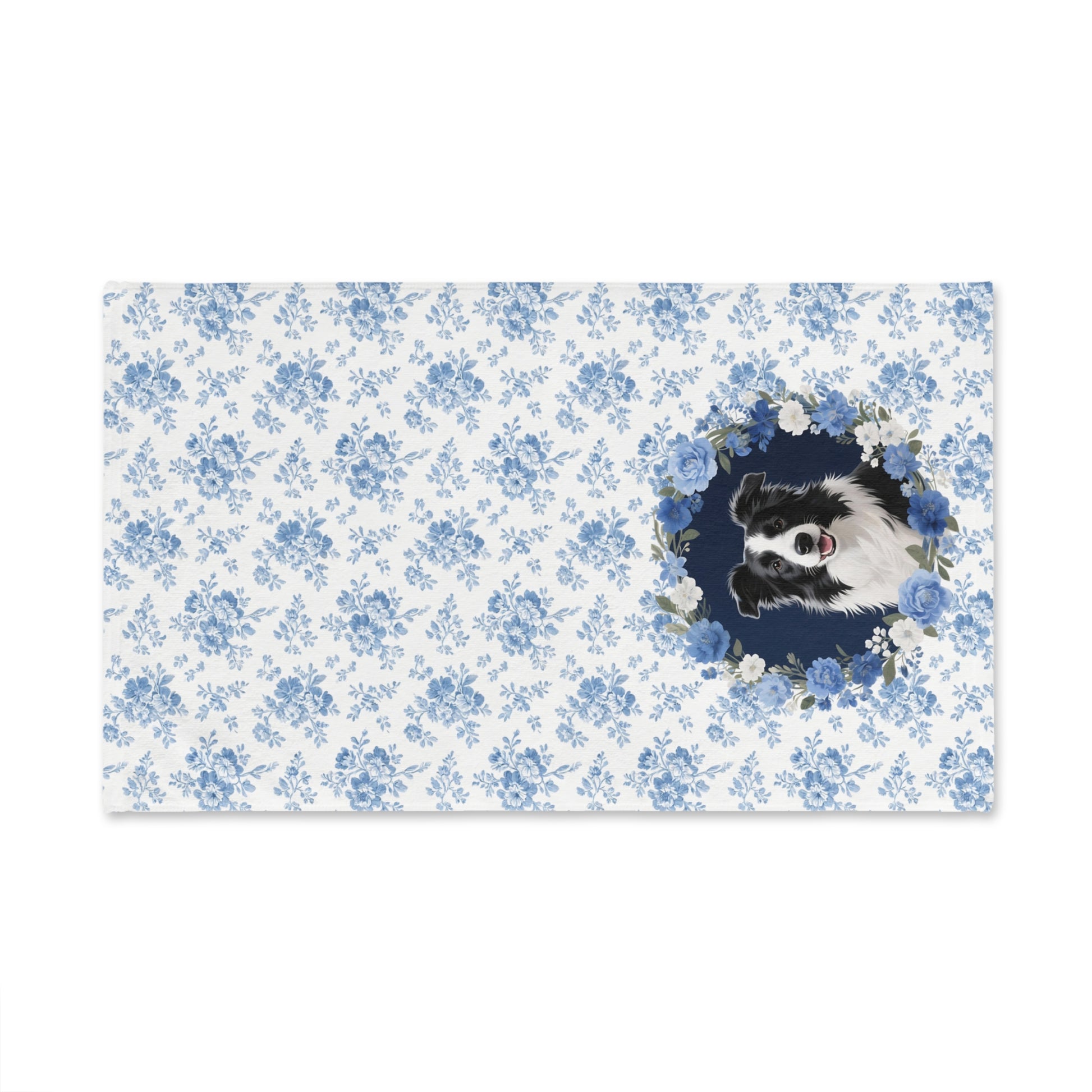 Blue Floral Border Collie Dog Portrait Hand Towel – Cute Pet Bathroom Accessory