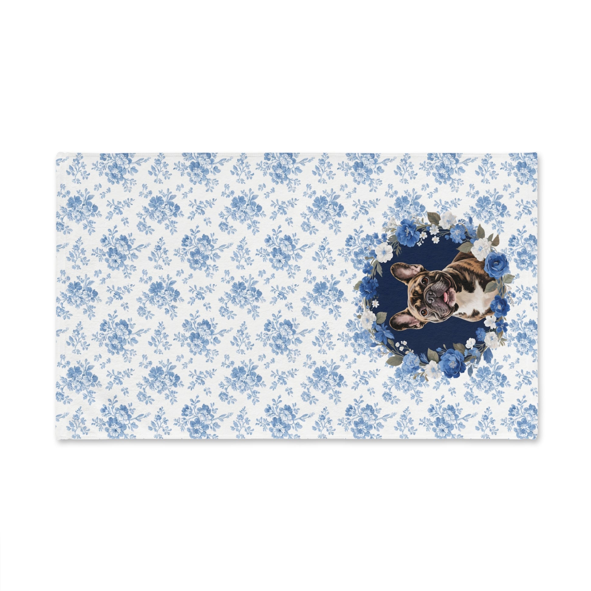 Blue Floral Brindle French Bulldog Portrait Hand Towel – Cute Pet Bathroom Accessory