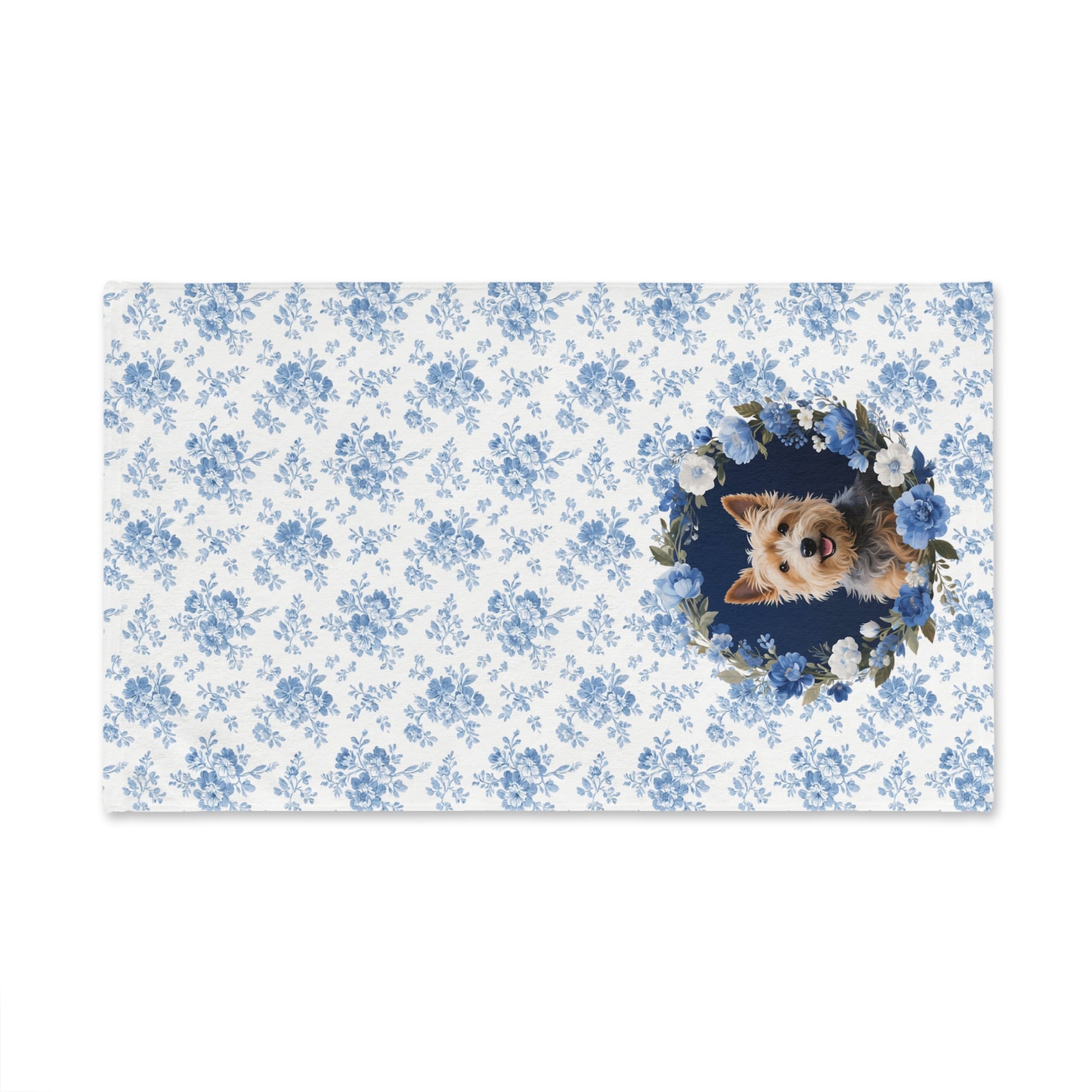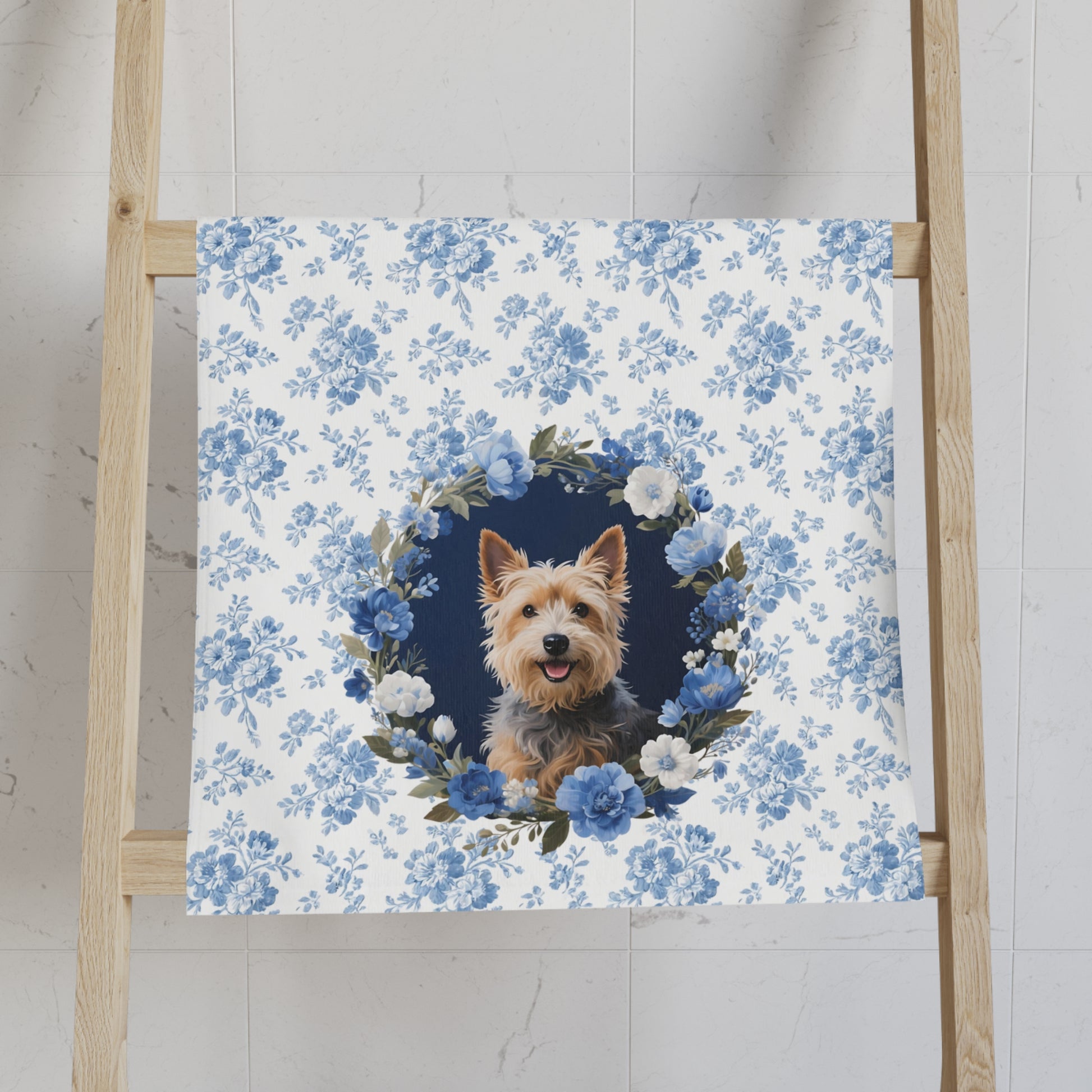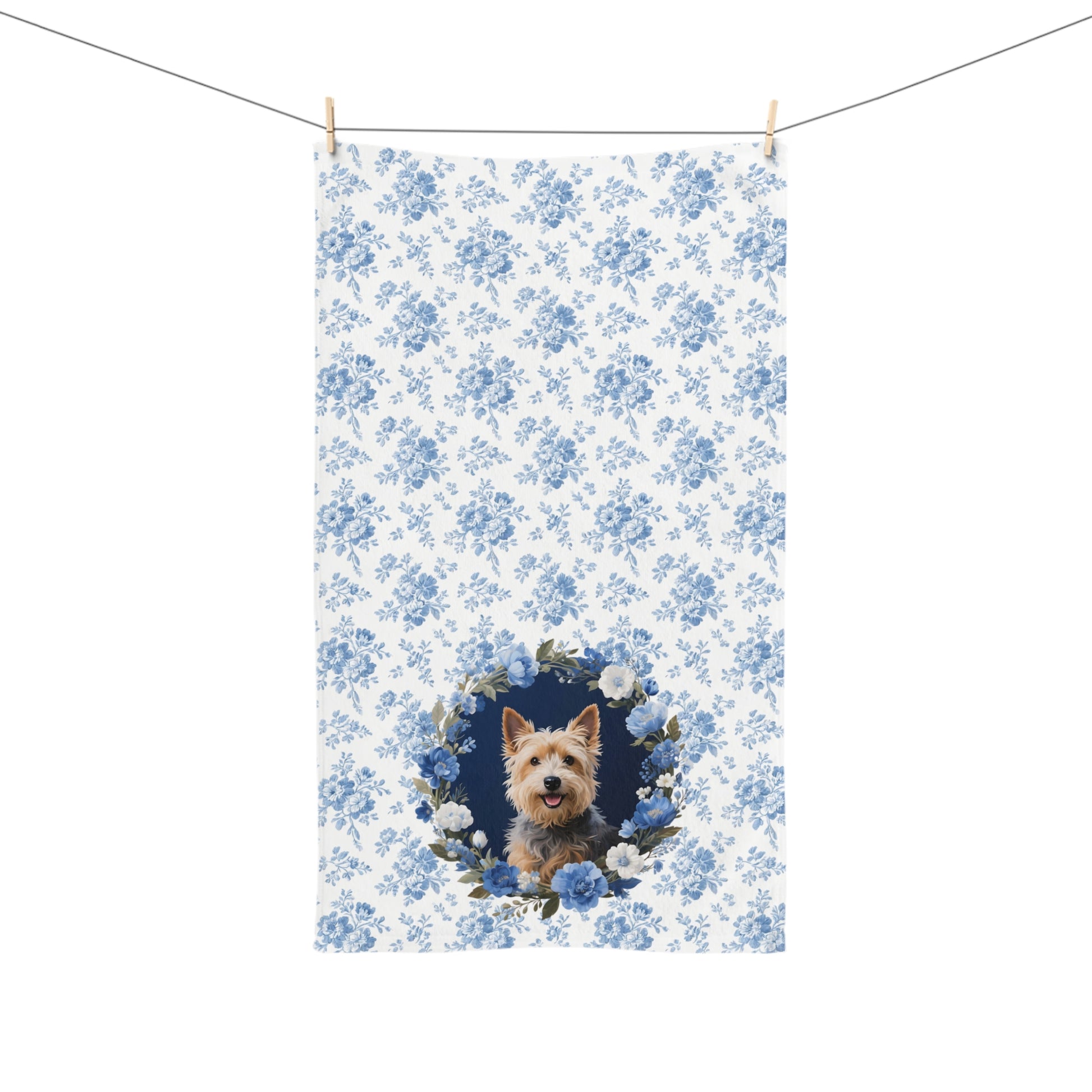 Blue Floral Cairn Terrier Dog Portrait Hand Towel – Cute Pet Bathroom Accessory