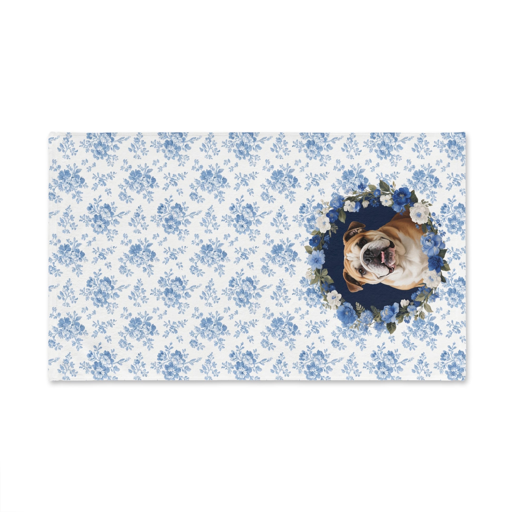 Blue Floral English Bulldog Portrait Hand Towel – Cute Pet Bathroom Accessory