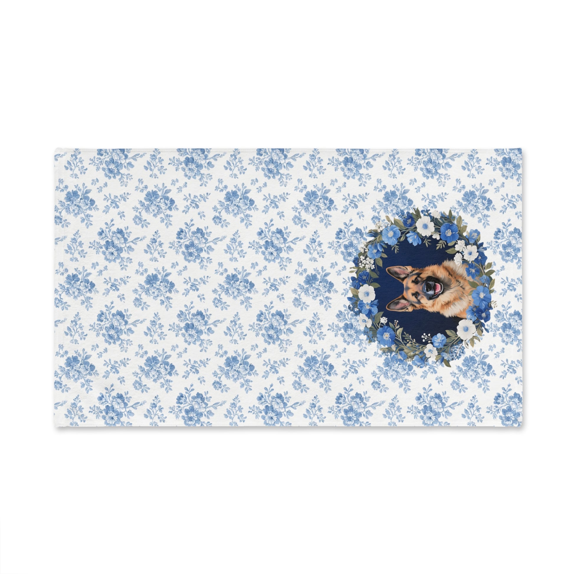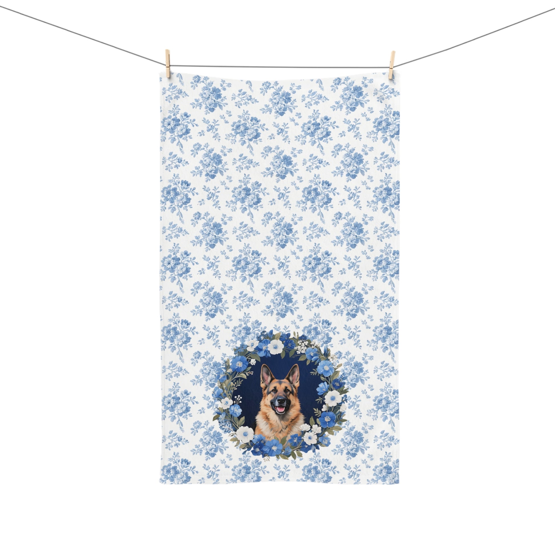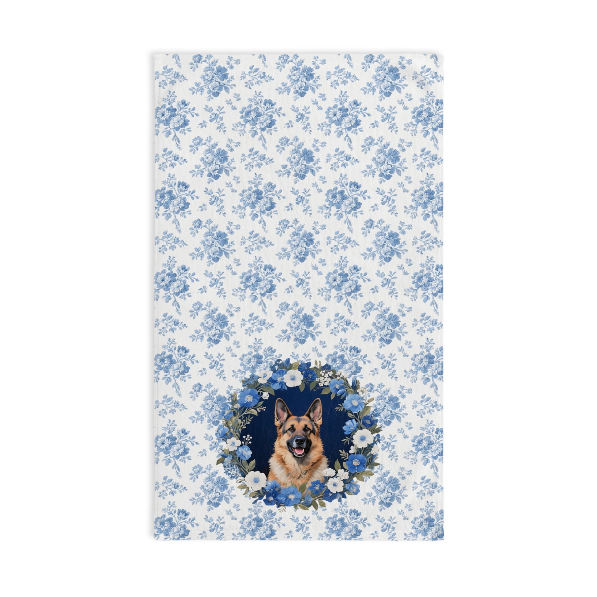 Blue Floral German Shepherd Dog Portrait Hand Towel – Cute Pet Bathroom Accessory