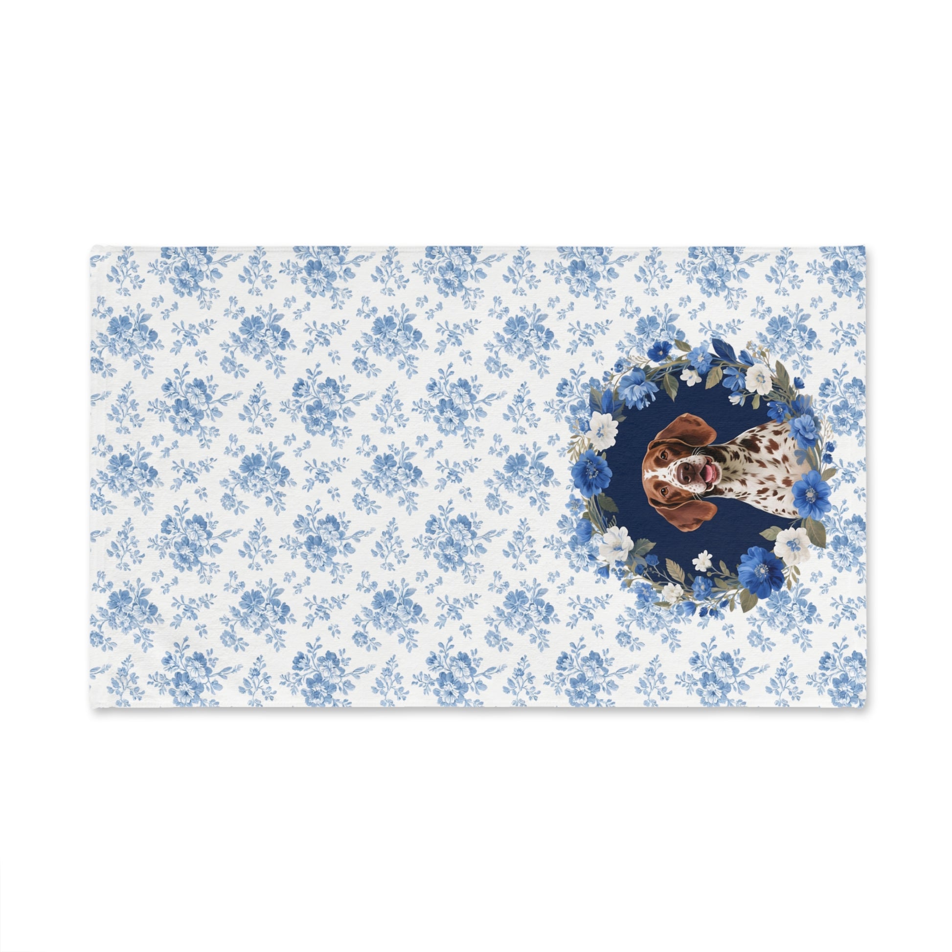 Blue Floral German Shorthaired Pointer Dog Portrait Hand Towel – Cute Pet Bathroom Accessory