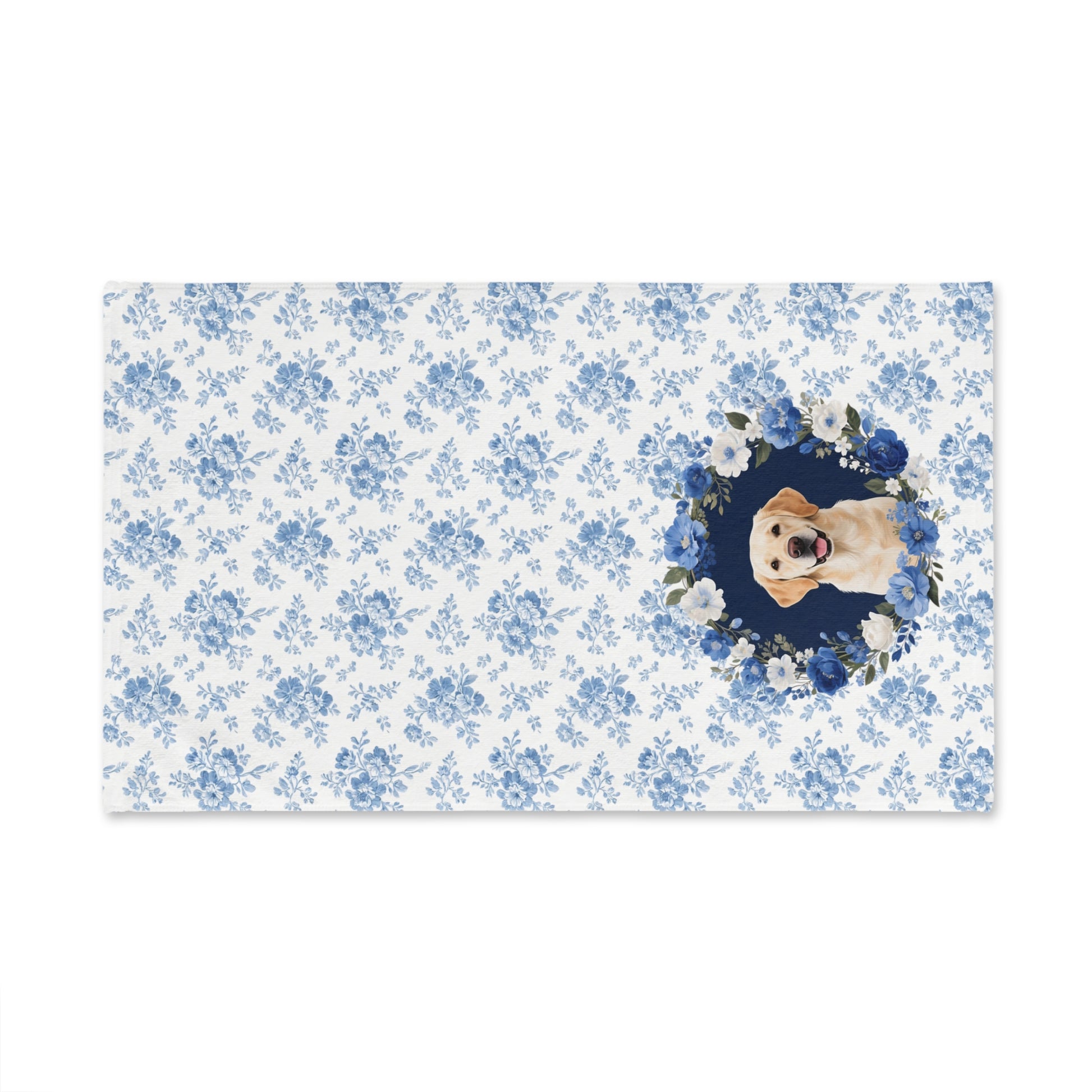 Blue Floral Labrador Retriever Dog Portrait Hand Towel – Cute Pet Bathroom Accessory