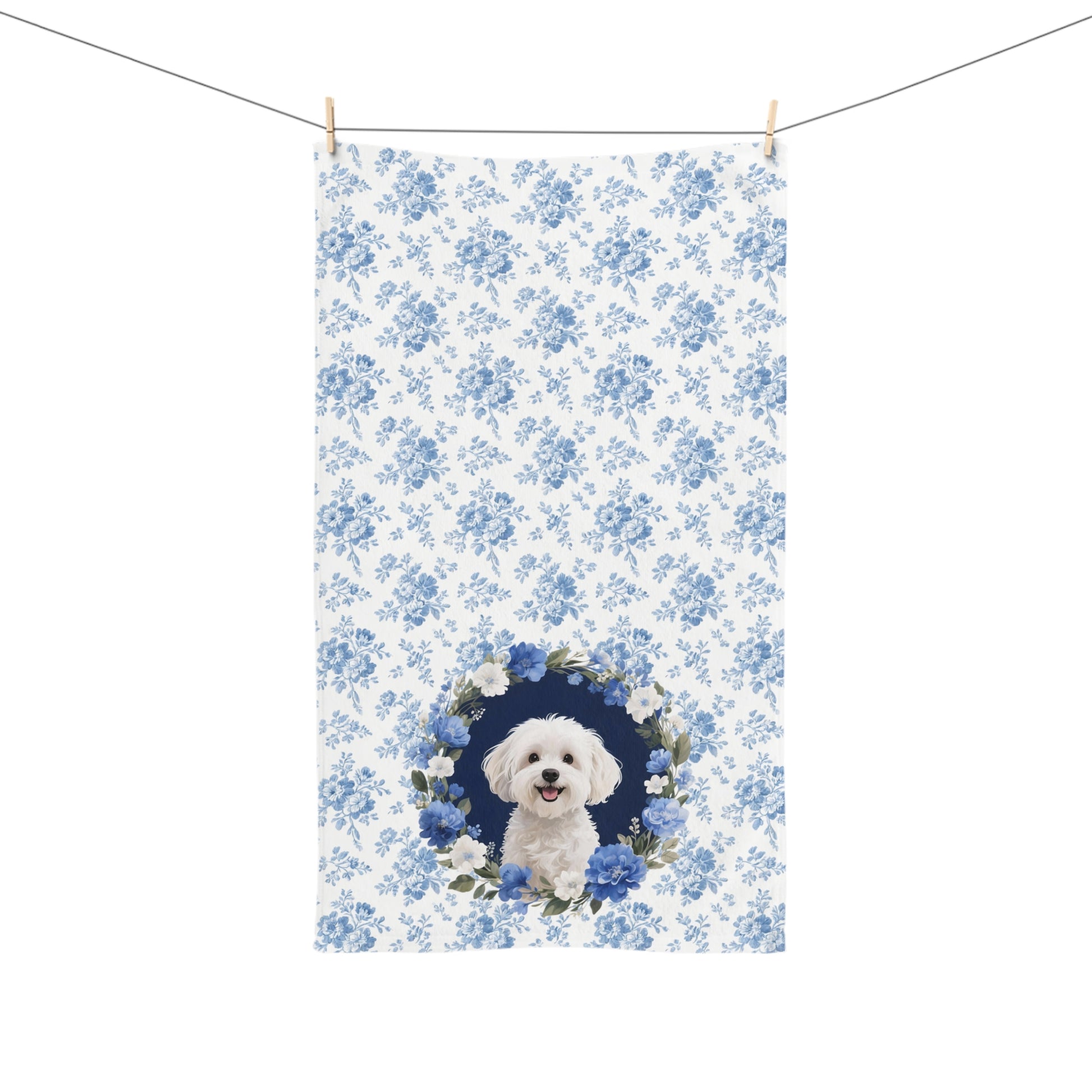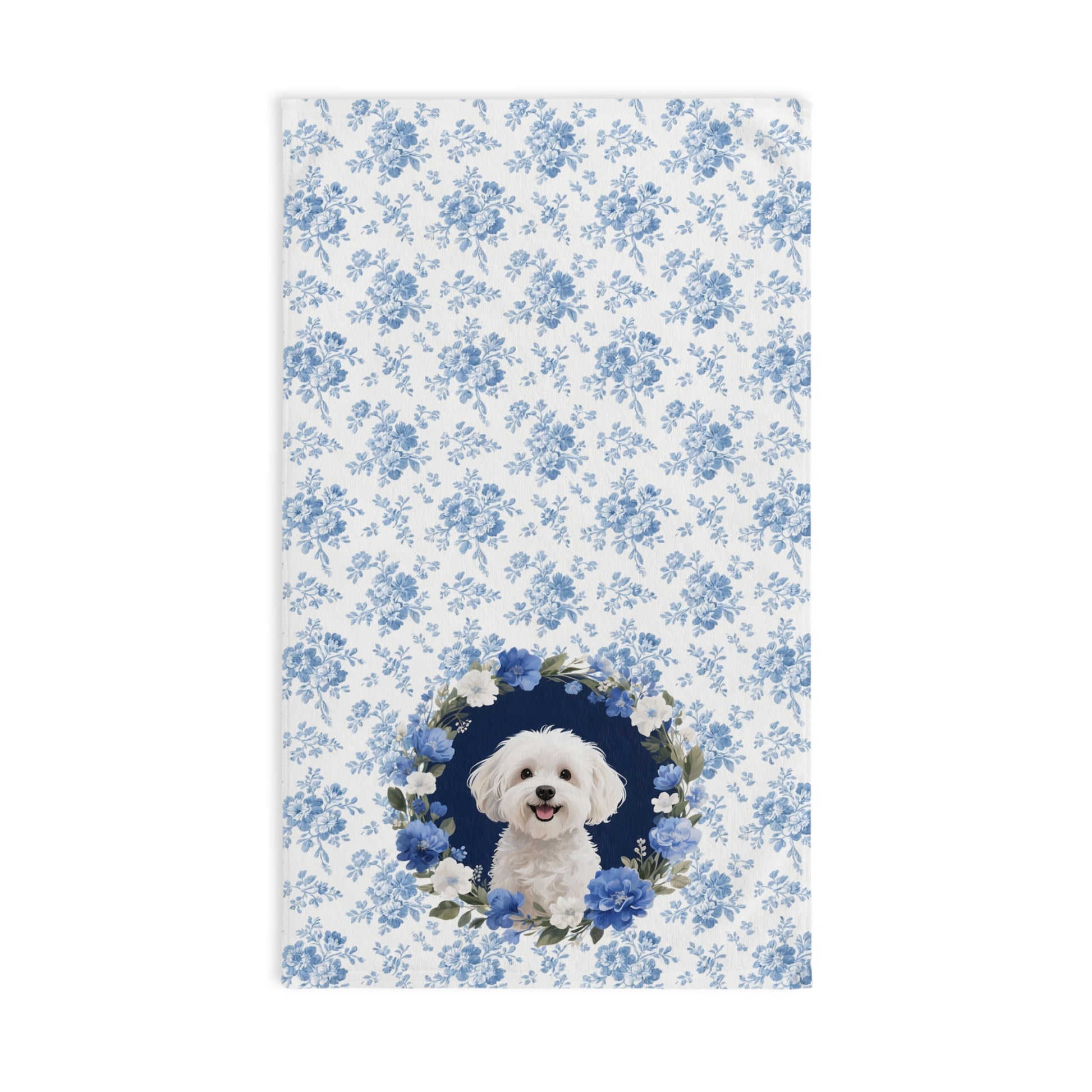 Blue Floral Maltese Dog Portrait Hand Towel – Cute Pet Bathroom Accessory