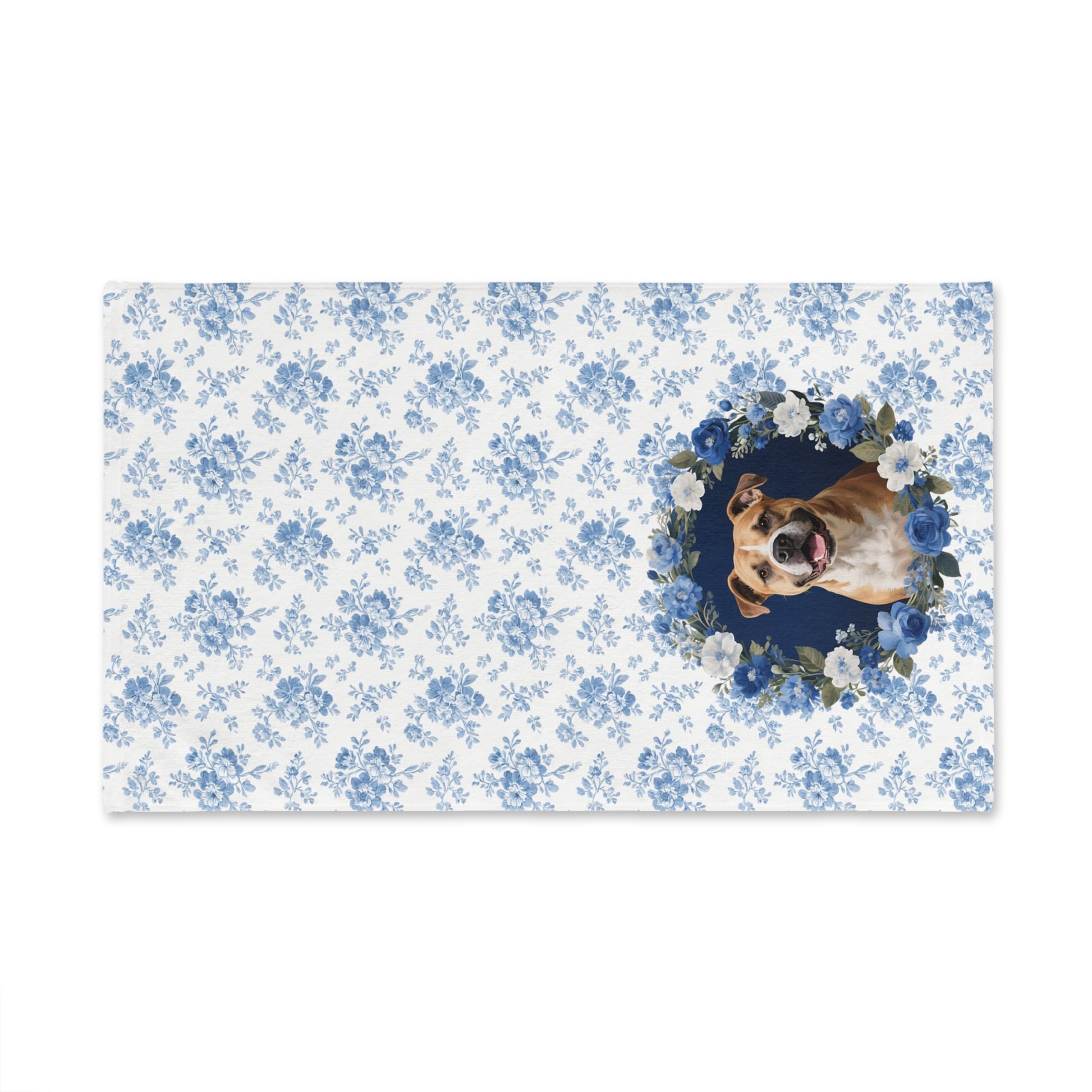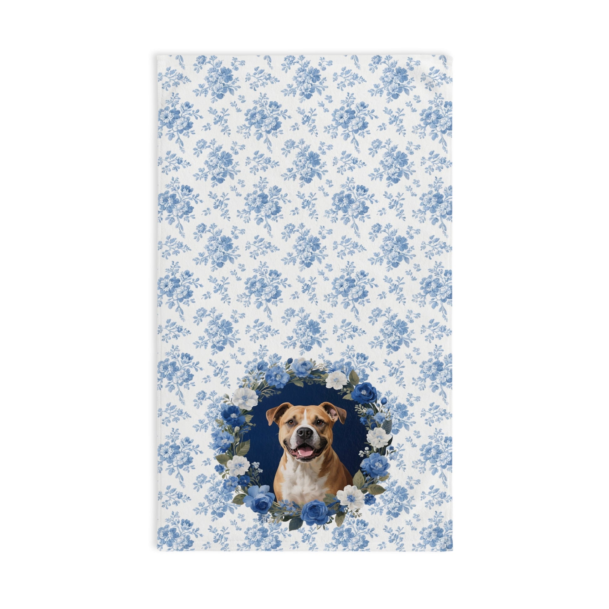 Blue Floral Pitbull Dog Portrait Hand Towel – Cute Pet Bathroom Accessory