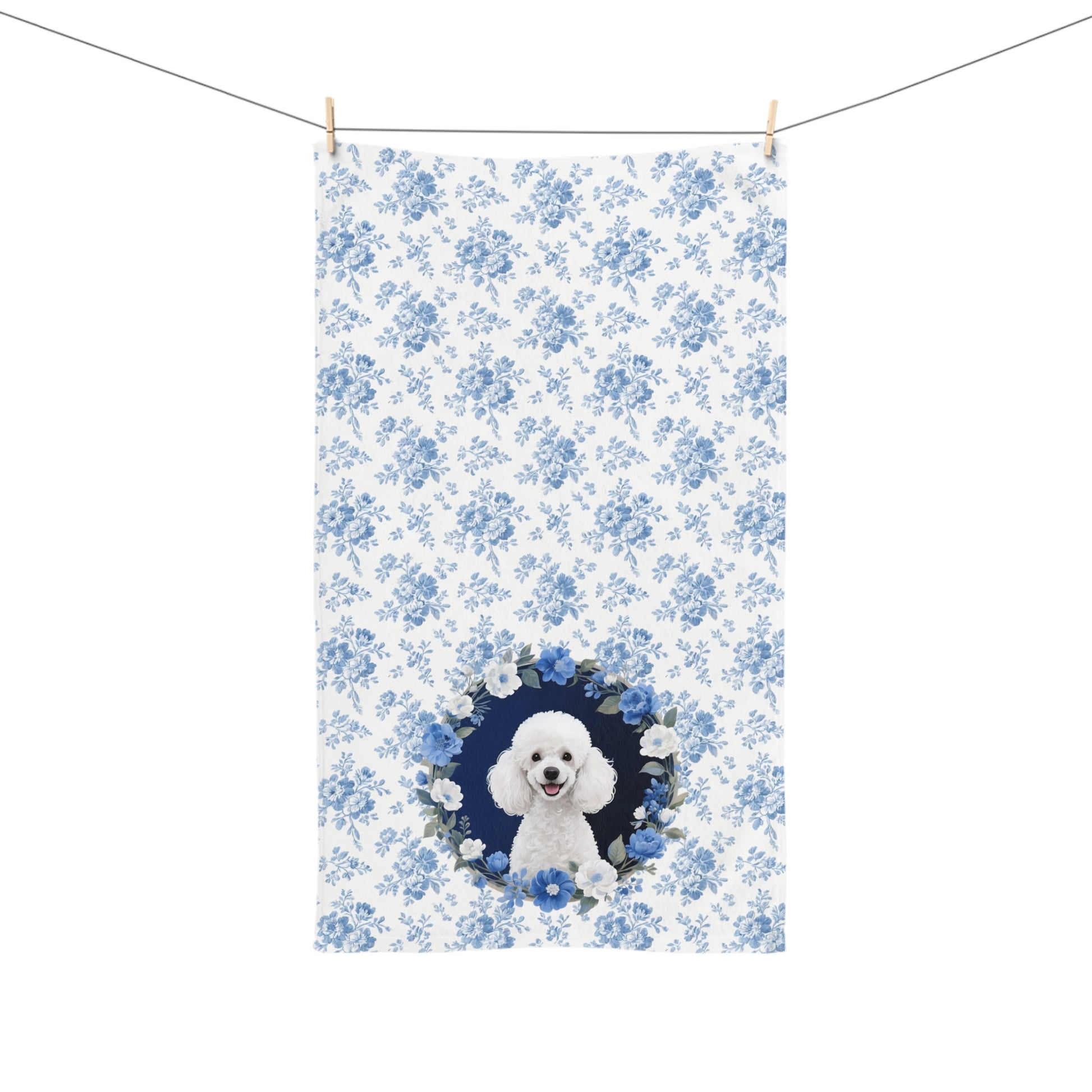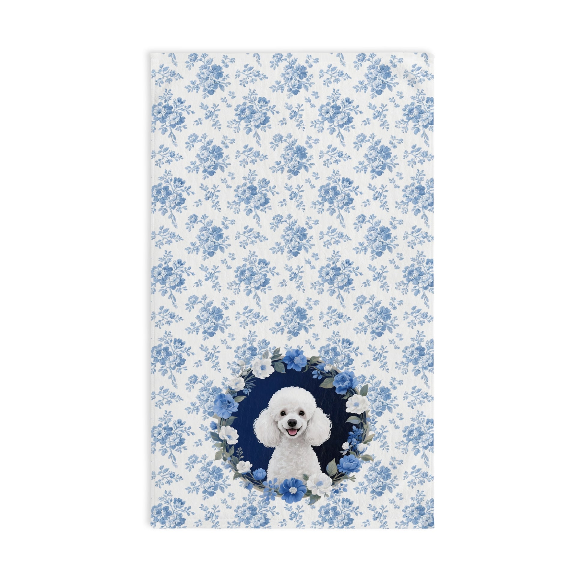 Blue Floral Poodle Dog Portrait Hand Towel – Cute Pet Bathroom Accessory