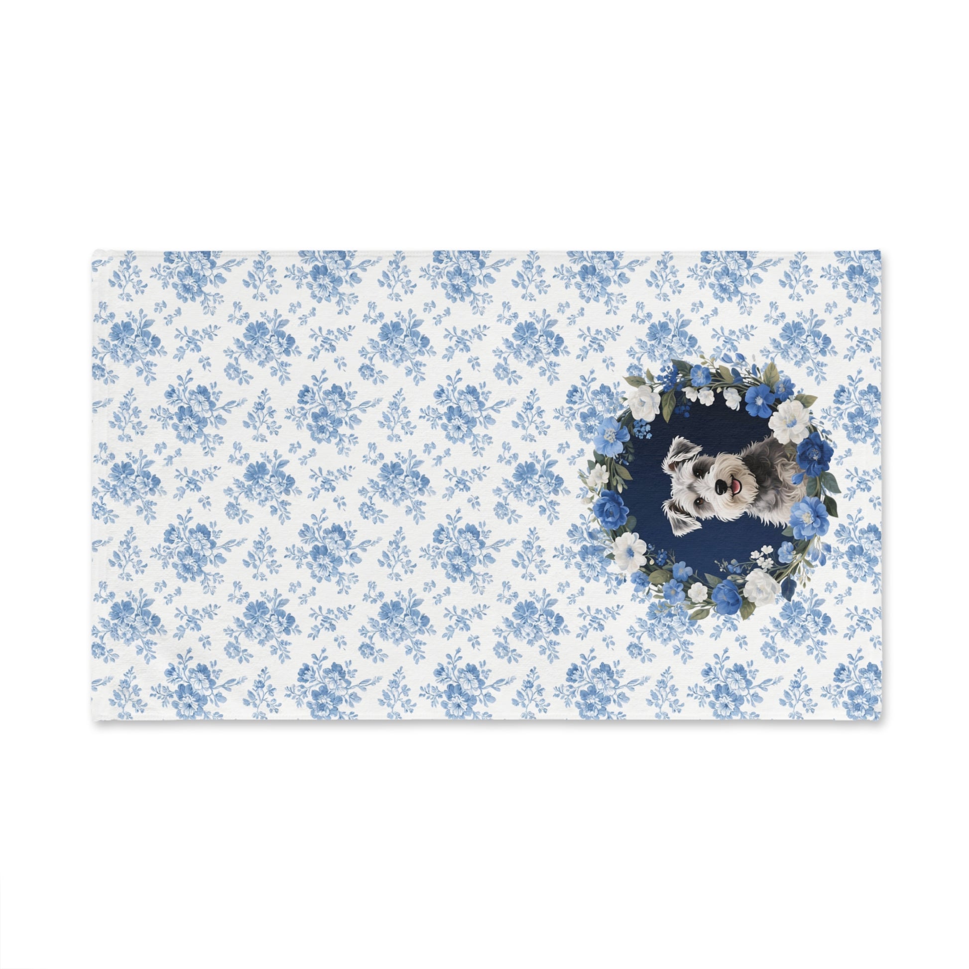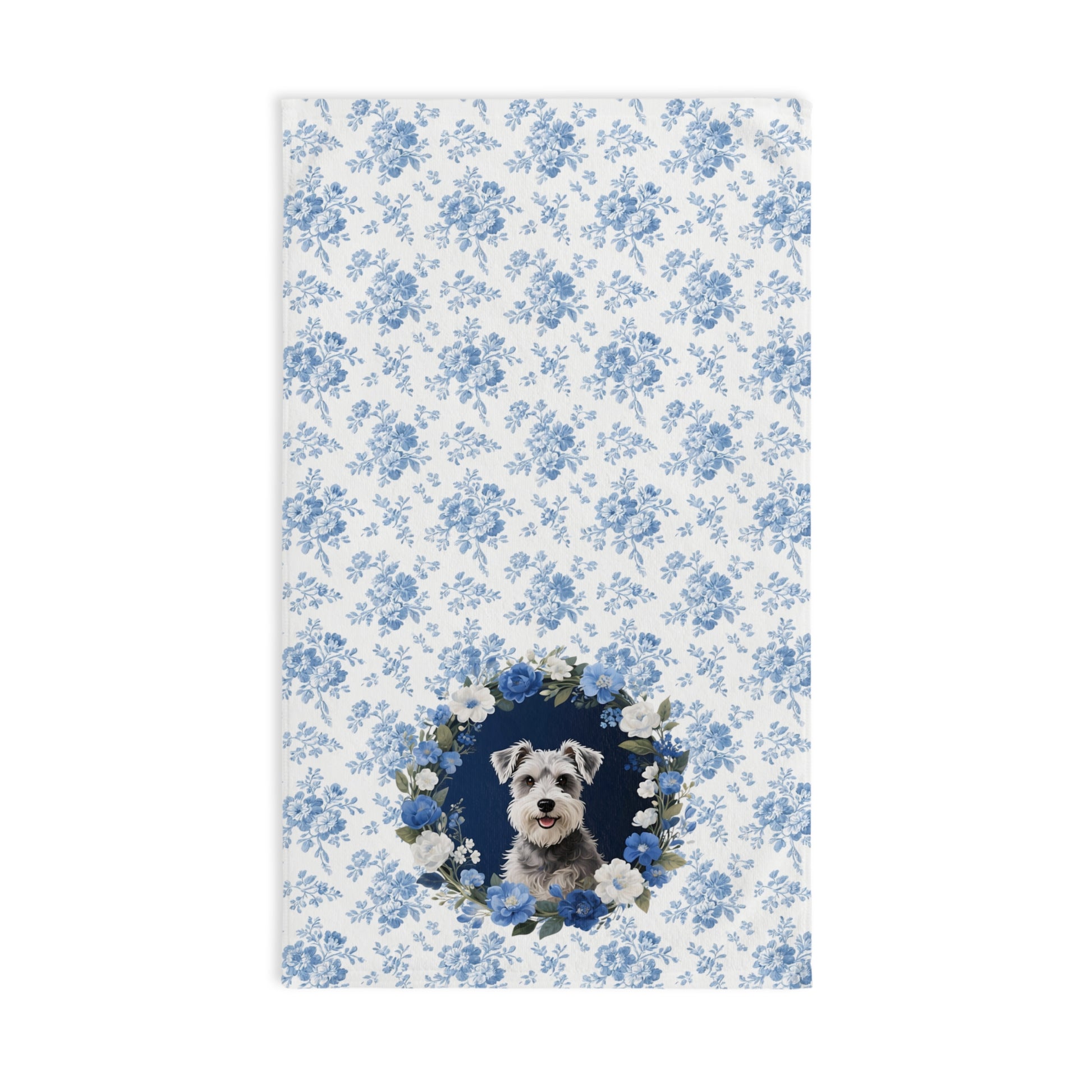 Blue Floral Schnauzer Dog Portrait Hand Towel – Cute Pet Bathroom Accessory