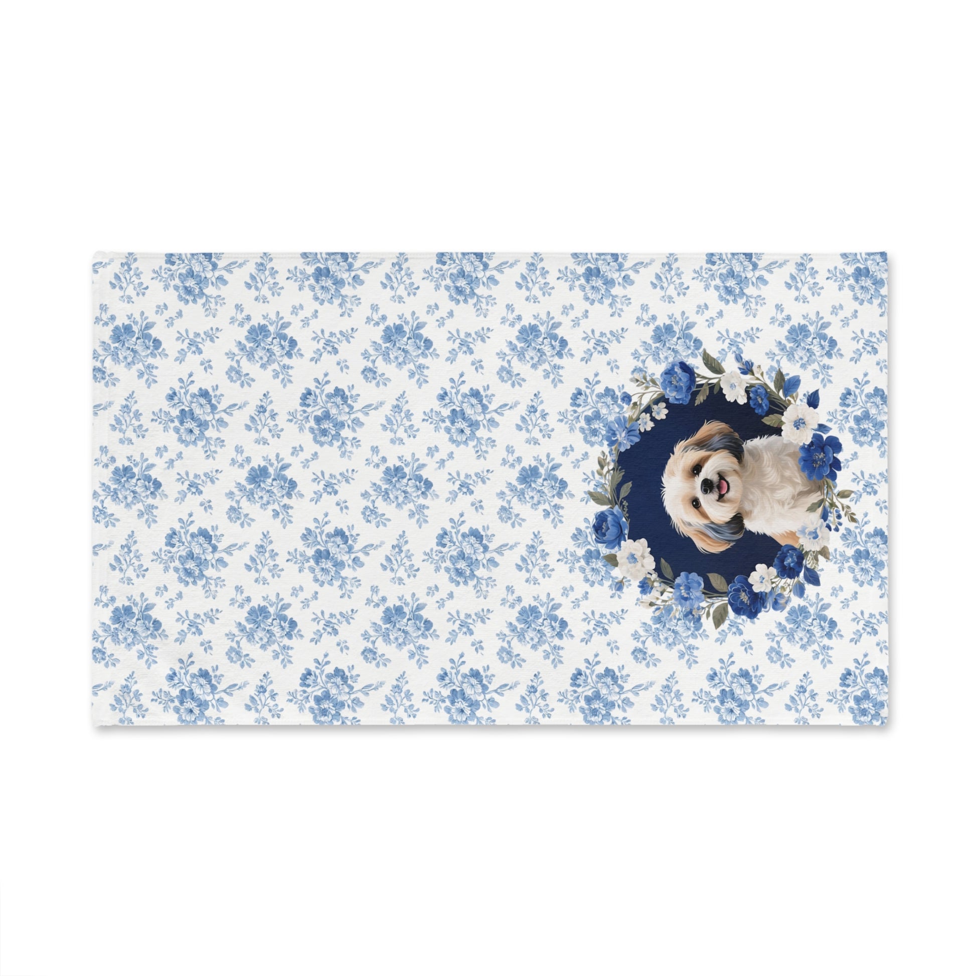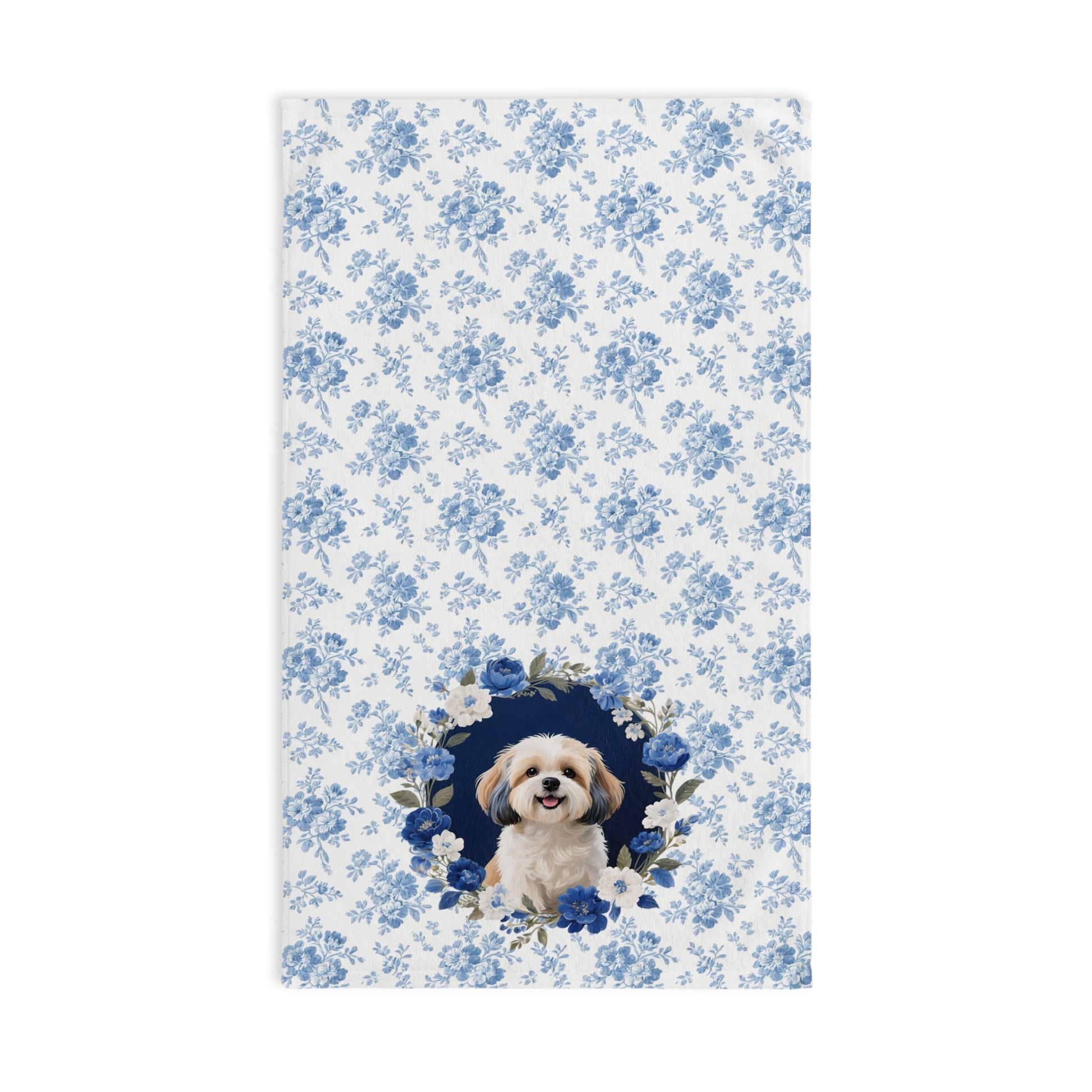 Blue Floral Shih Tzu Dog Portrait Hand Towel – Cute Pet Bathroom Accessory
