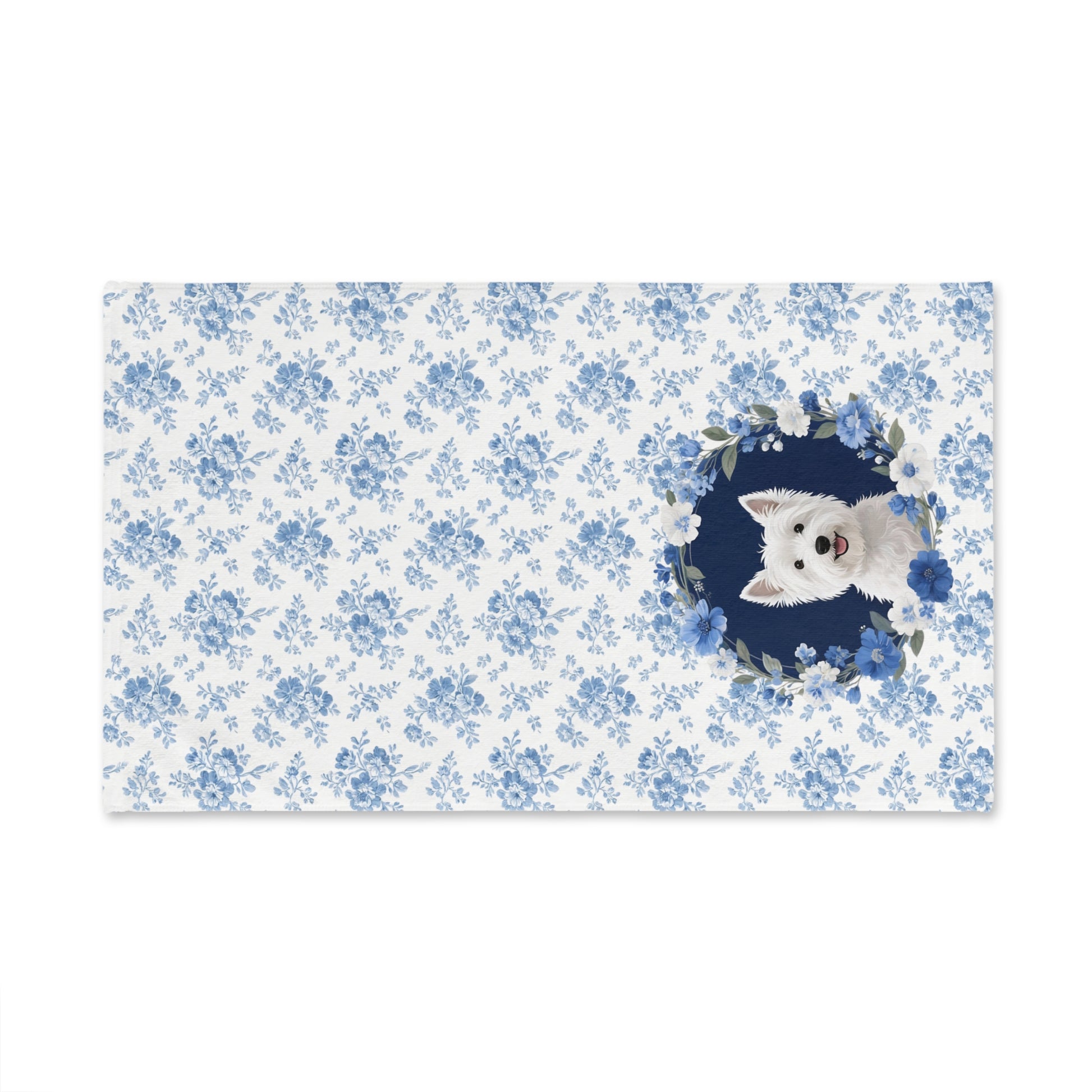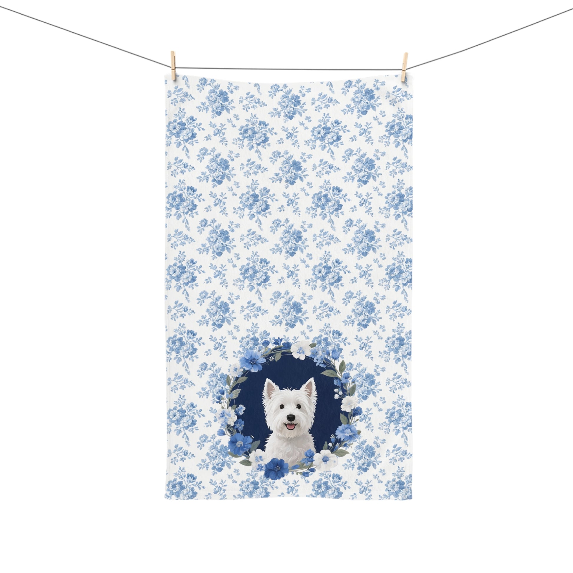 Blue Floral West Highland White Terrier Dog Portrait Hand Towel – Cute Pet Bathroom Accessory
