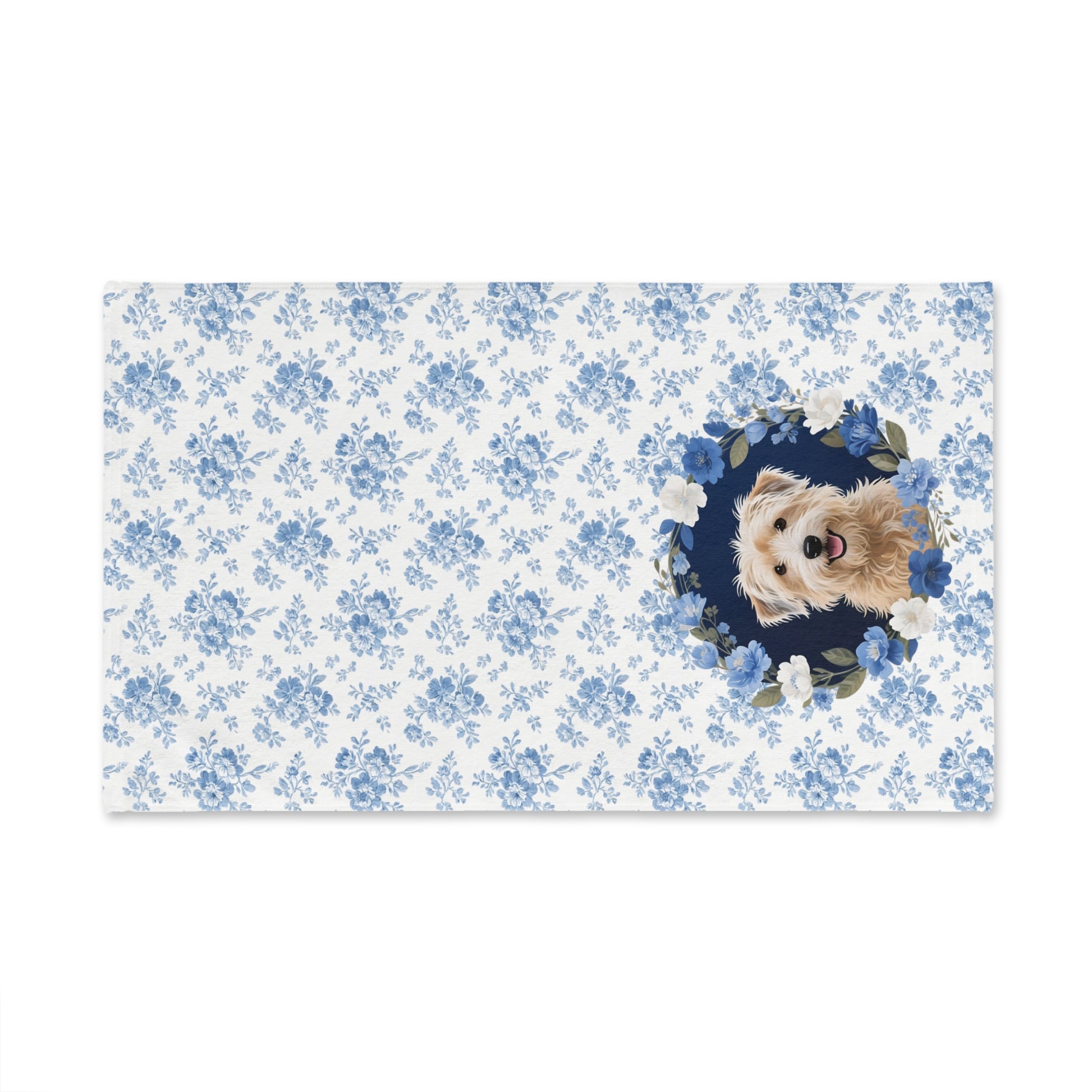 Blue Floral Wheaten Terrier Dog Portrait Hand Towel – Cute Pet Bathroom Accessory