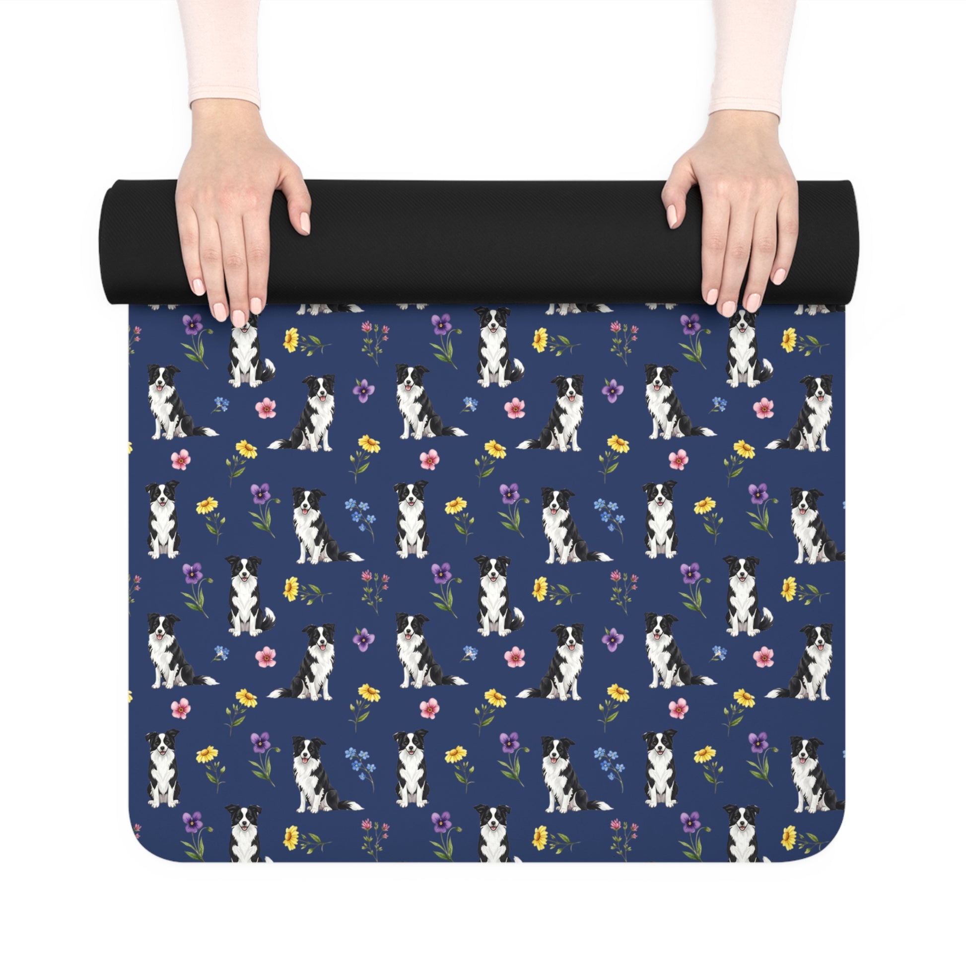 Border Collie Dog Floral Yoga Mat – Durable Non-Slip Rubber Surface for Home & Studio Practice