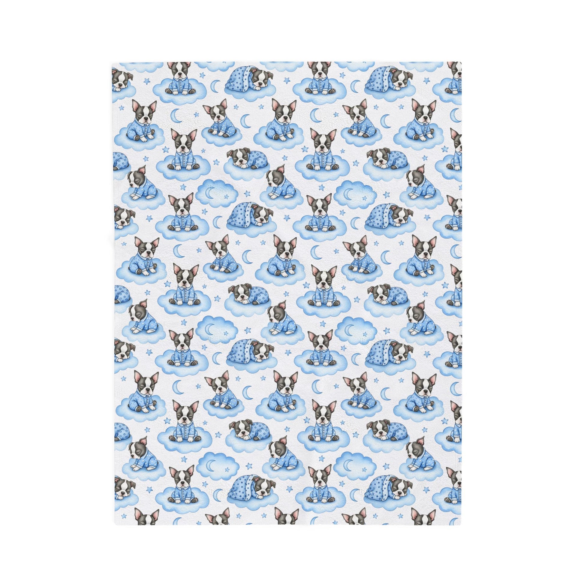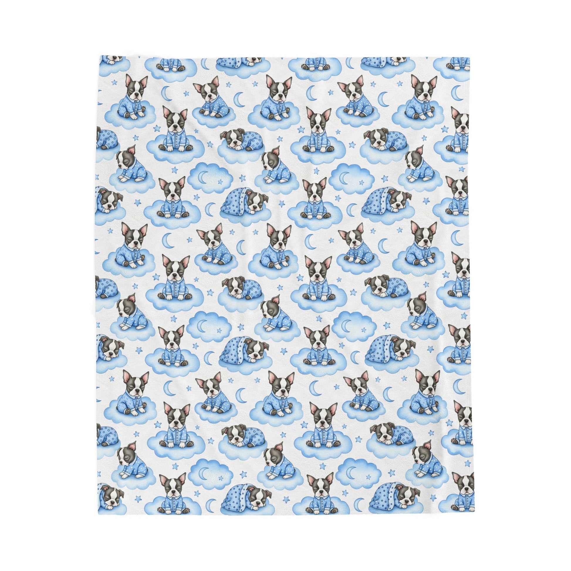 Boston Terrier Dog Blue Baby Blanket, Boston Terrier Baby Shower Baby Boy Newborn Gift Hospital Announcement Blanket Coming Home
