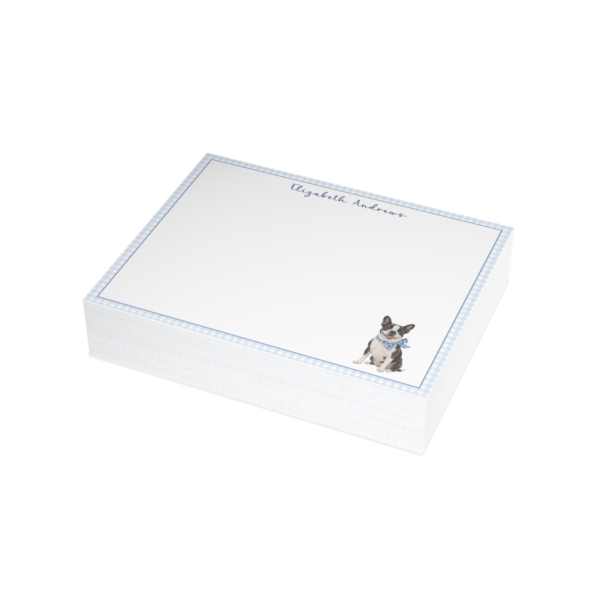 Boston Terrier Dog Blue Gingham Personalized Notecard Set