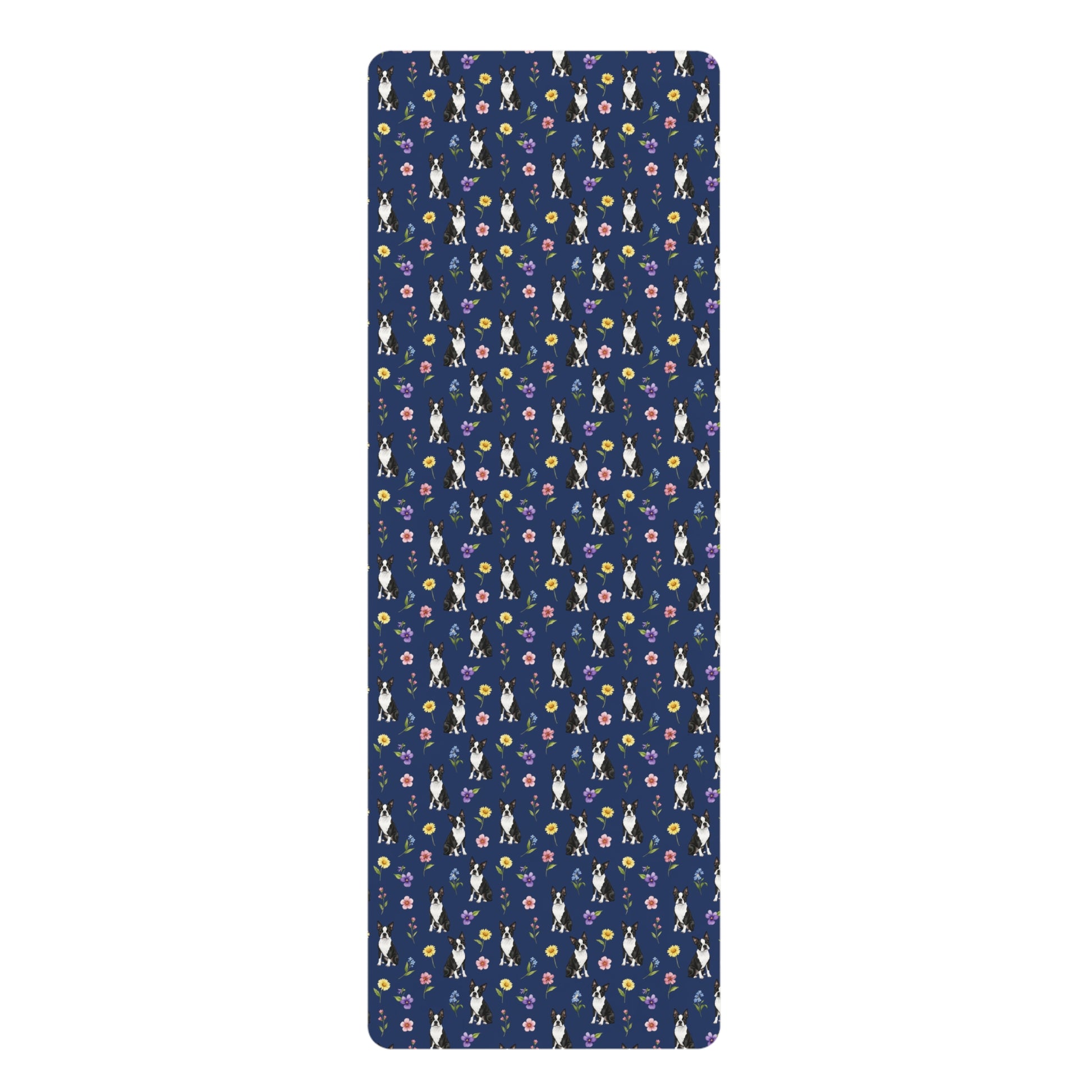 Boston Terrier Dog Floral Yoga Mat – Durable Non-Slip Rubber Surface for Home & Studio Practice