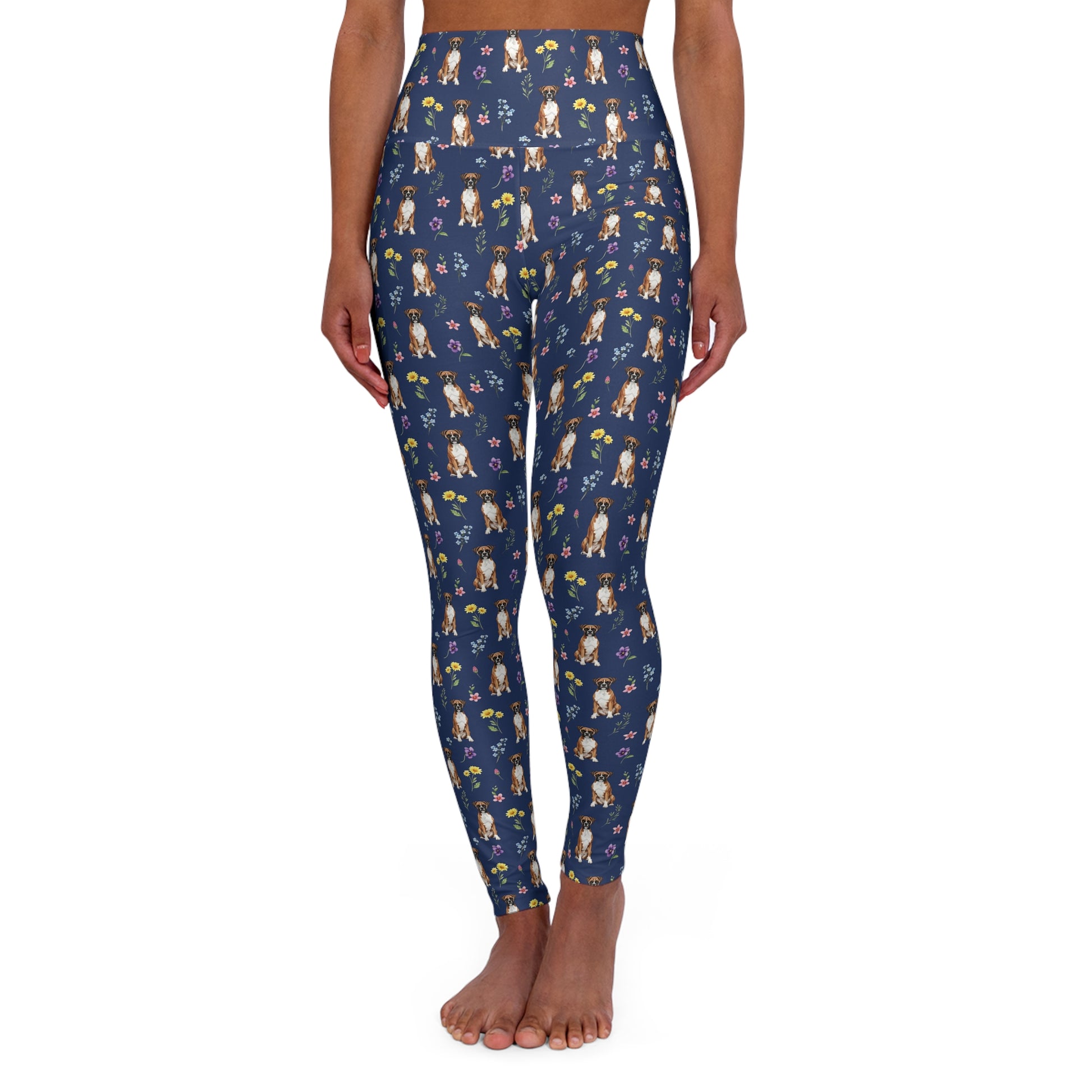 Boxer Dog Floral High Waisted Yoga Leggings - Perfect for Fitness & Everyday Wear