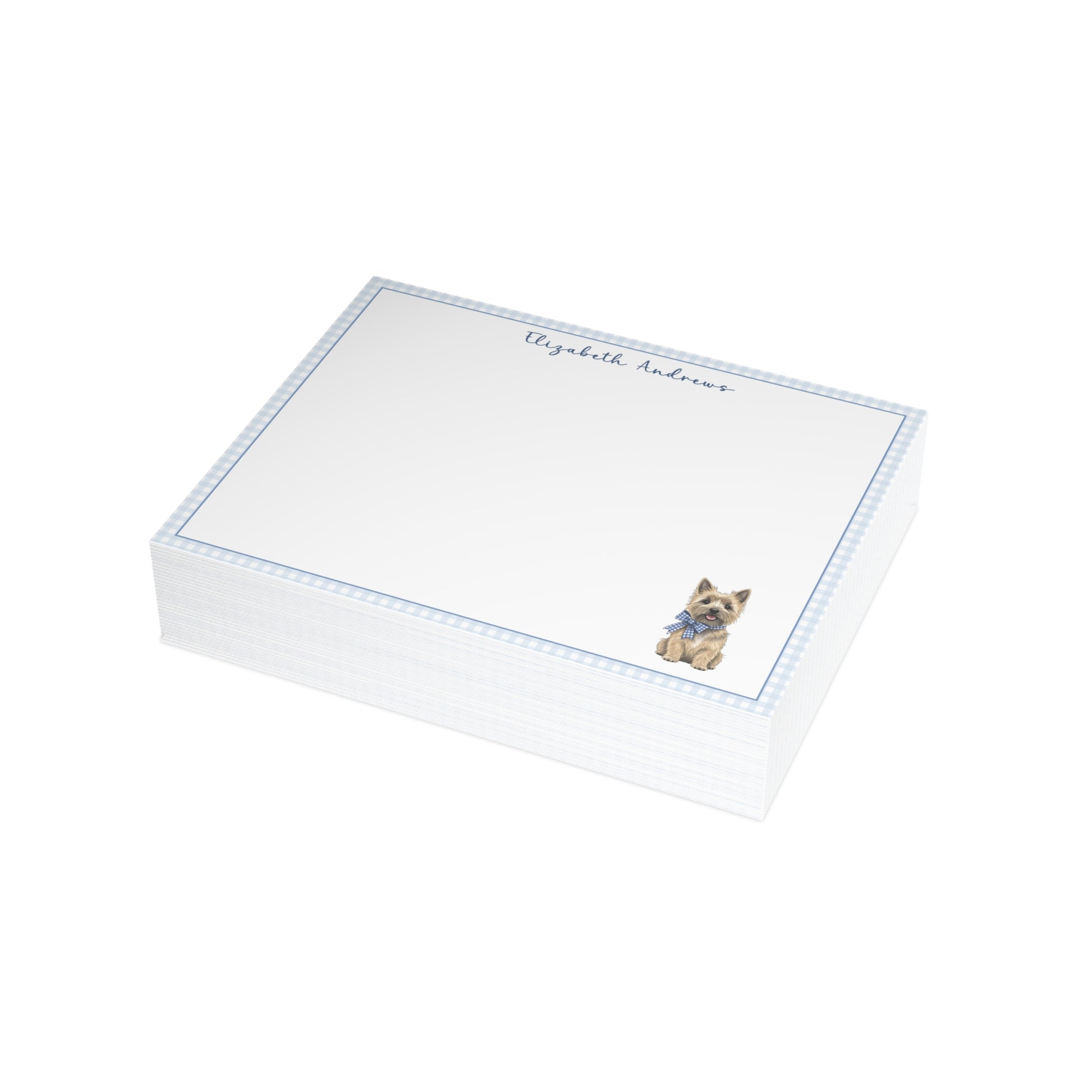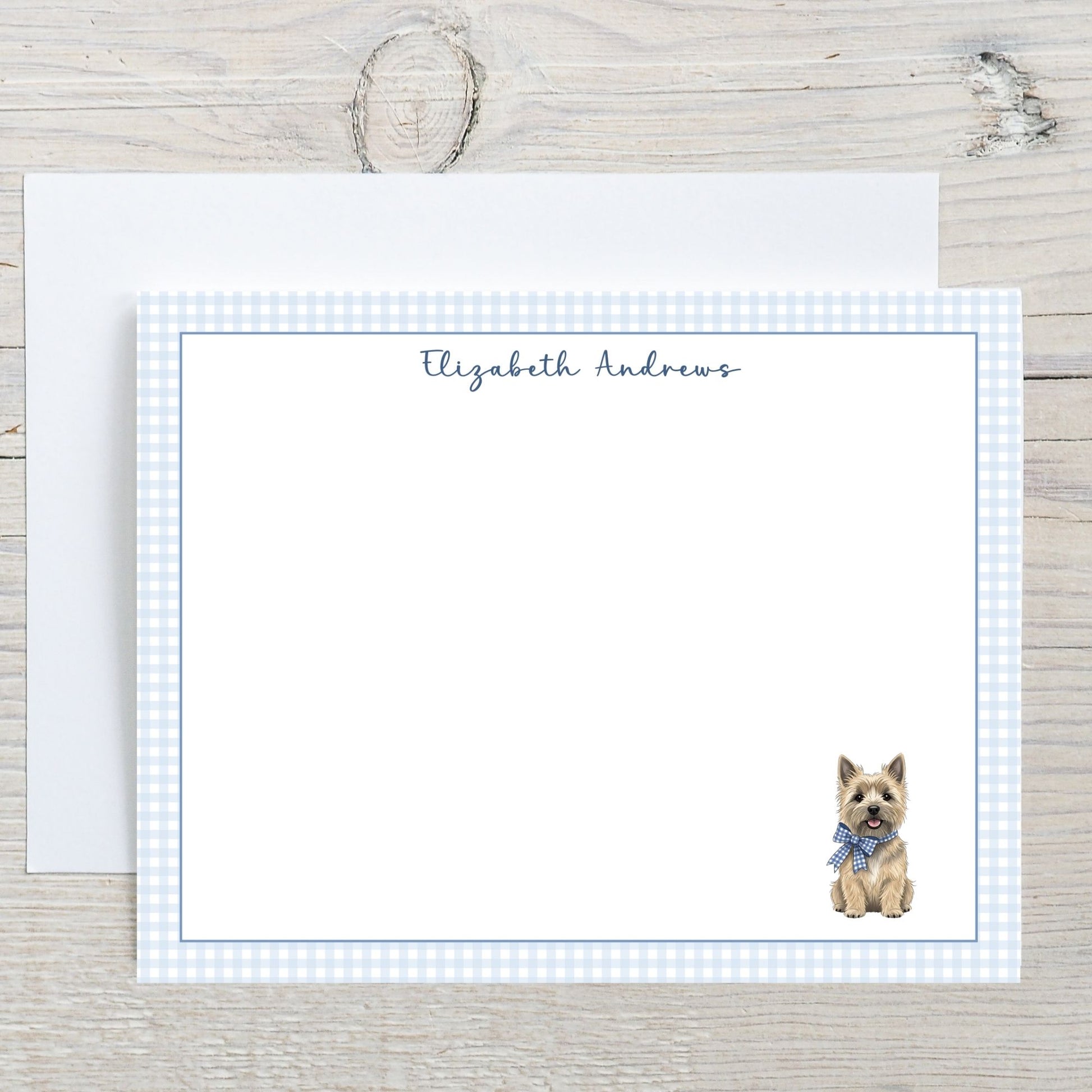 Cairn Terrier Blue Gingham Personalized Notecard Set