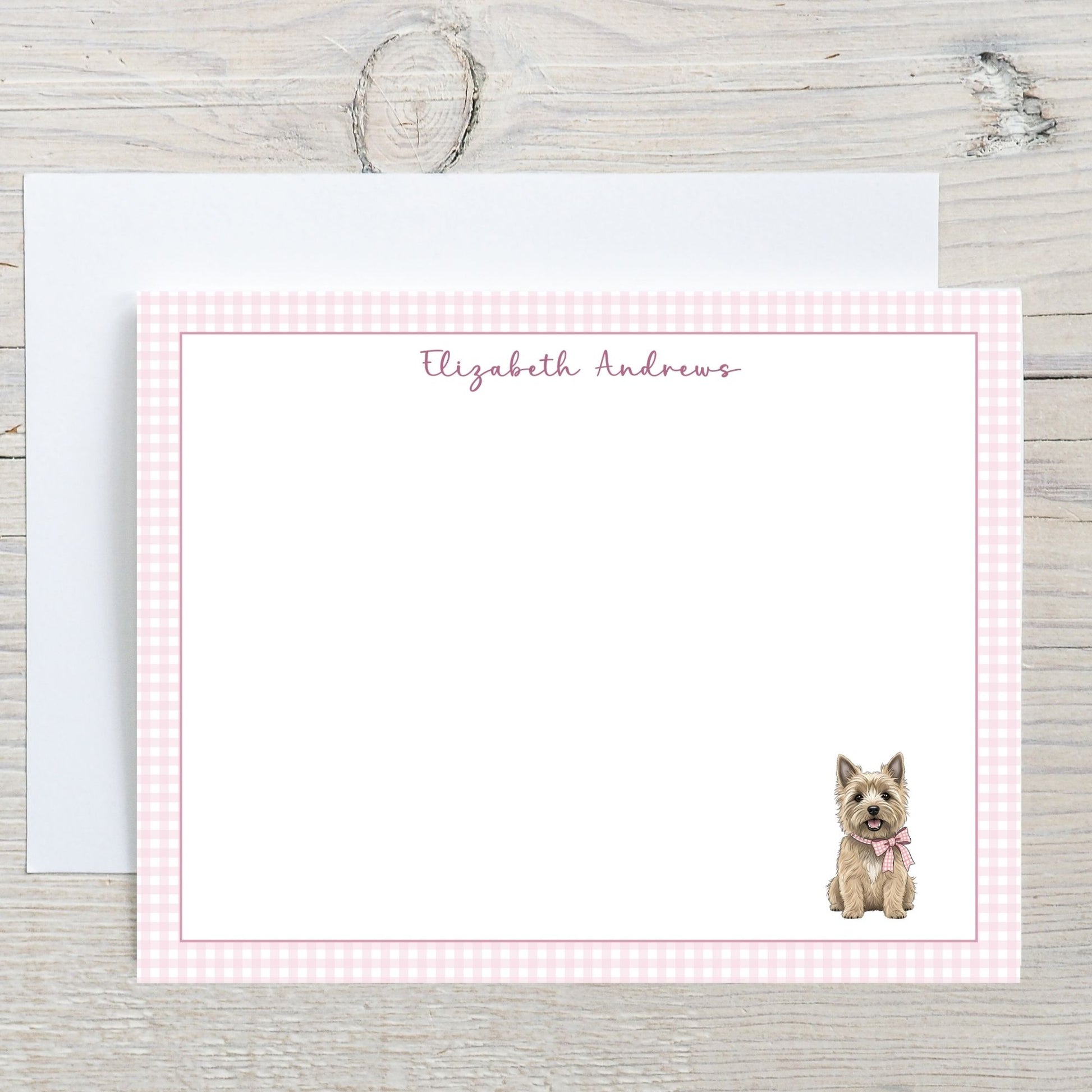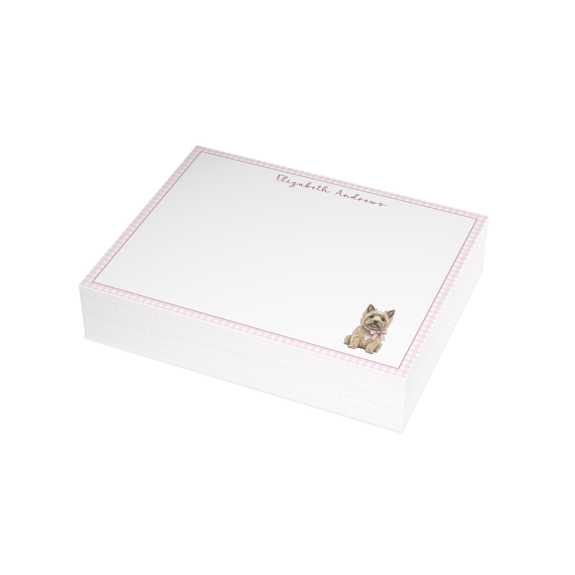 Cairn Terrier Pink Gingham Personalized Notecard Set