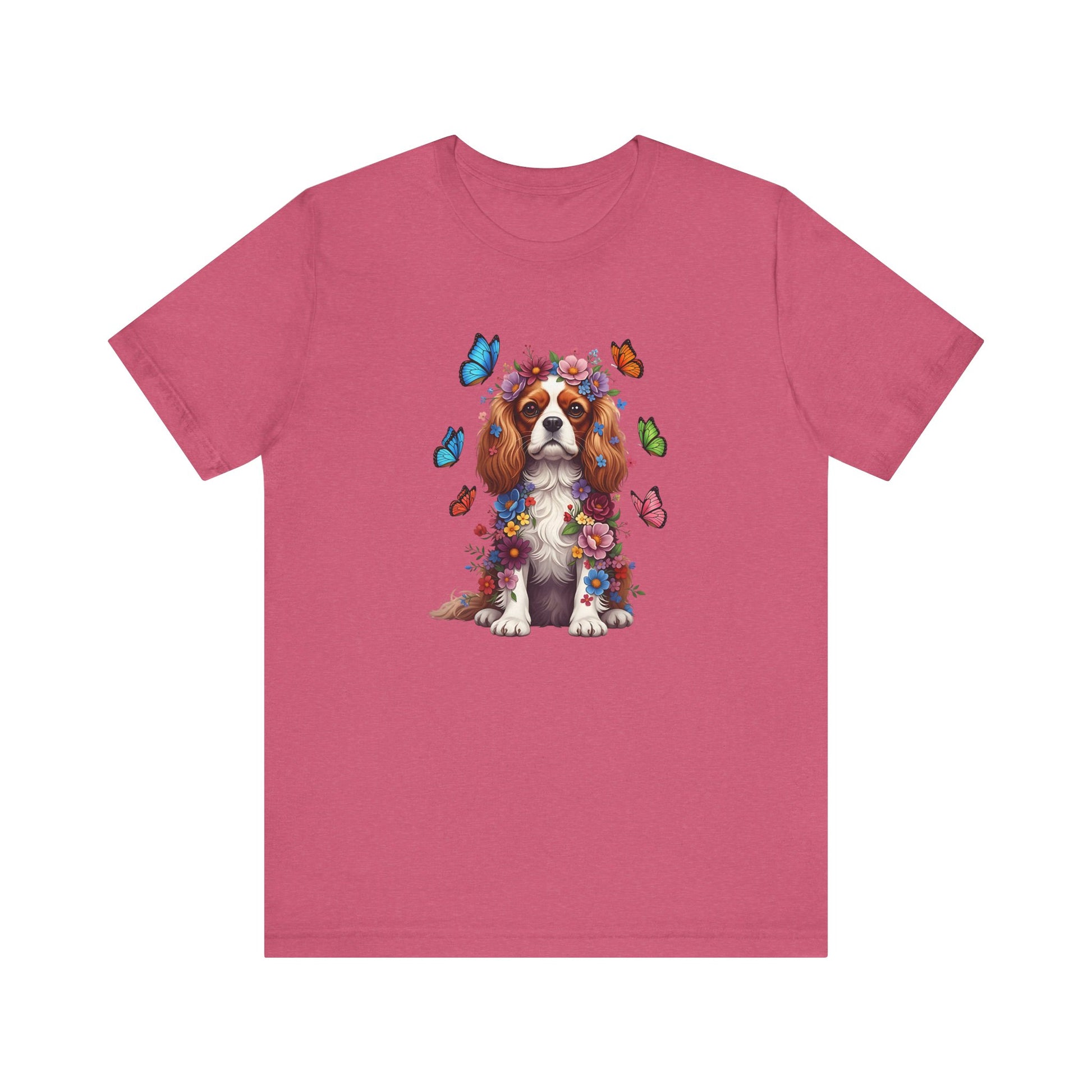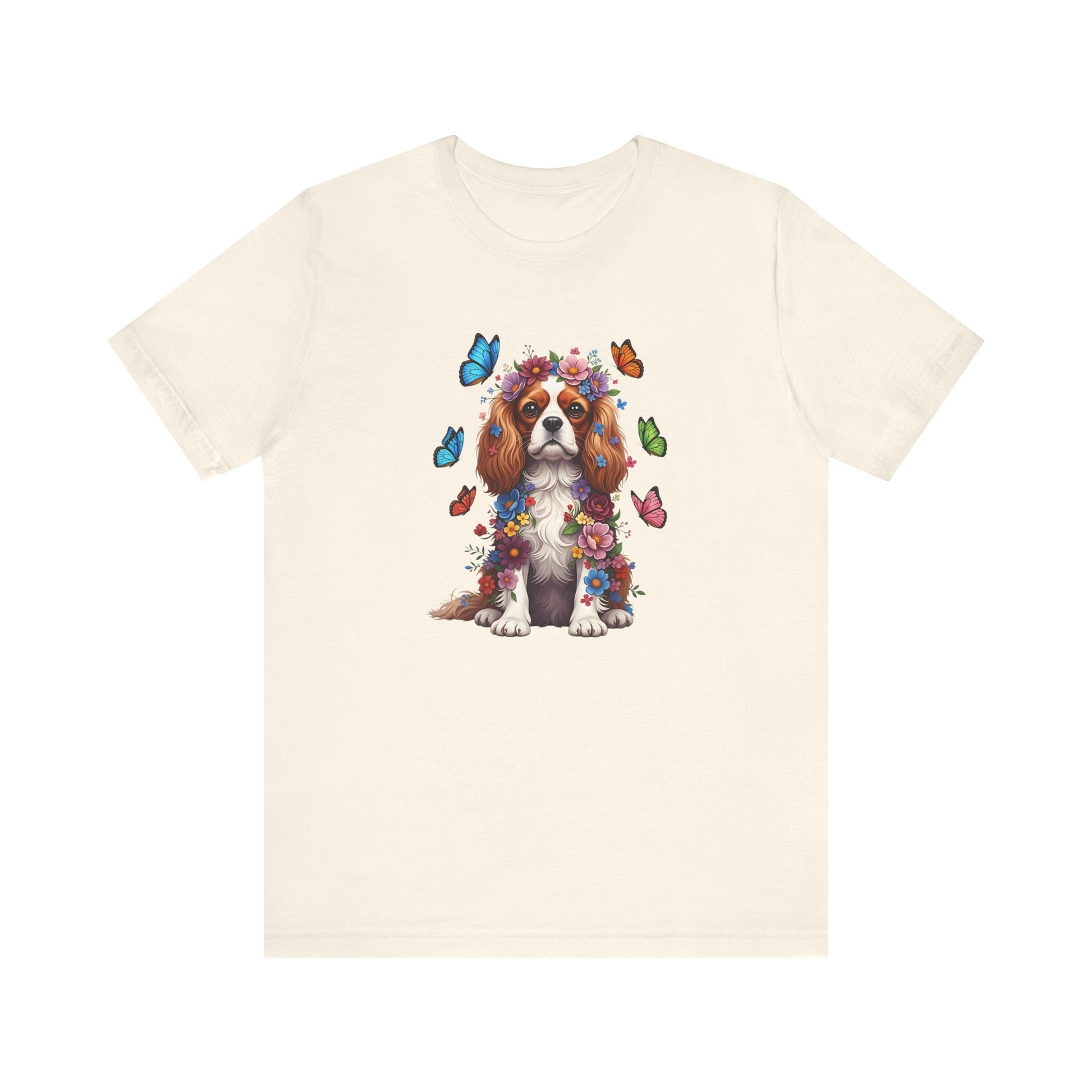 Whimsical Floral Cavalier King Charles Spaniel Tee – Colorful Dog Lover Shirt with Butterflies