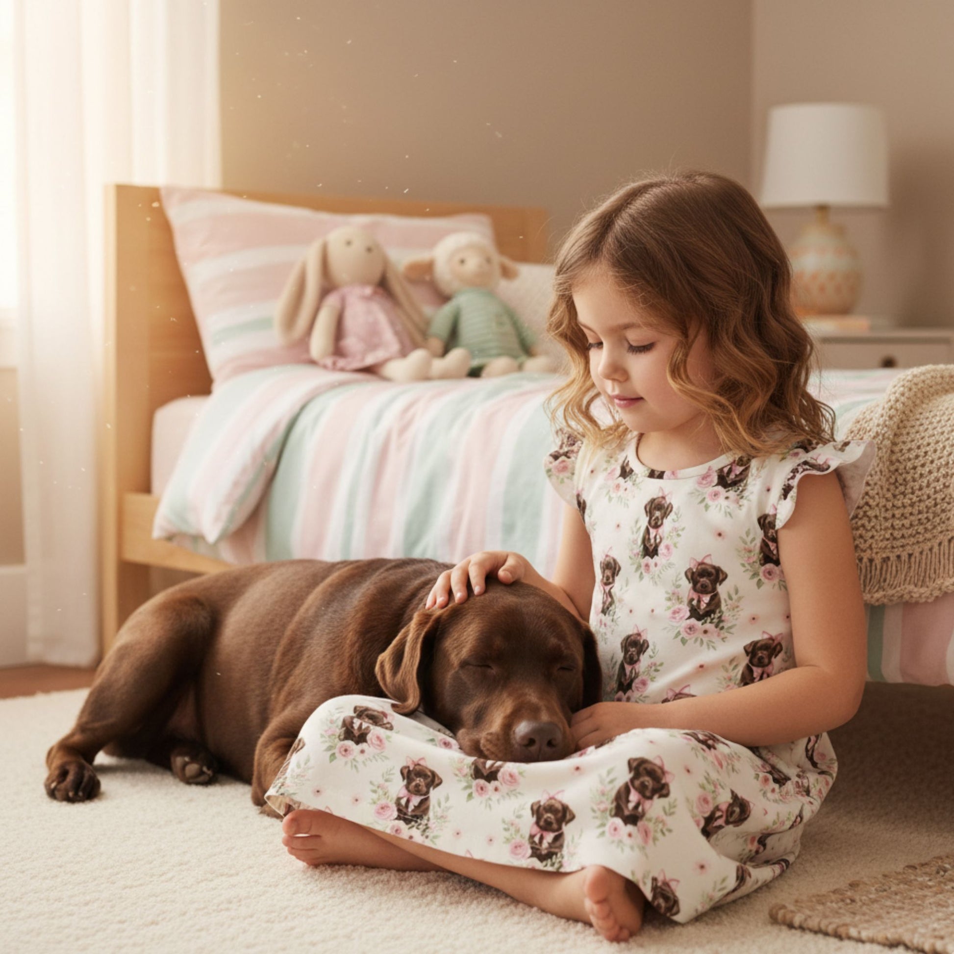 A delightful blend of comfort and sweetness, this nightgown brings cozy dreams and puppy-love charm to every bedtime routine. Perfect for little girls who adore dogs and pretty florals!