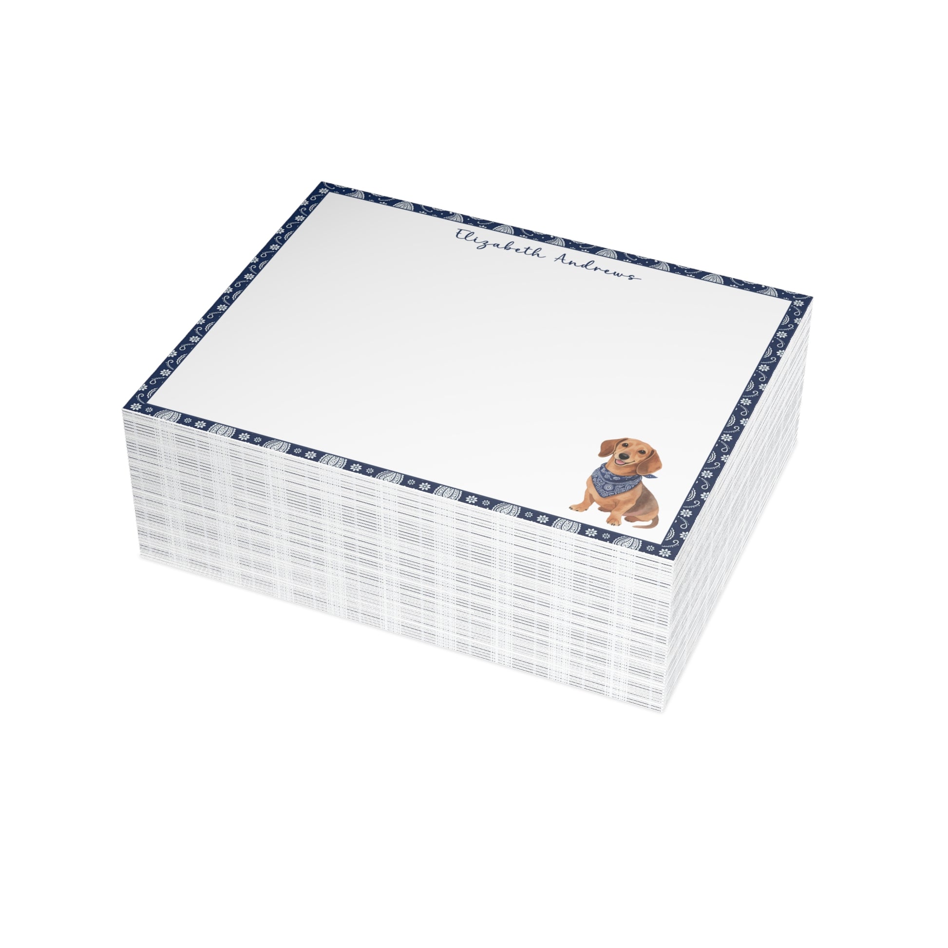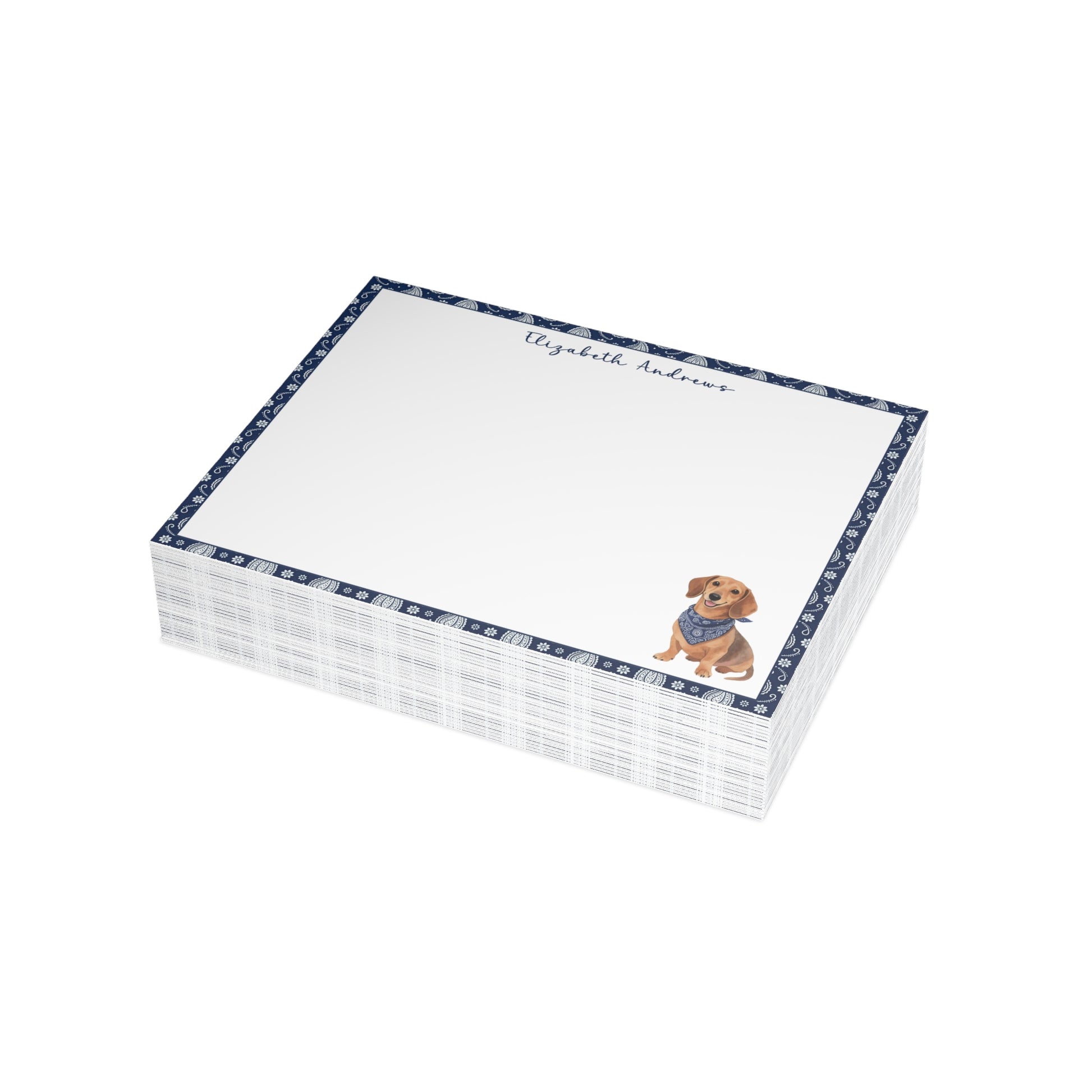 Personalized Dachshund Navy Blue Paisley Notecard Set