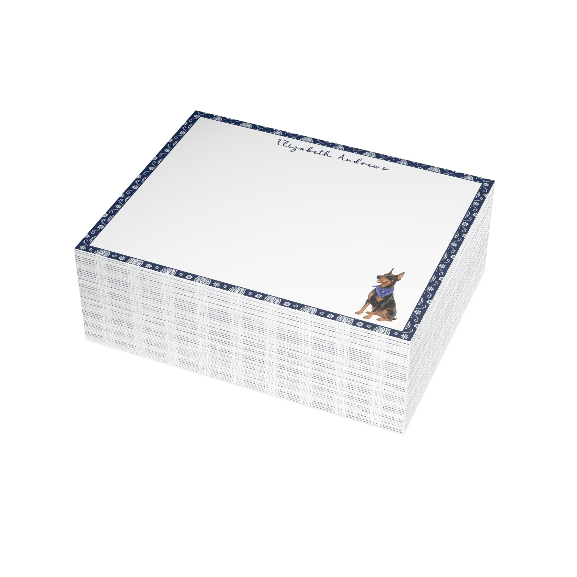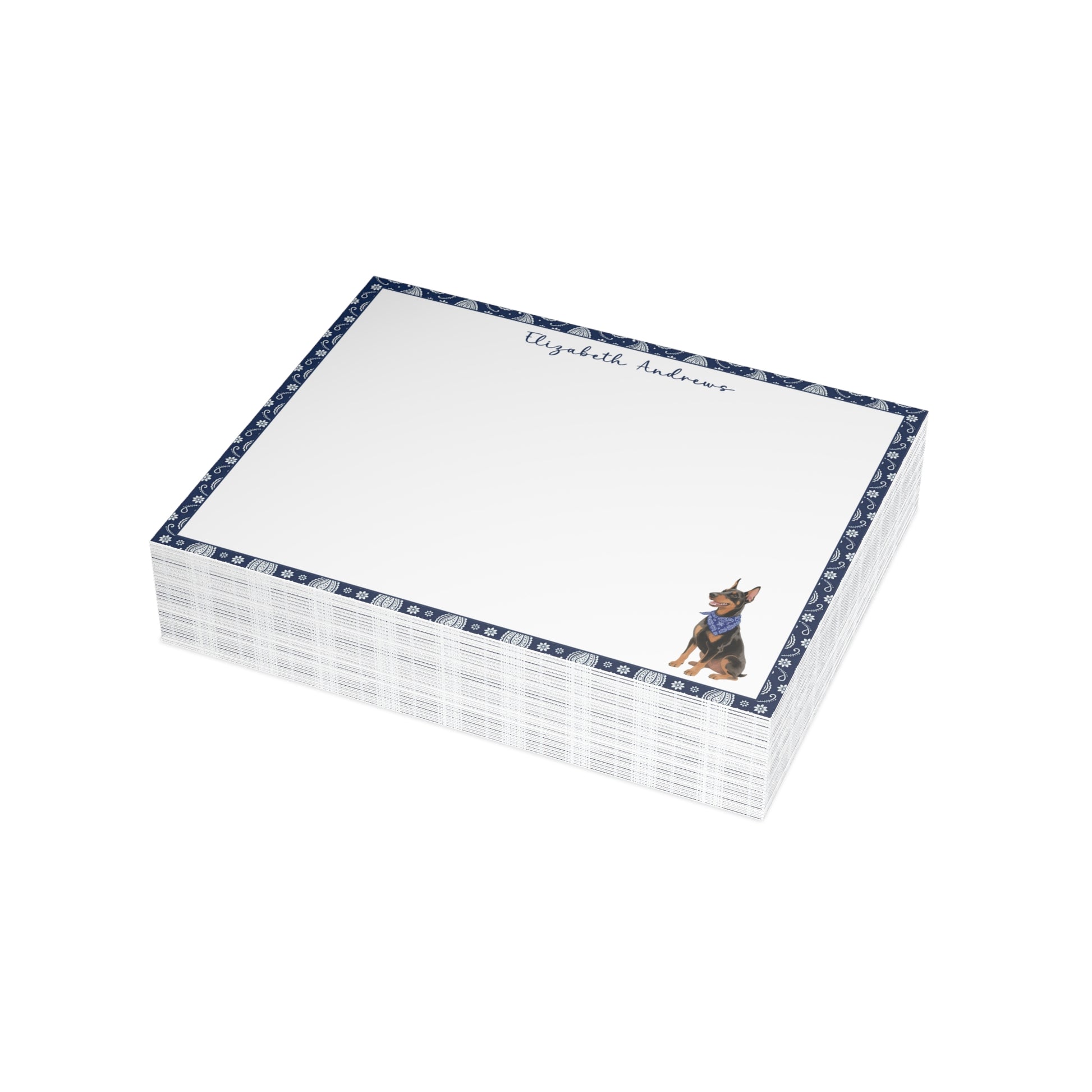 Personalized Doberman Pinscher Navy Blue Paisley Notecard Set