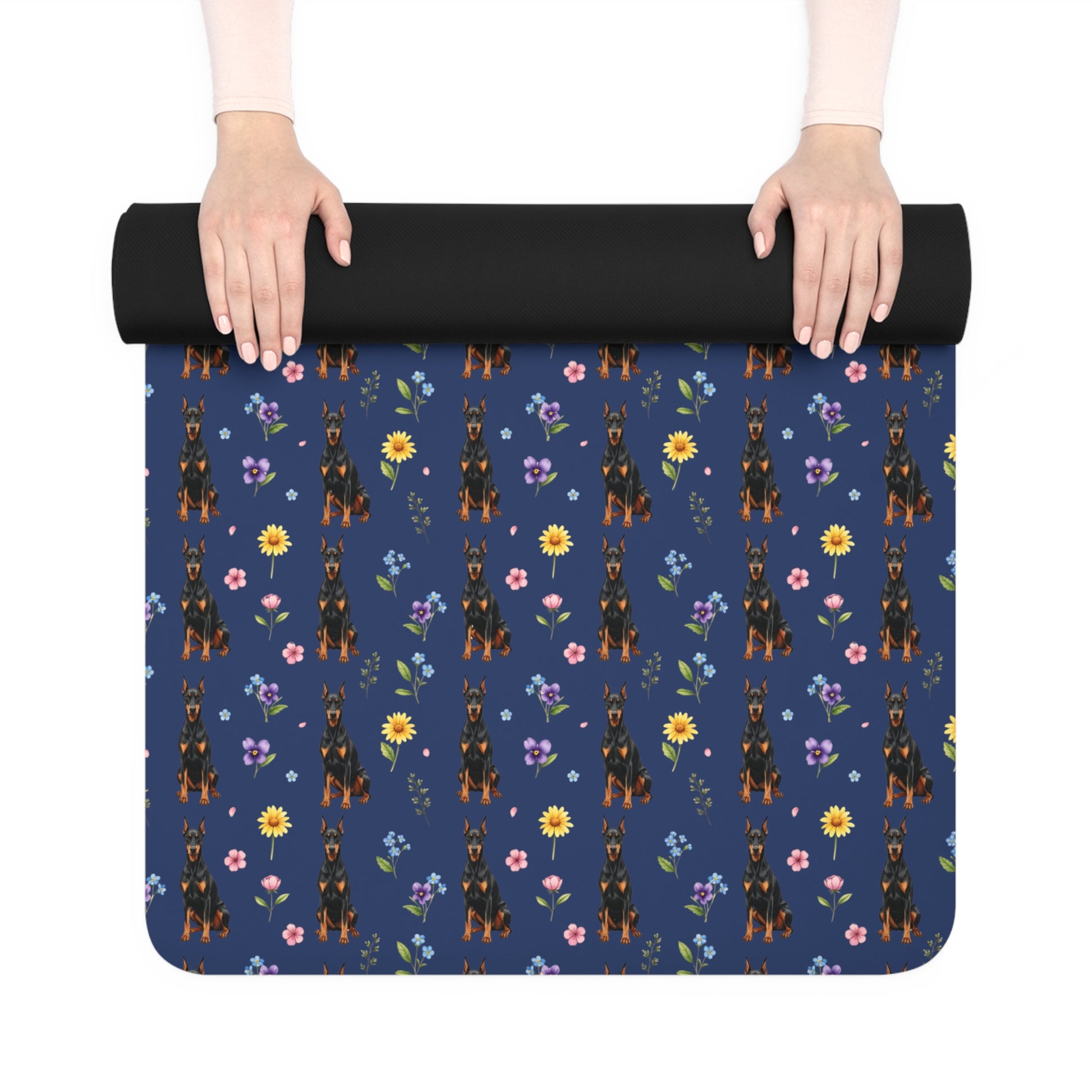 Doberman Pinscher Dog Floral Yoga Mat – Durable Non-Slip Rubber Surface for Home & Studio Practice