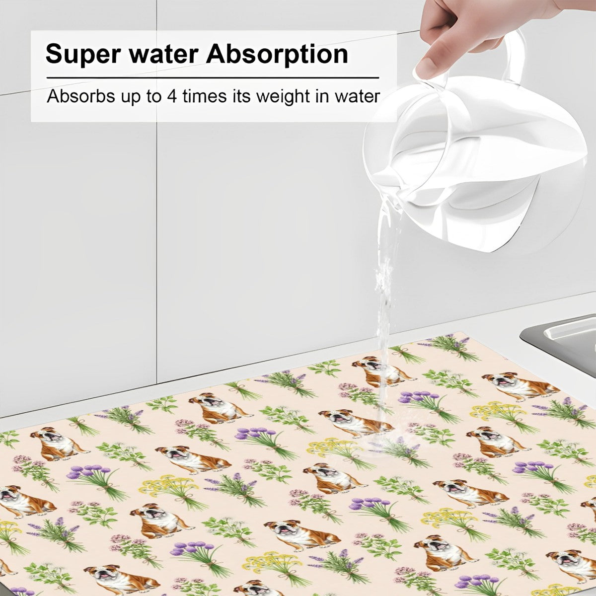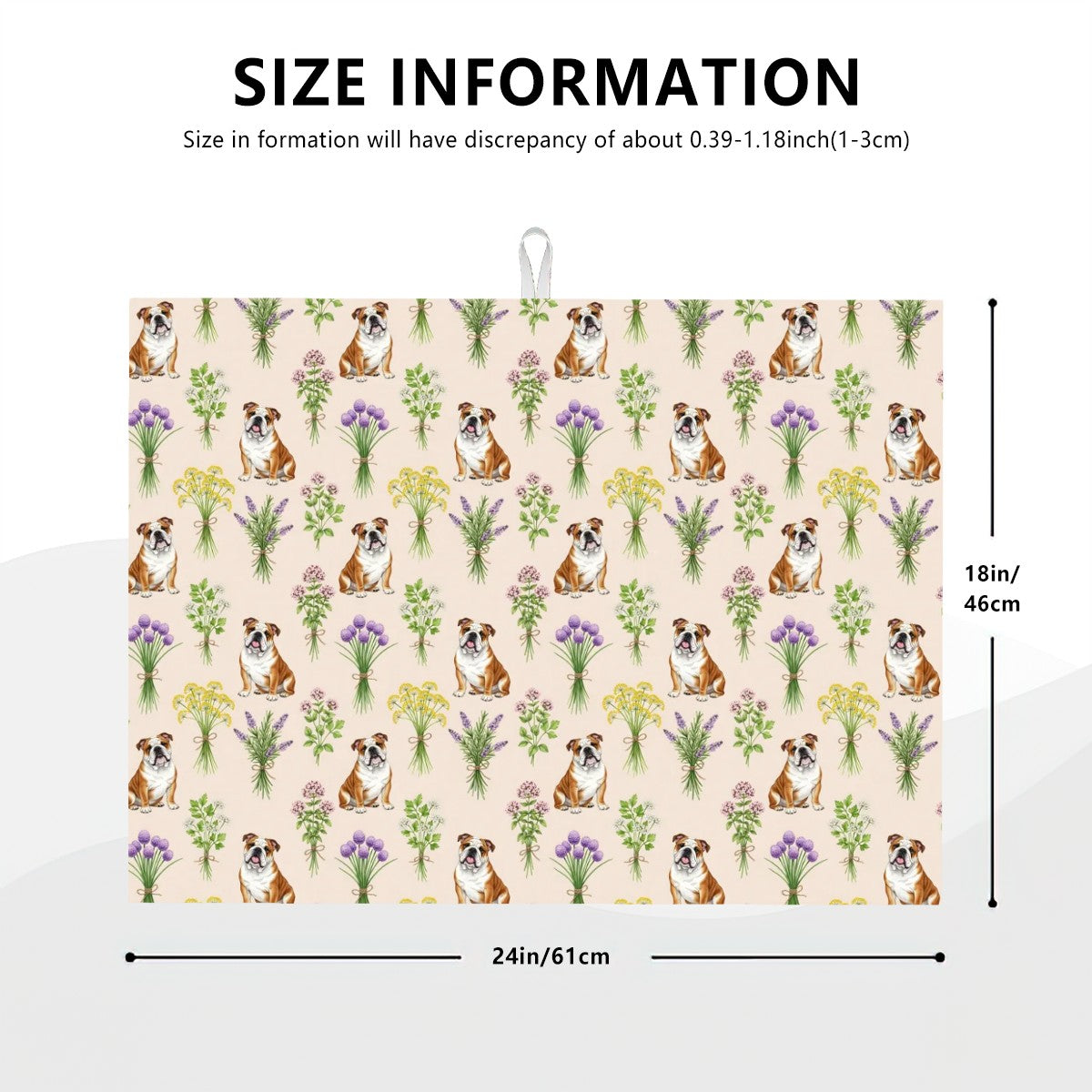 Brighten up your kitchen with this charming Dog-themed dish drying mat! Featuring a playful dog pattern and blooming herbs on a cozy neutral background, this mat is as functional as it is cute.
