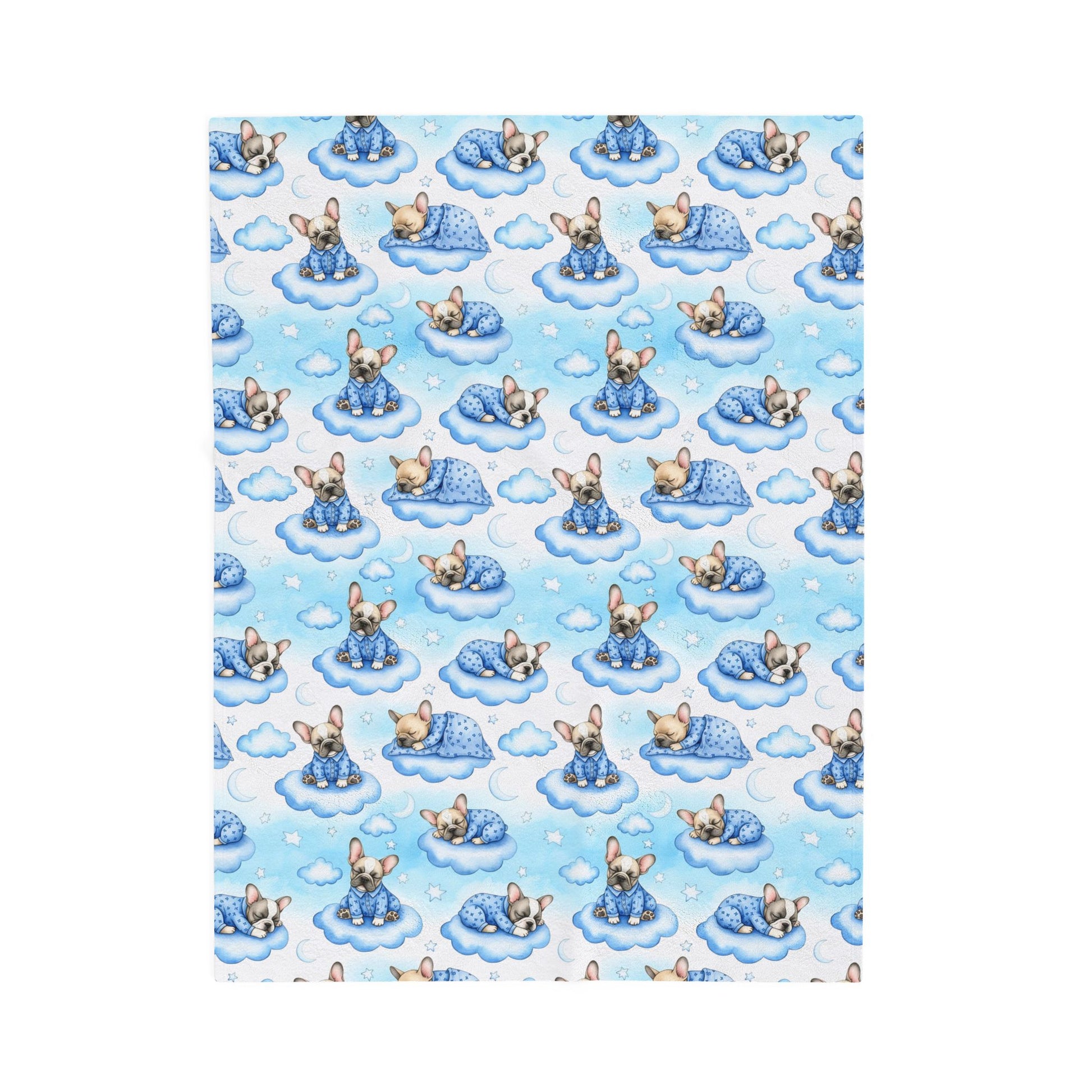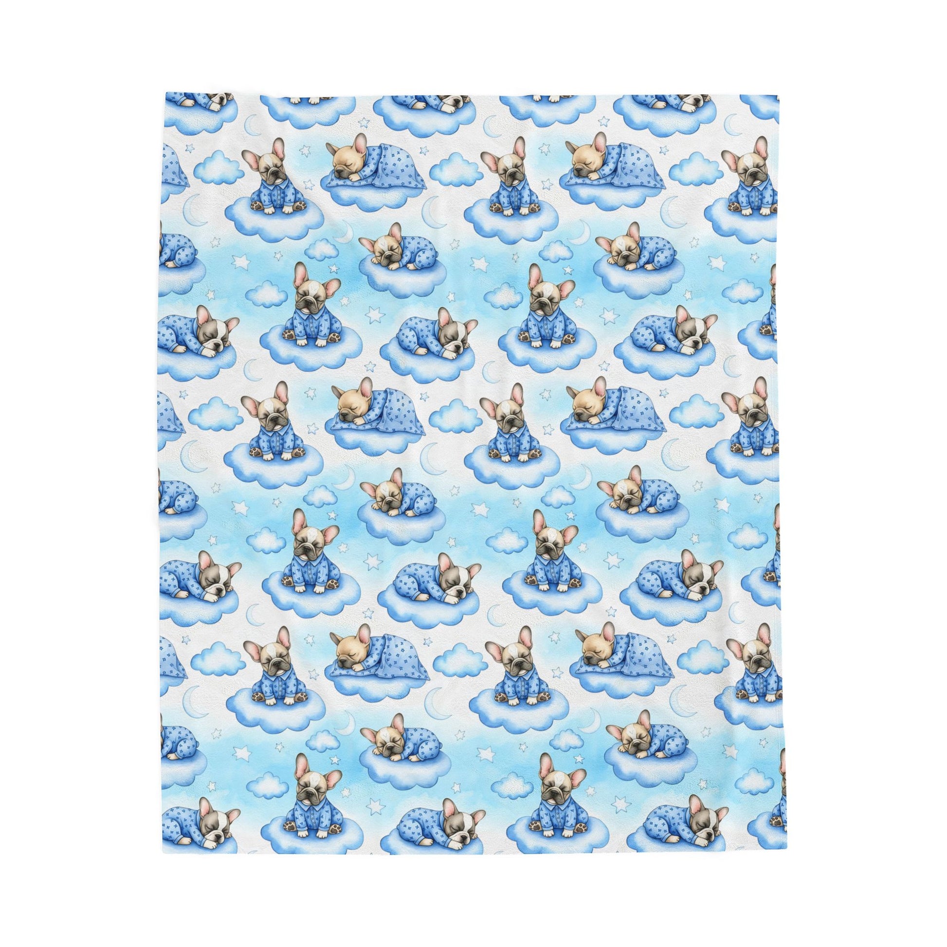 French Bulldog Blue Baby Blanket, Frenchie Dog Baby Shower Baby Boy Newborn Gift Hospital Announcement Blanket Coming Home