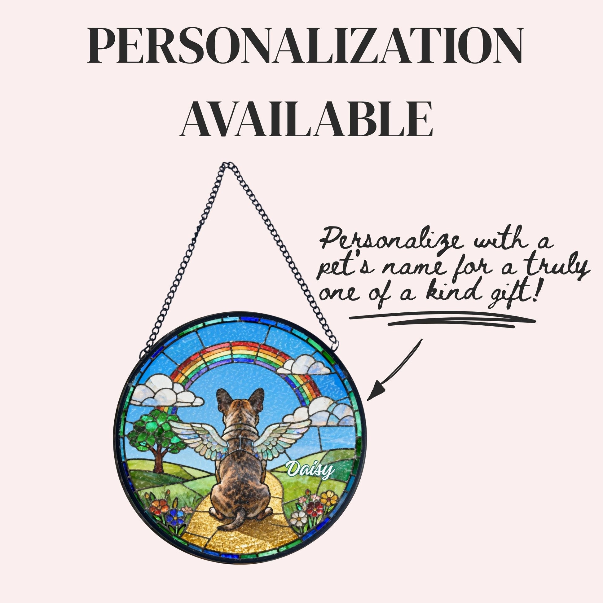 Rainbow Bridge Stained Glass Dog Suncatcher – Personalized Memorial Gift for Pet Loss