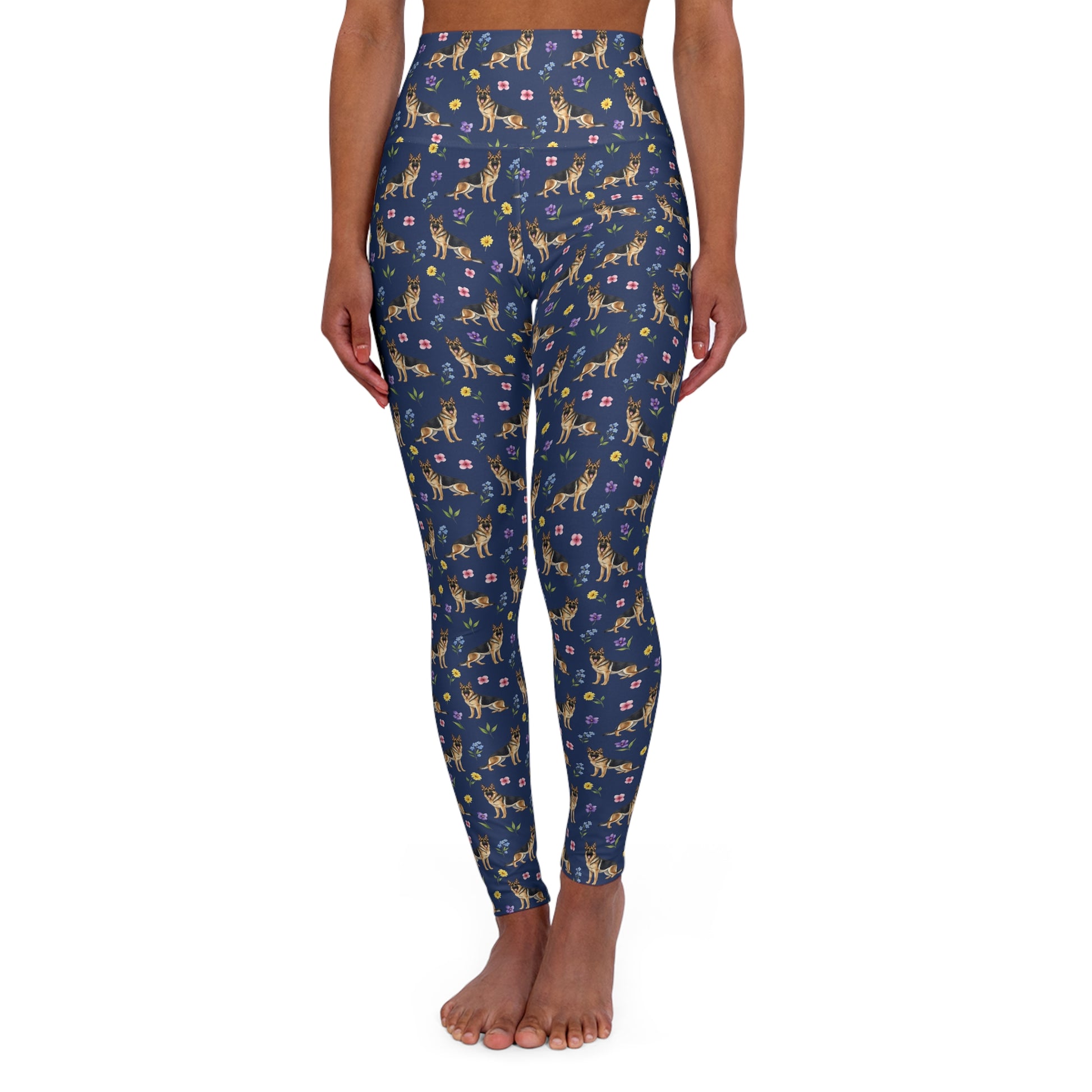 German Shepherd Dog Floral High Waisted Yoga Leggings - Perfect for Fitness & Everyday Wear