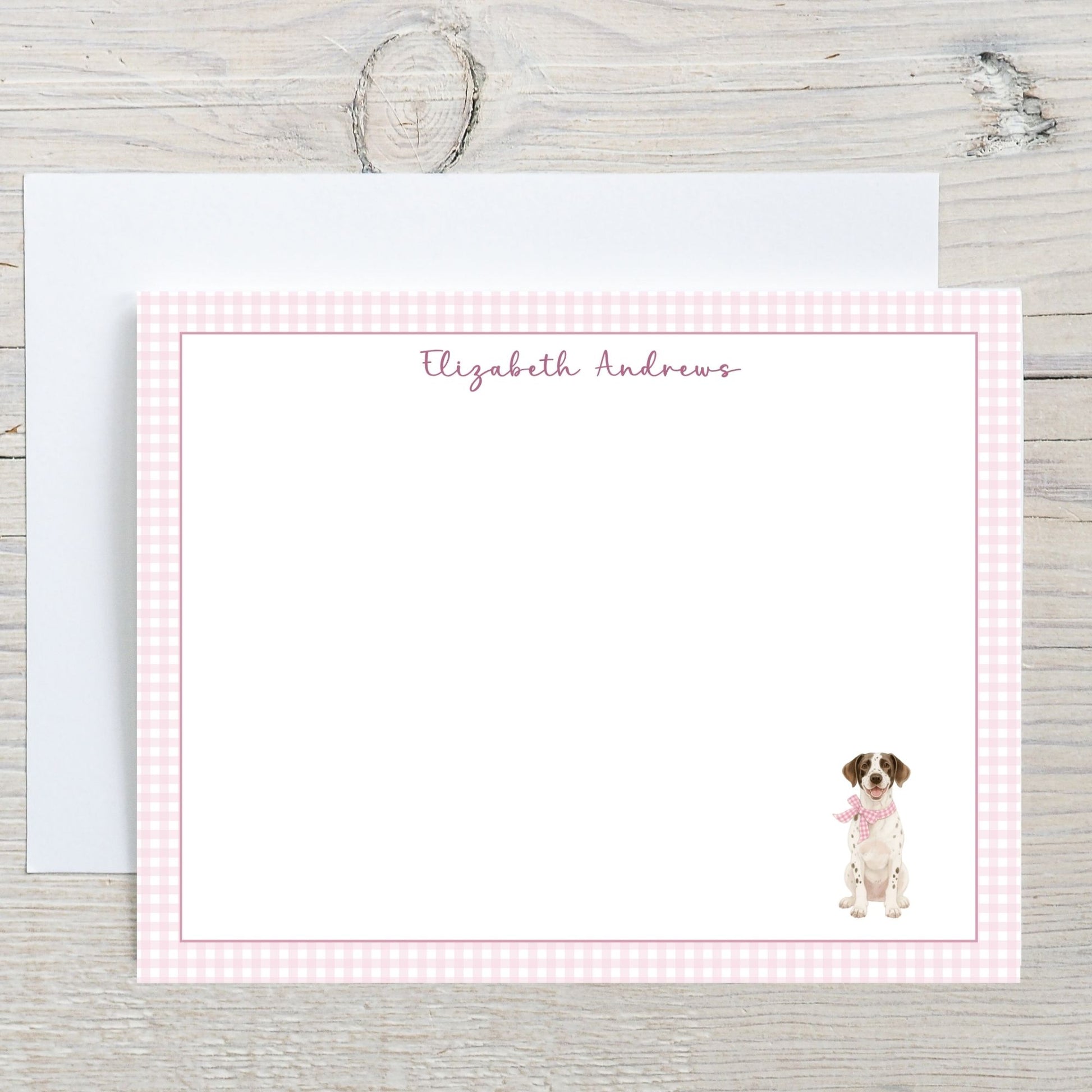 German Shorthaired Pointer Dog Pink Gingham Personalized Notecard Set