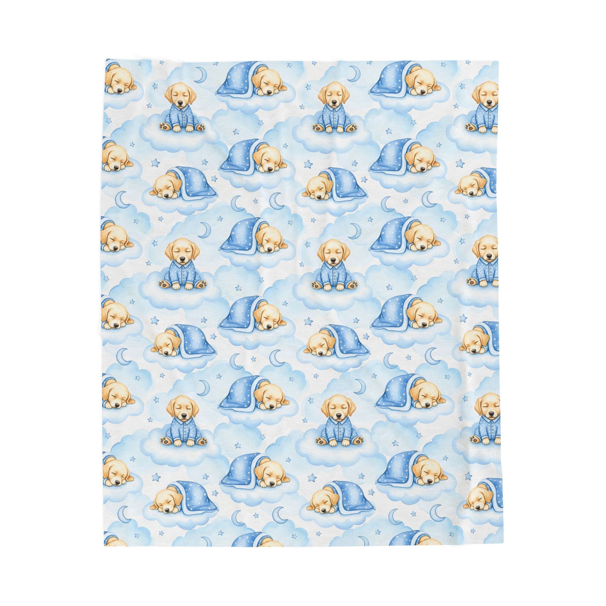 🌙 Blue Puppy Baby Blanket – Soft & Cozy Nursery Throw