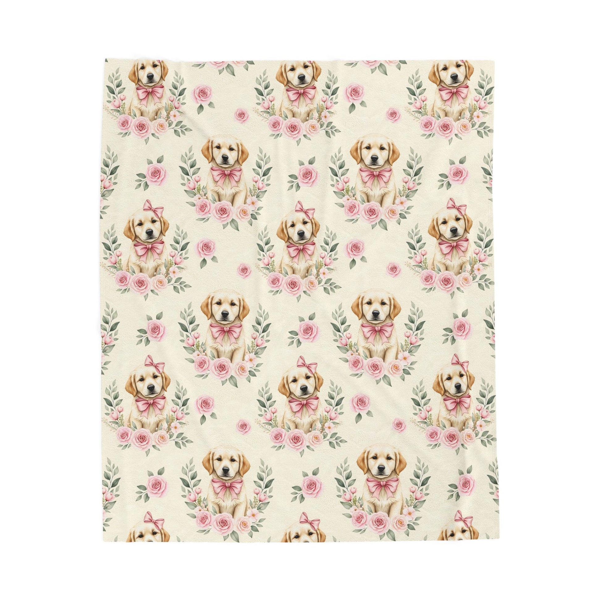 Baby Puppy Floral Blanket – Soft & Adorable Nursery Blanket for Girls