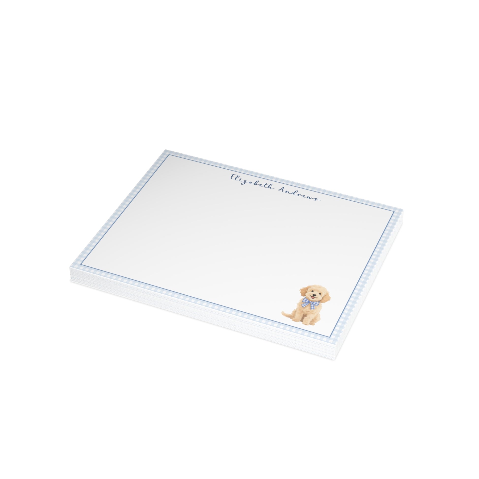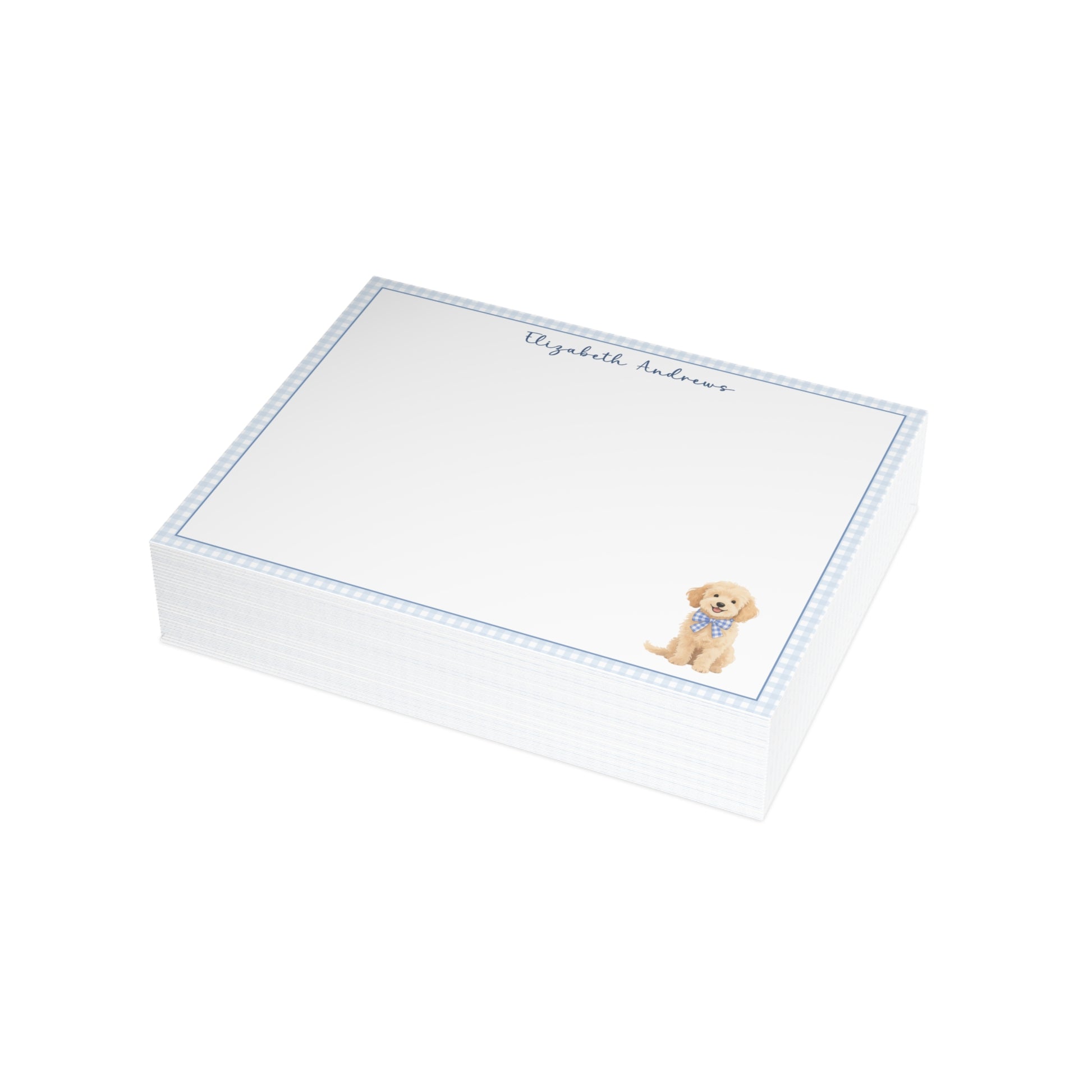 Goldendoodle Dog Blue Gingham Personalized Notecard Set