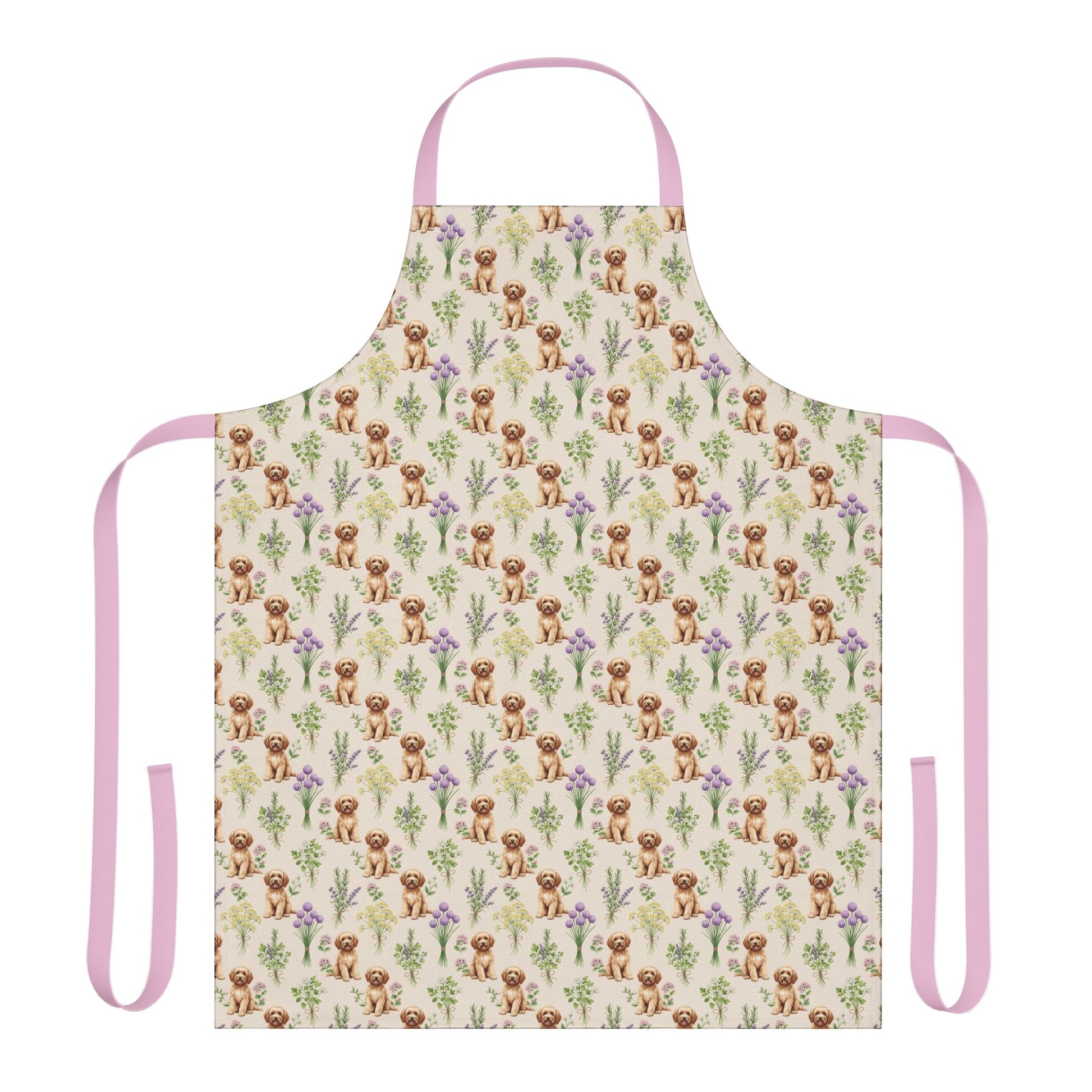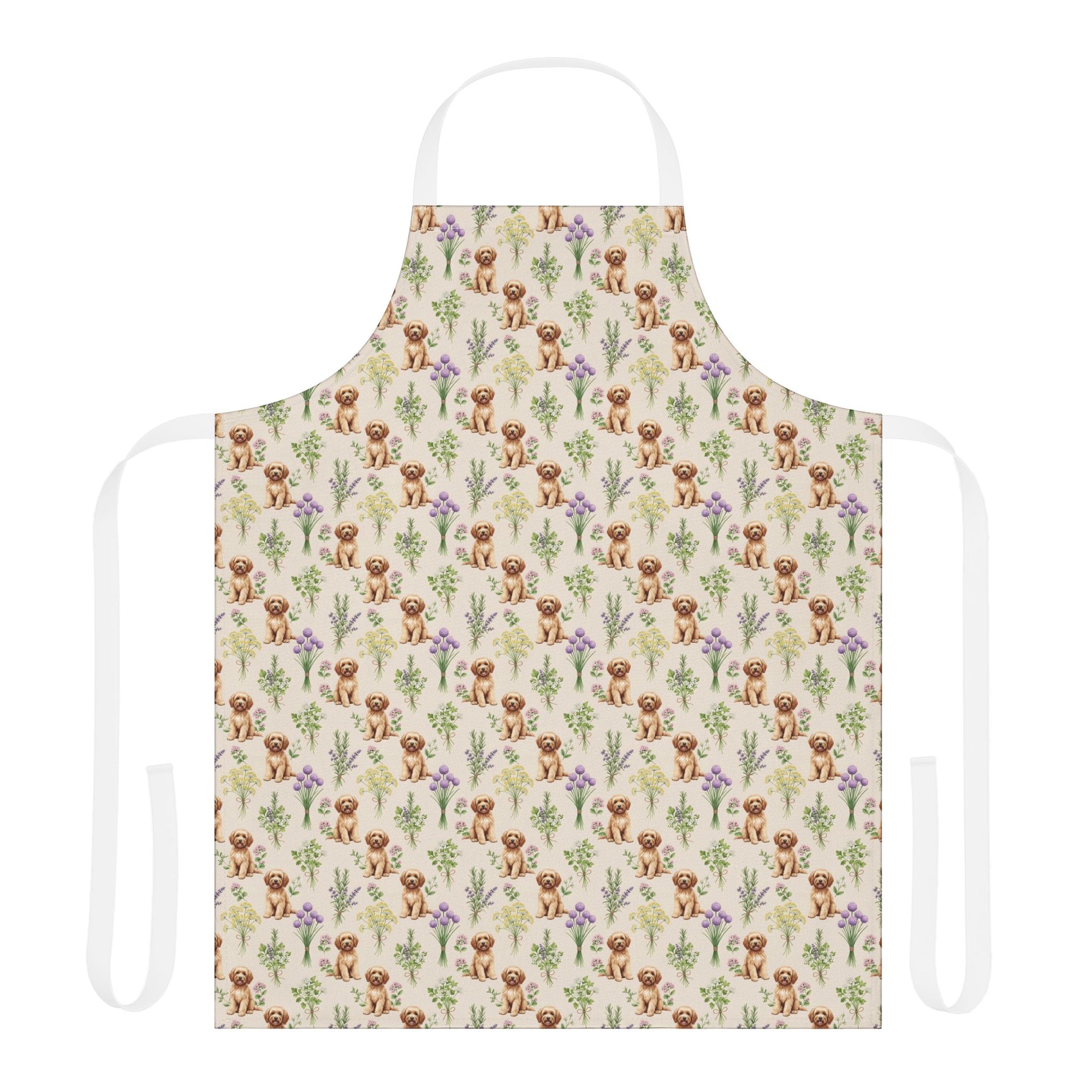 Dog Lovers Kitchen Apron – Cute Dog & Herbs Print Cooking Apron
