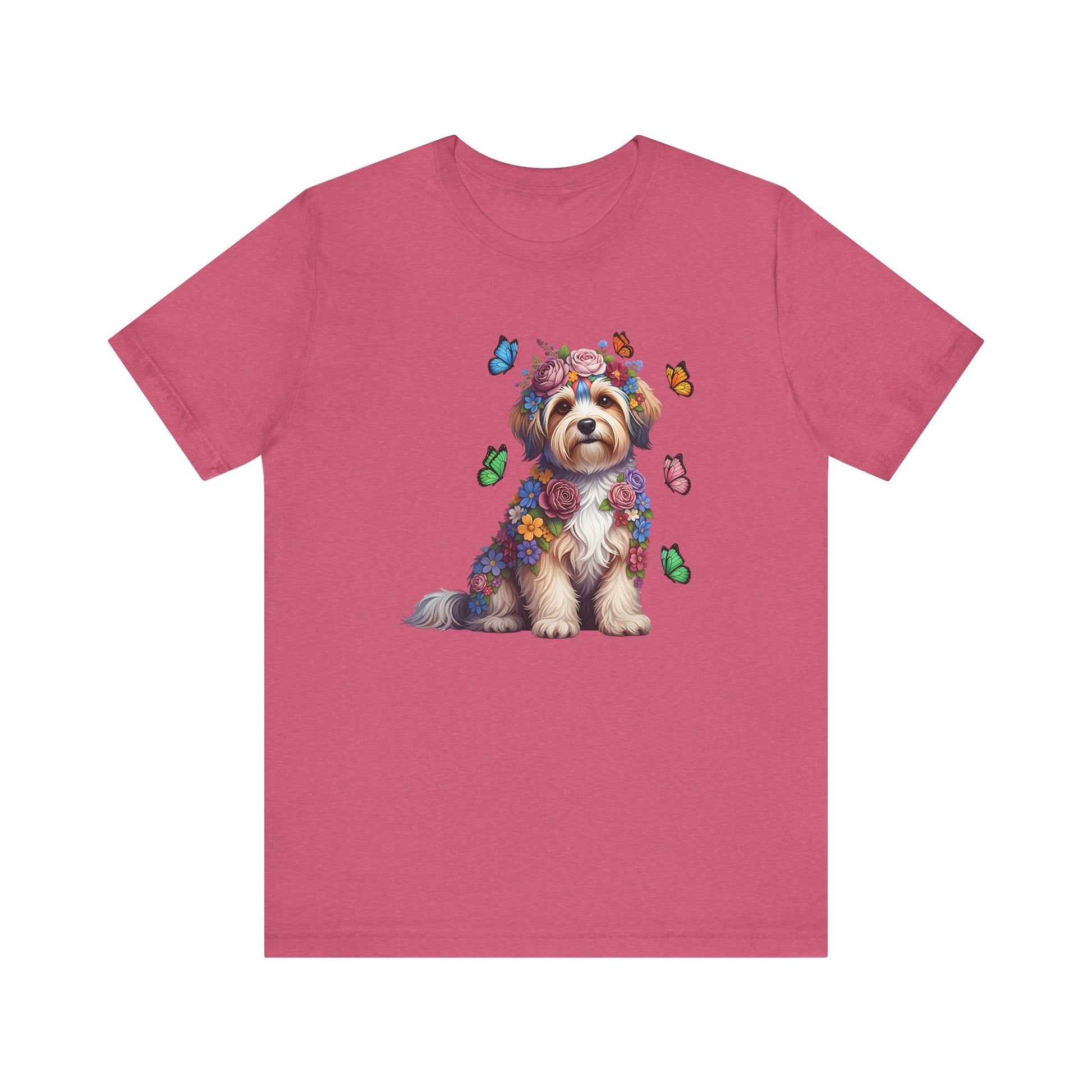 Whimsical Floral Havanese Tee – Colorful Dog Lover Shirt with Butterflies