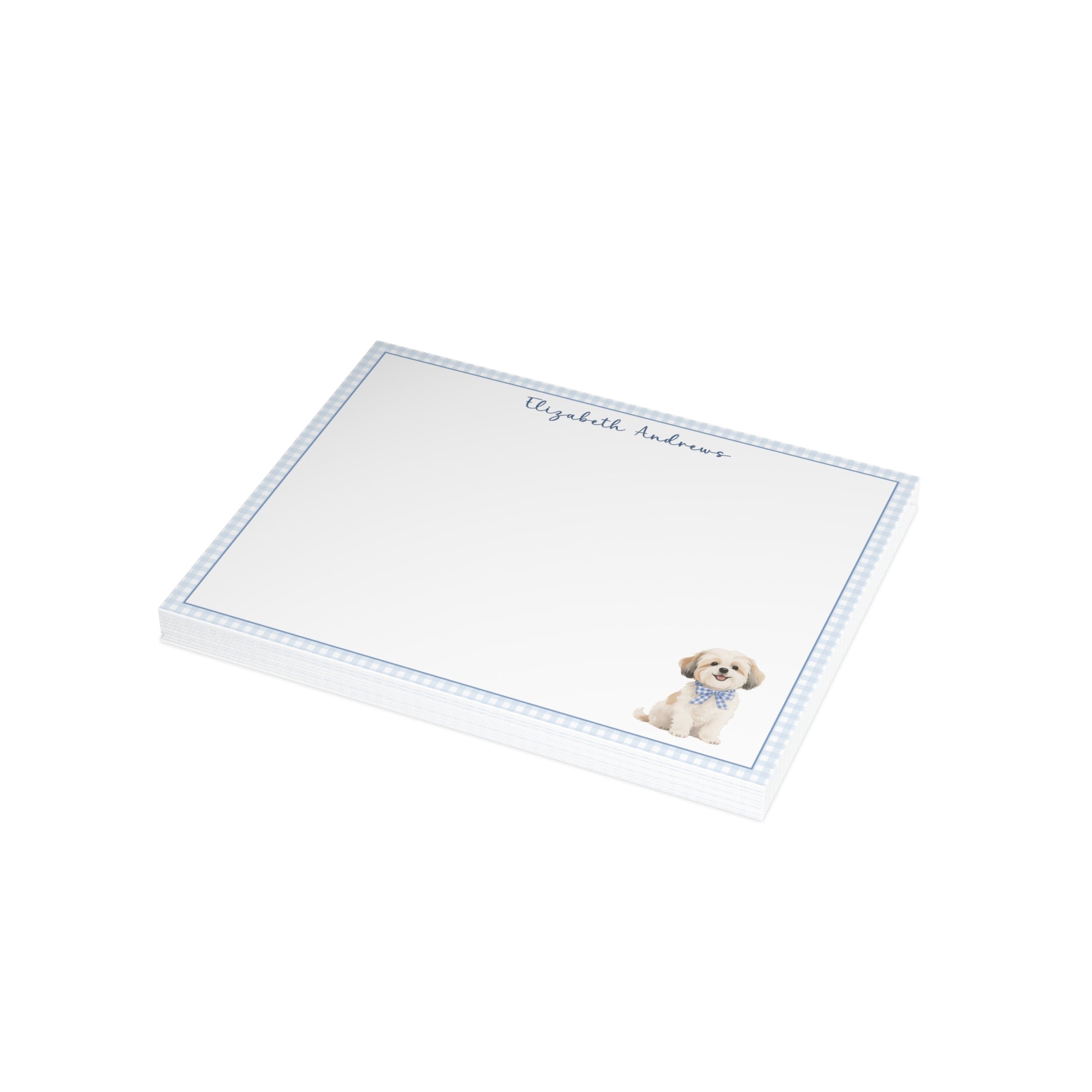 Havanese Dog Blue Gingham Personalized Notecard Set