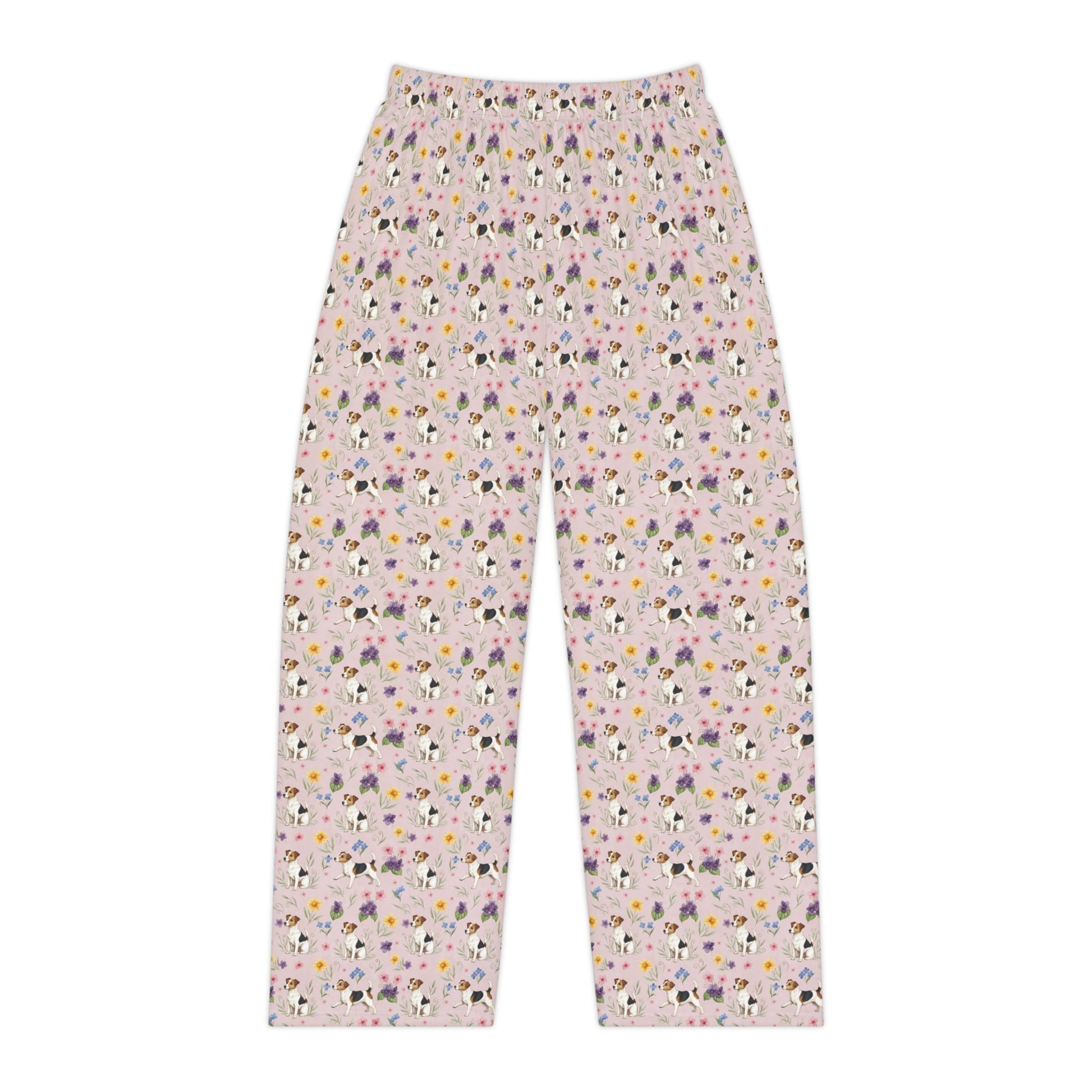 Drift into cozy comfort with these adorable floral dog-print pajama pants—where soft, breathable fabric meets irresistible charm. Designed for dreamy nights and relaxed mornings, these lightweight loungers feature a whimsical all-over pattern of delicate flowers and sweet pups, perfect for dog lovers who enjoy a touch of playful elegance. The 100% durable polyester fabric feels smooth against the skin, while the high-density stitching adds a premium hand-feel that keeps these pants looking and feeling great wear after wear. An elastic waistband ensures an easy, adjustable fit that moves with you for the ultimate in lounging comfort.