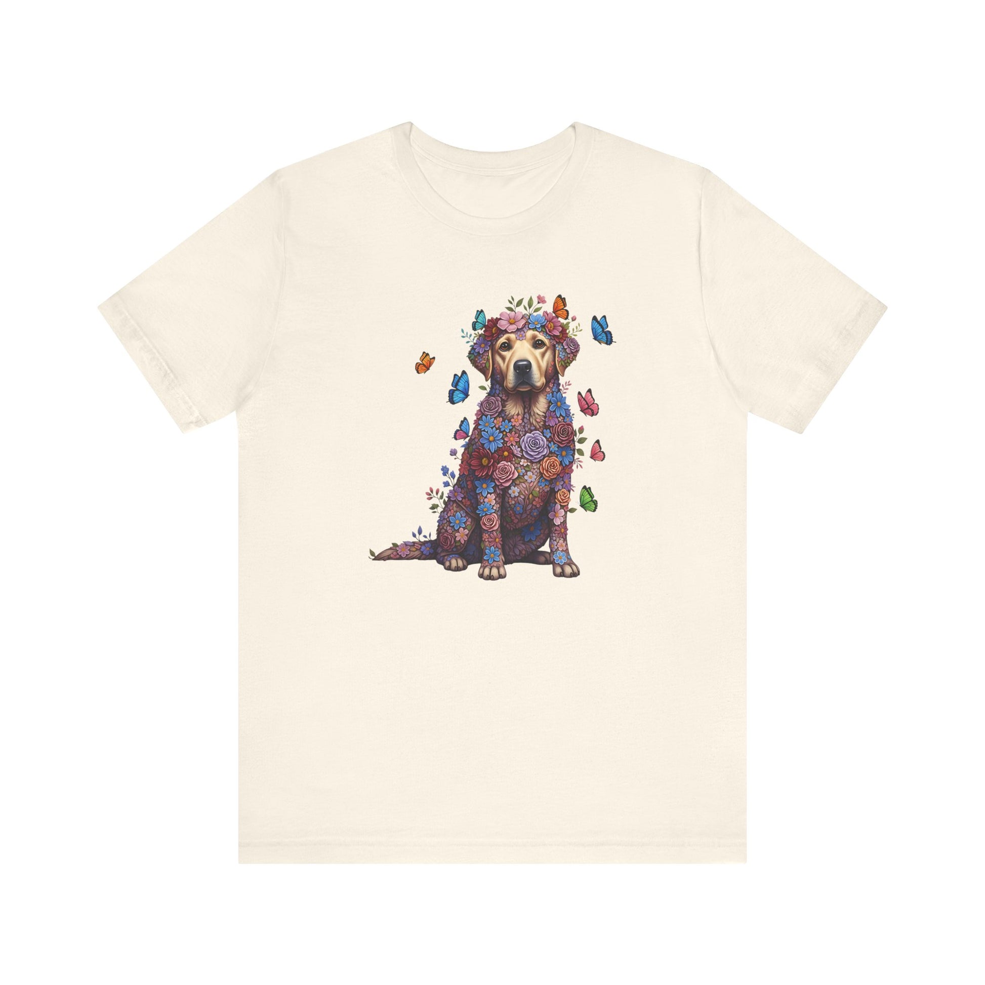 Whimsical Floral Labrador Retriever Tee – Colorful Dog Lover Shirt with Butterflies
