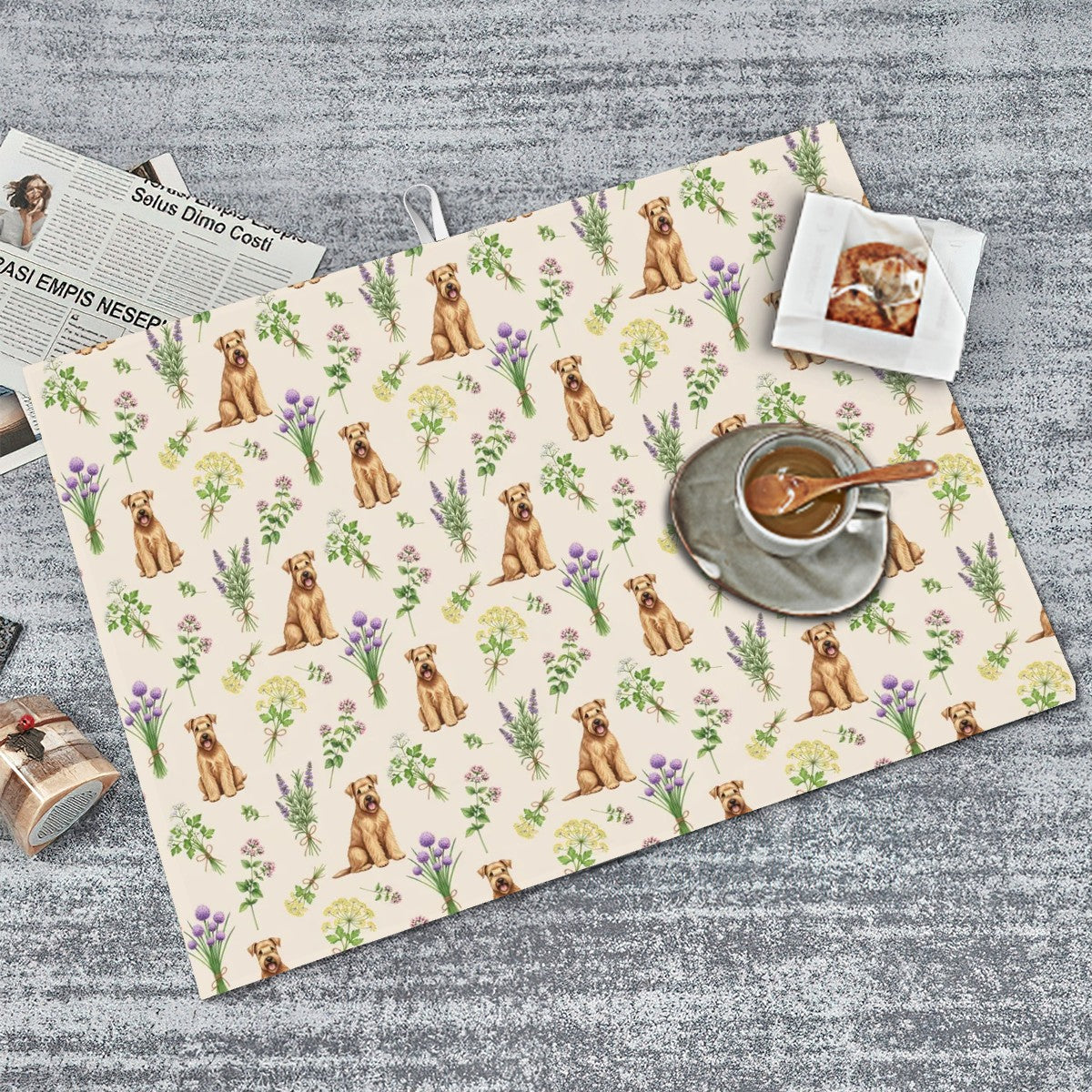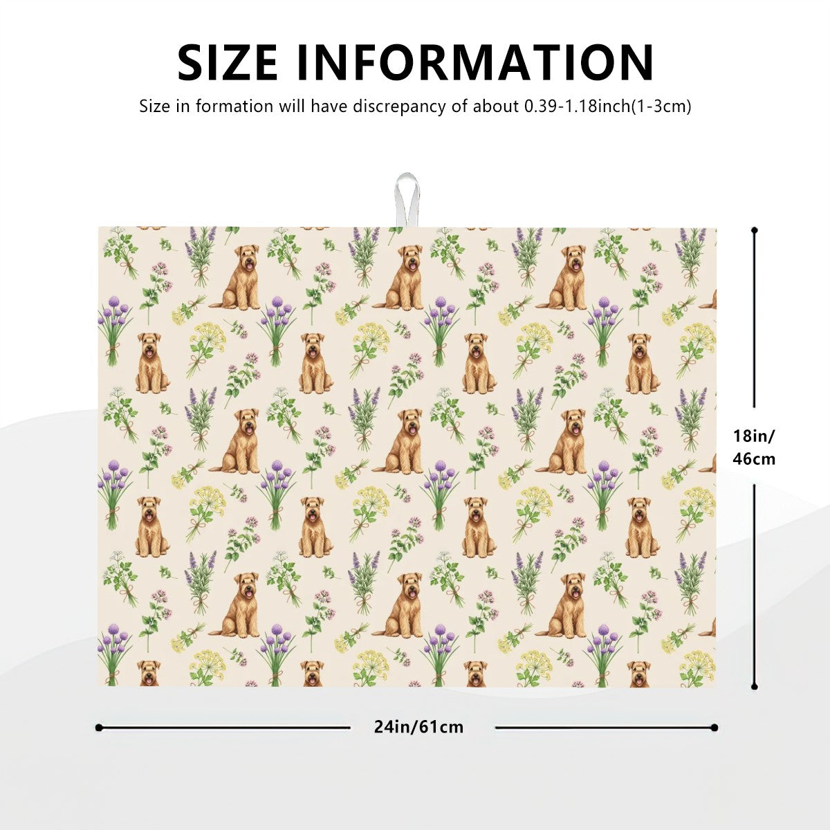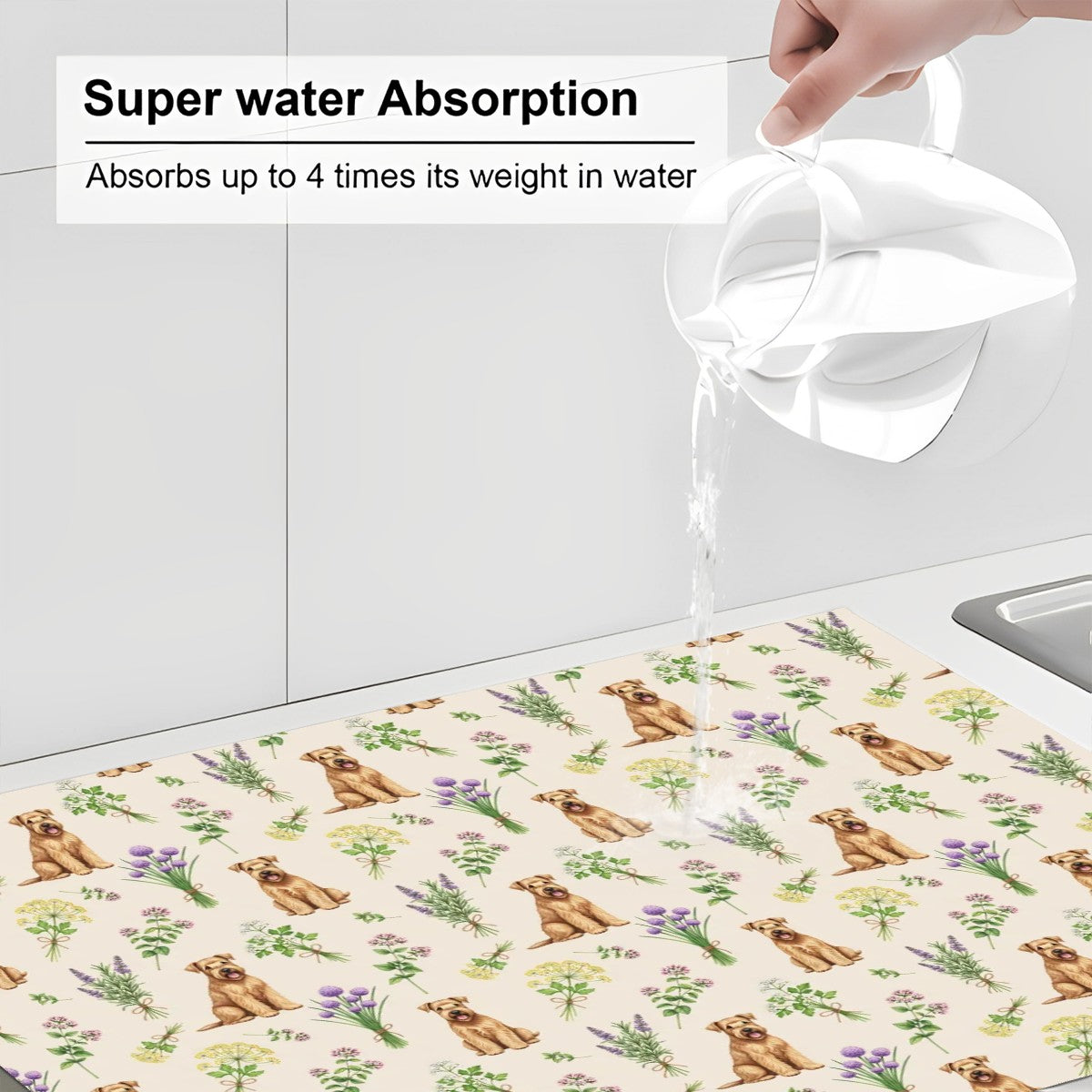 Brighten up your kitchen with this charming Dog-themed dish drying mat! Featuring a playful dog pattern and blooming herbs on a cozy neutral background, this mat is as functional as it is cute.