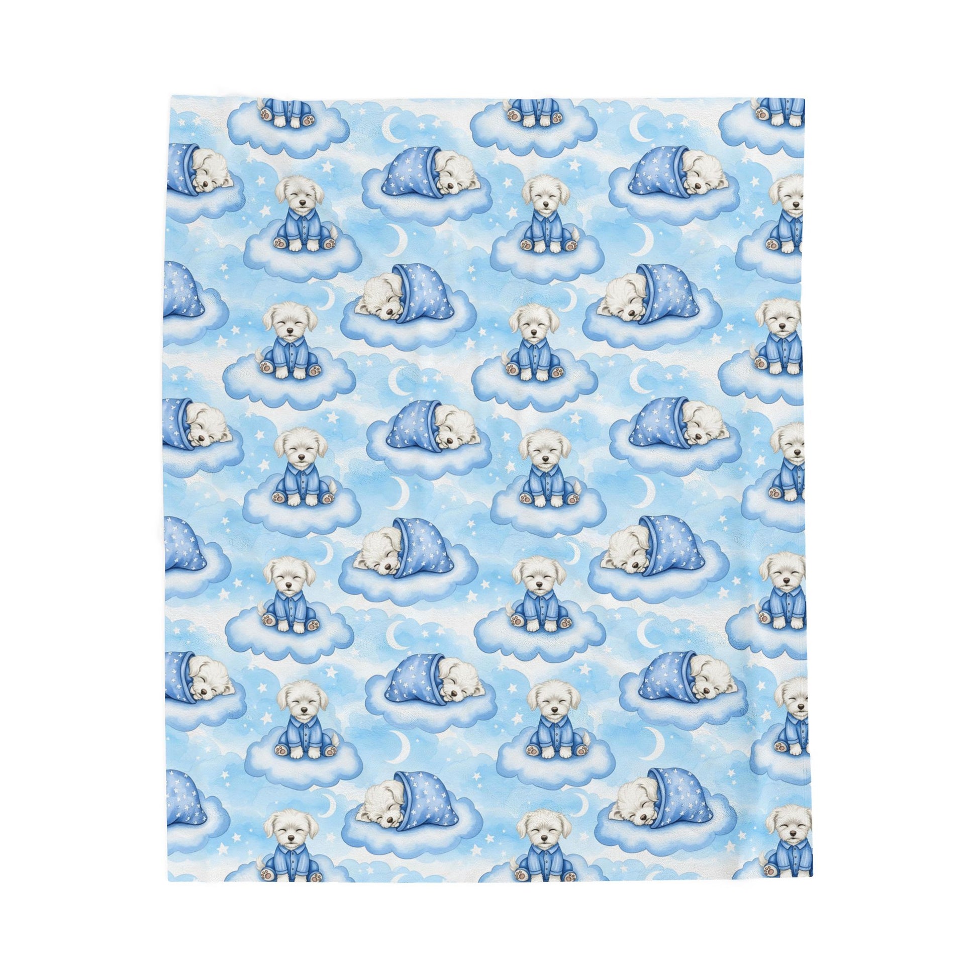 🌙 Blue Puppy Baby Blanket – Soft & Cozy Nursery Throw
